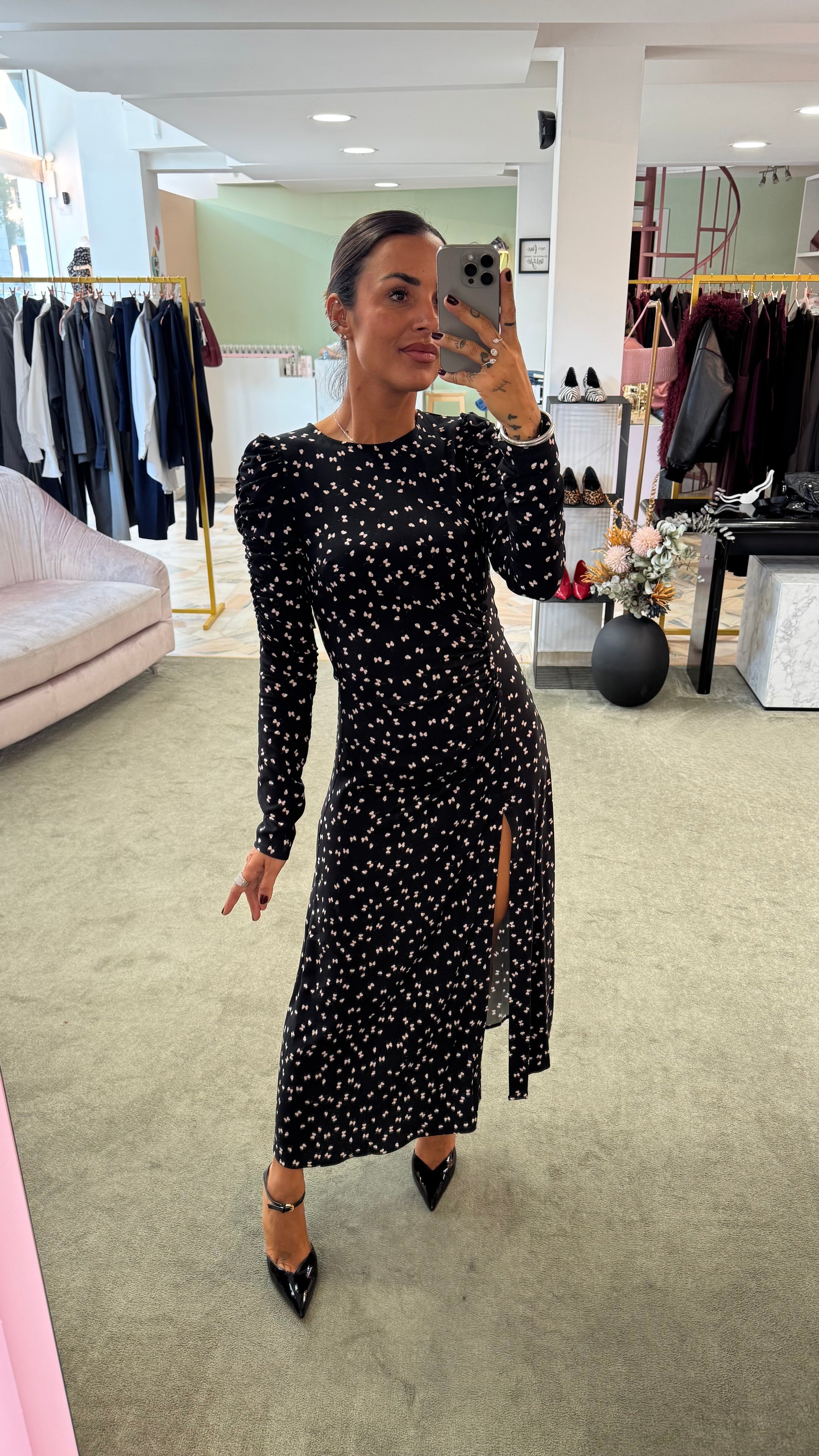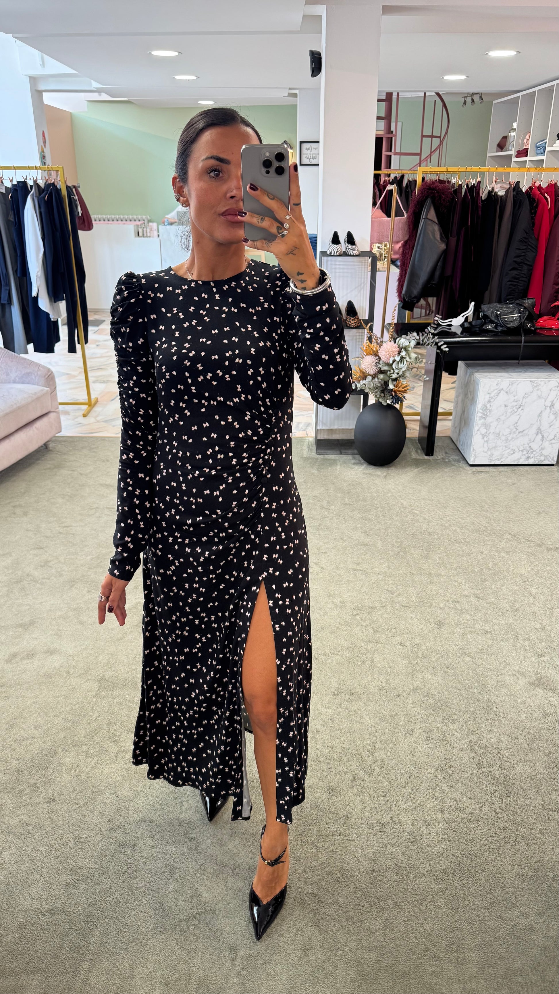 Abito chloe lungo MAR DE MARGARITAS nero con farfalline