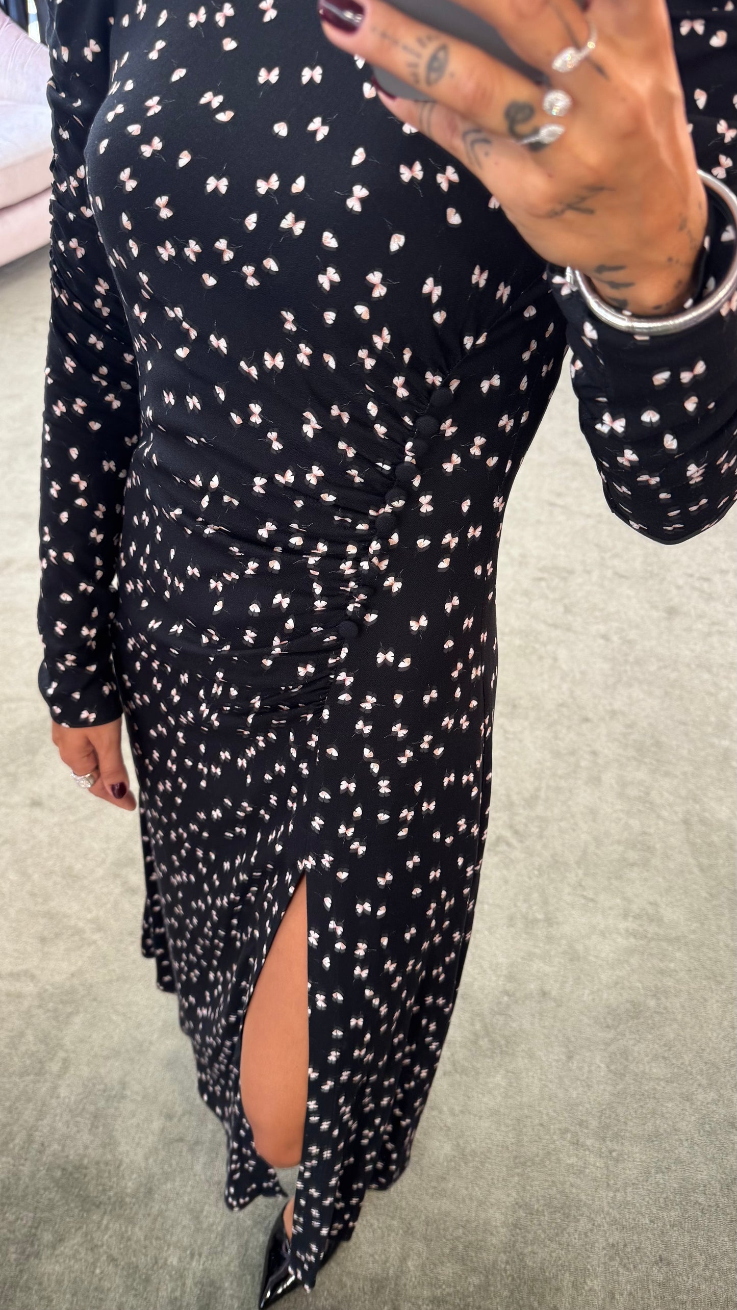 Vestibilità: regolare, con spacco, stampa farfalline