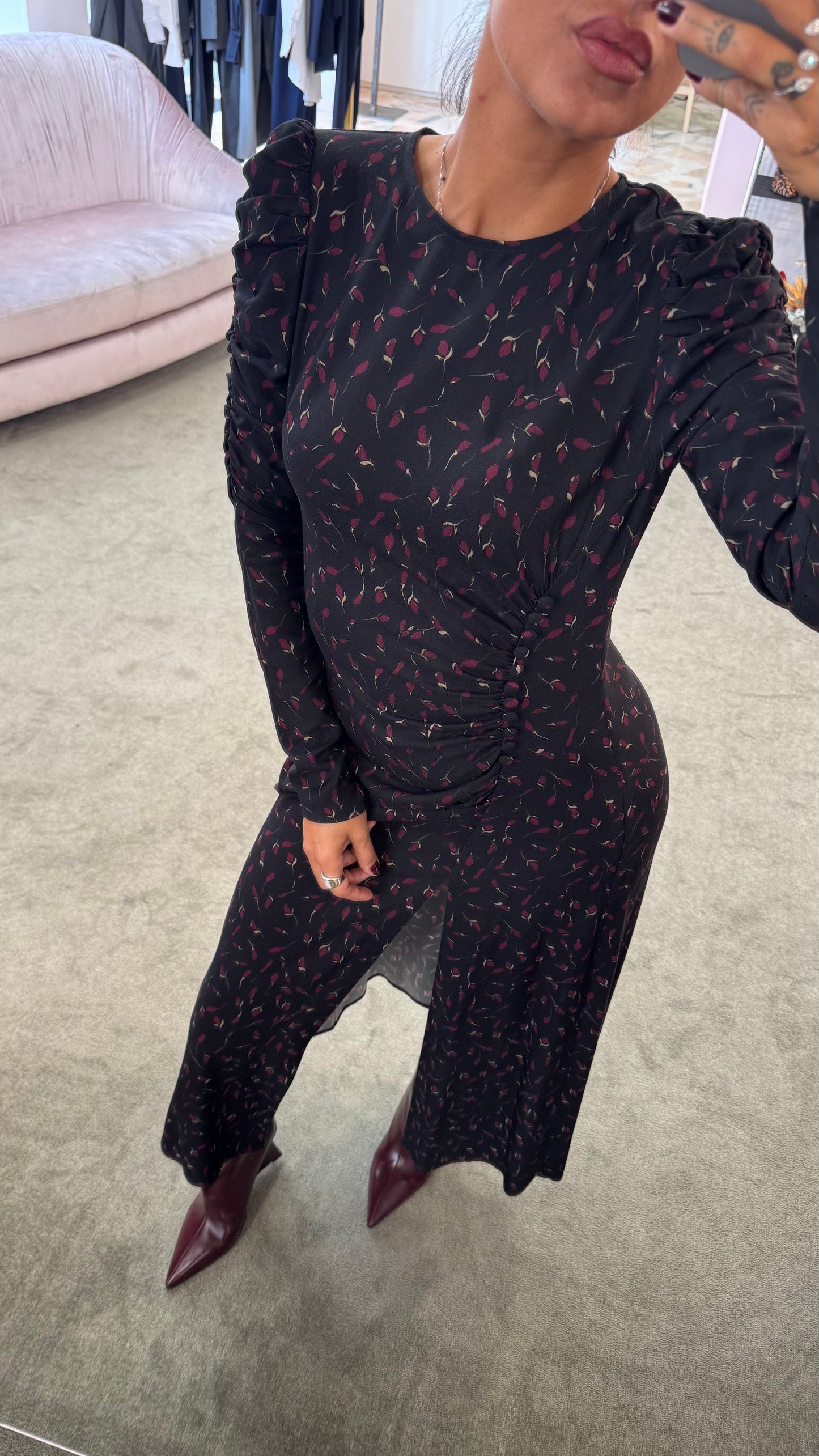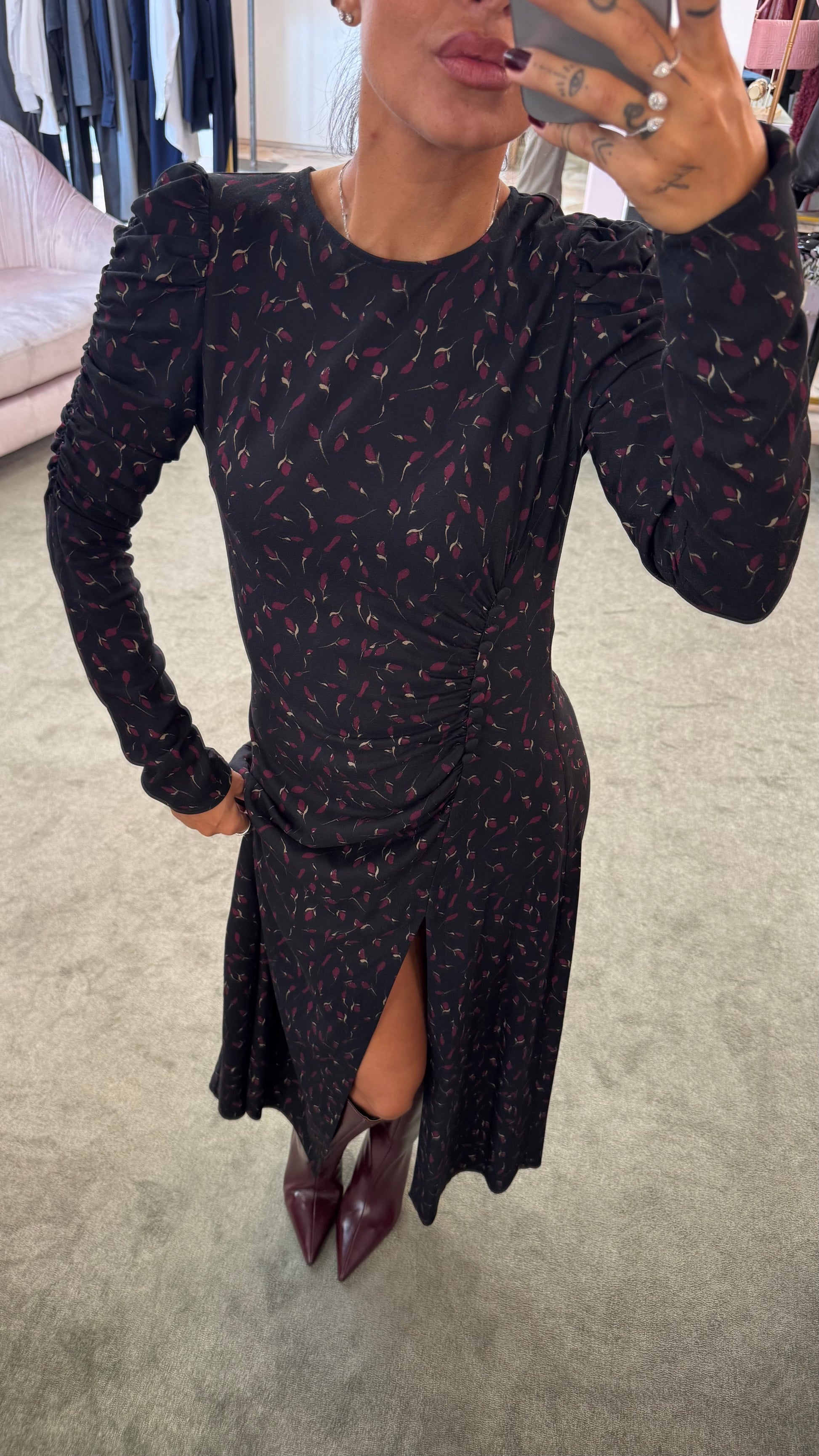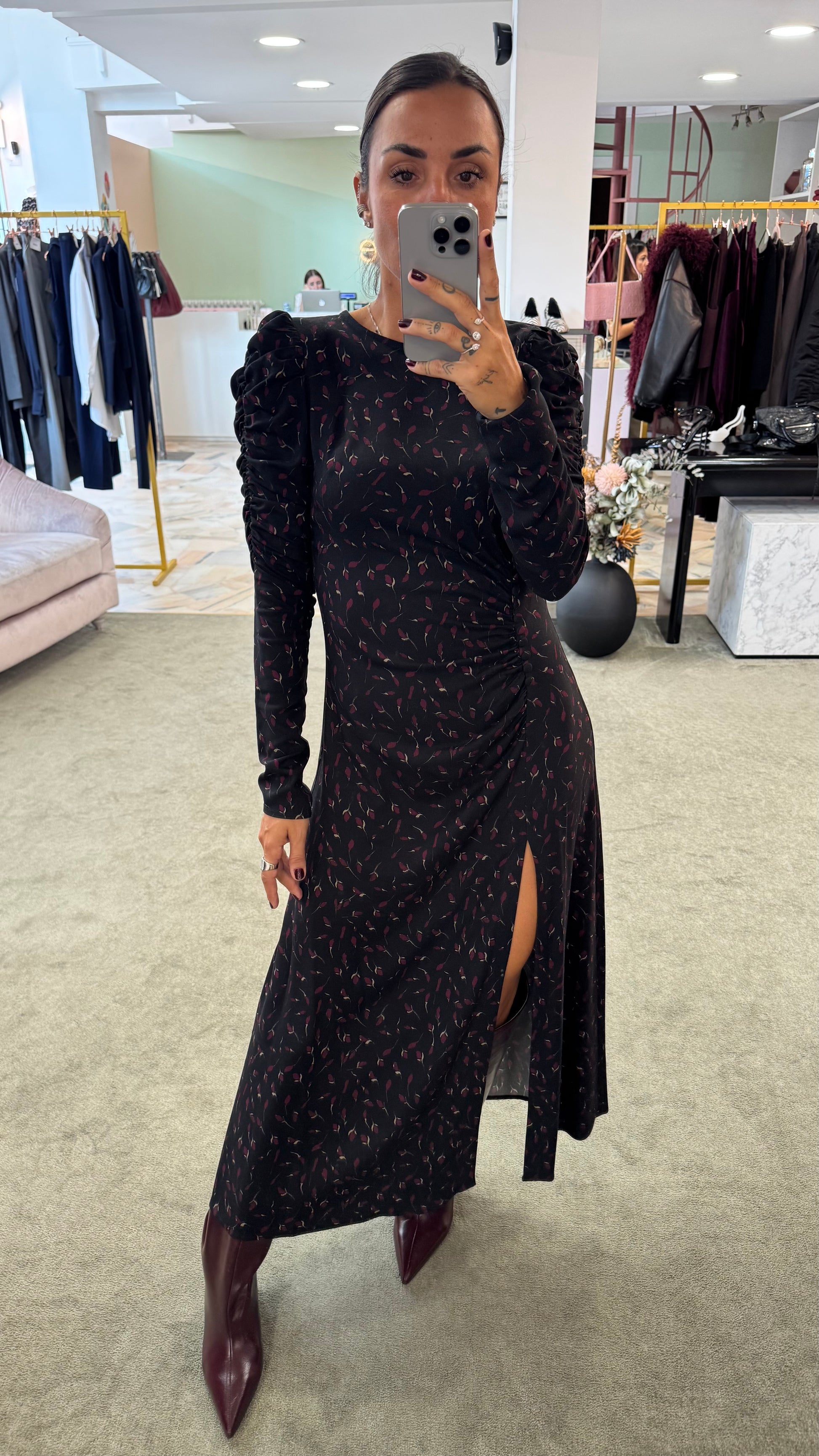 Abito chloe lungo MAR DE MARGARITAS nero con boccioli bordeaux