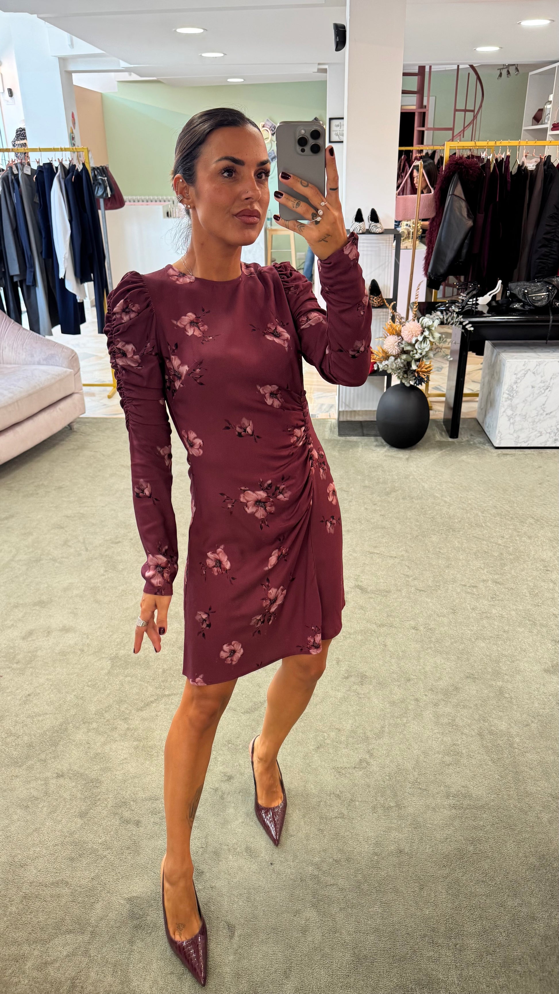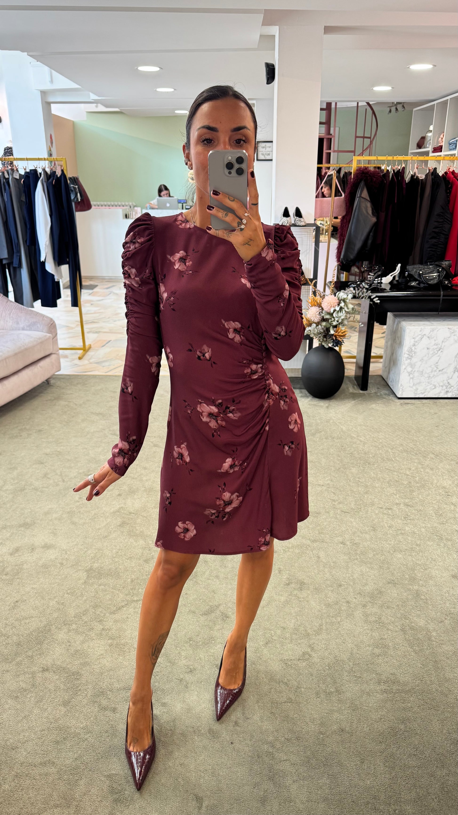 Abito dora corto MAR DE MARGARITAS bordeaux con fiori