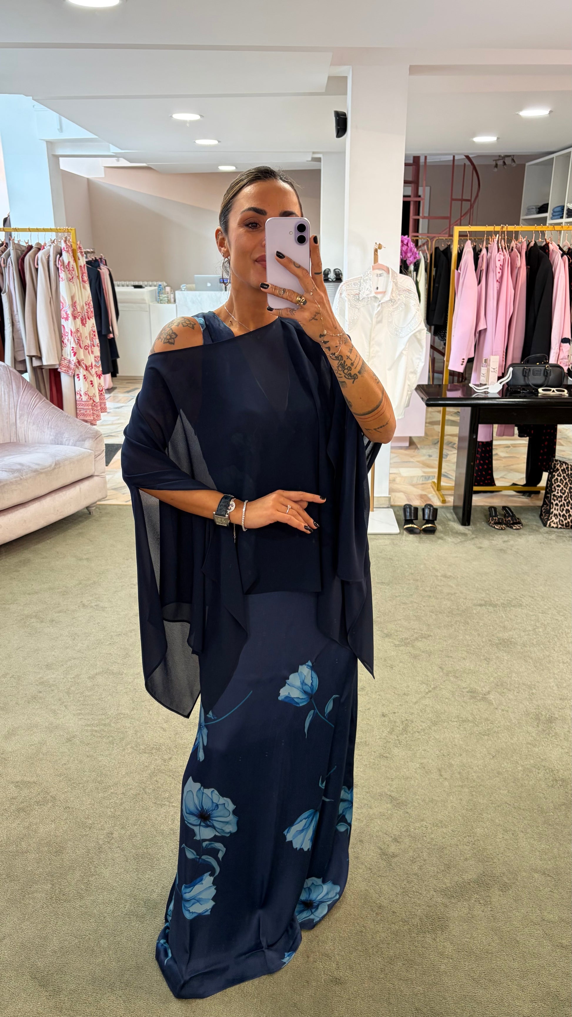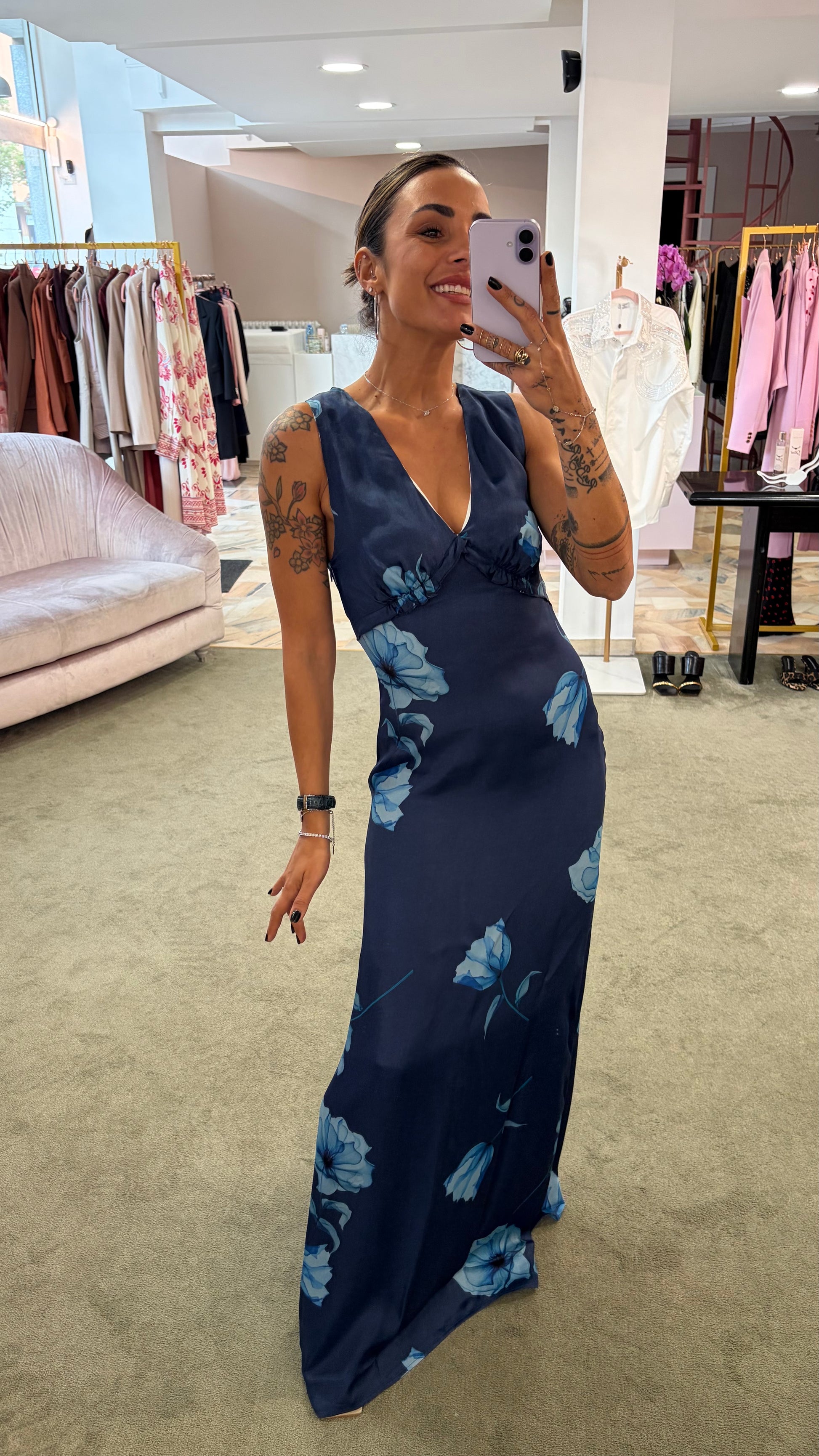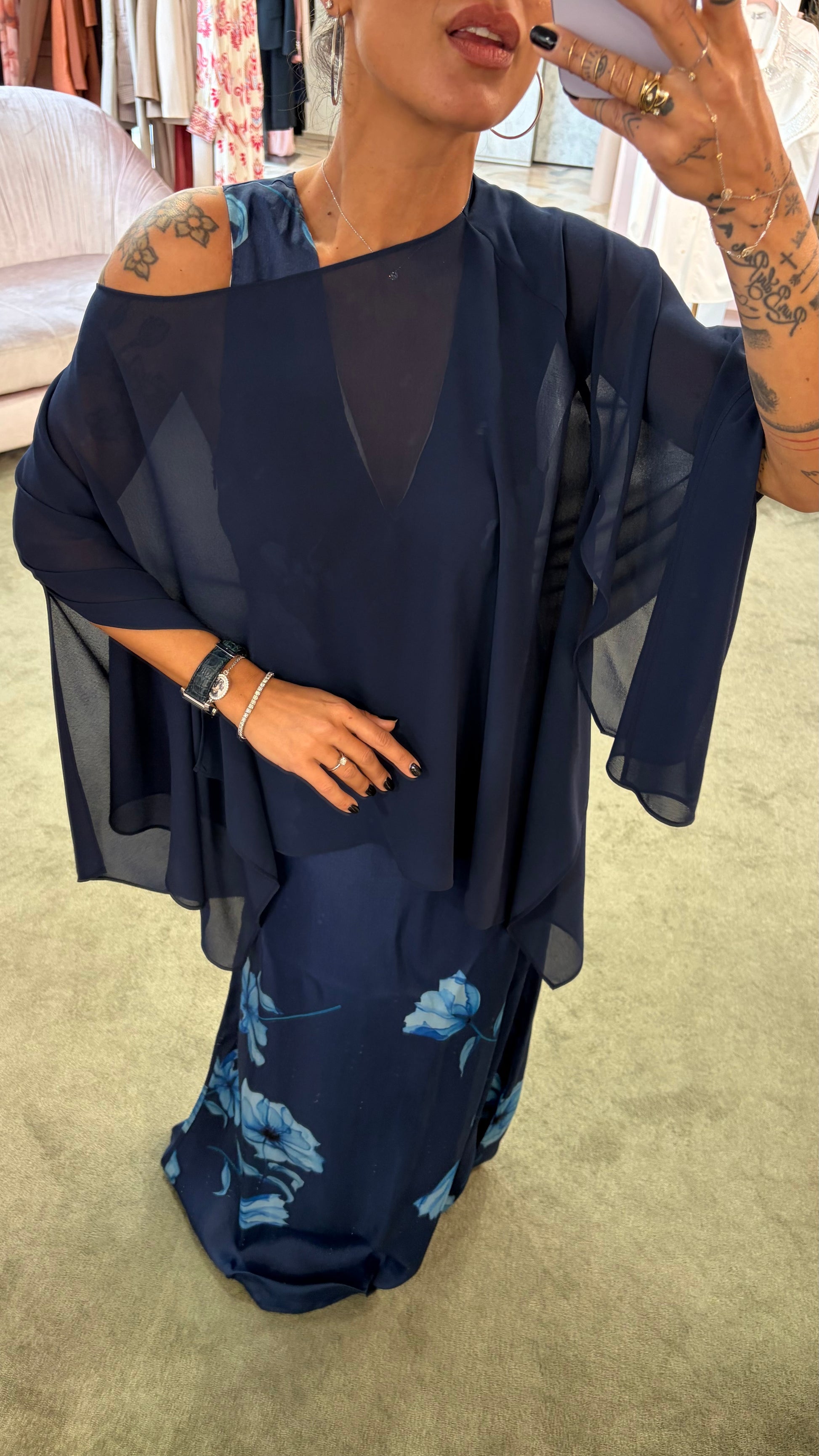 Abito ines lungo MAR DE MARGARITAS blu con fiori azzurri