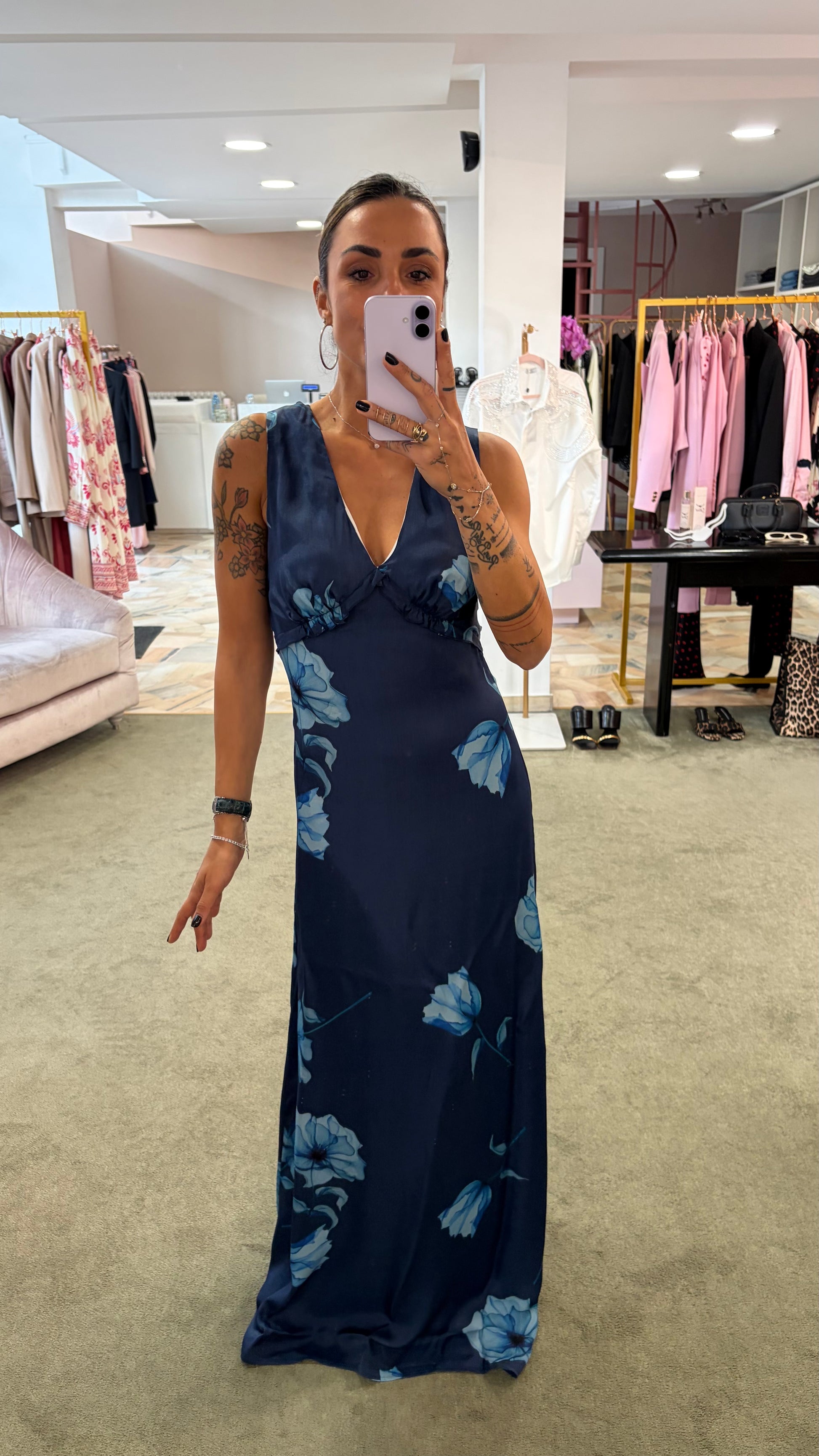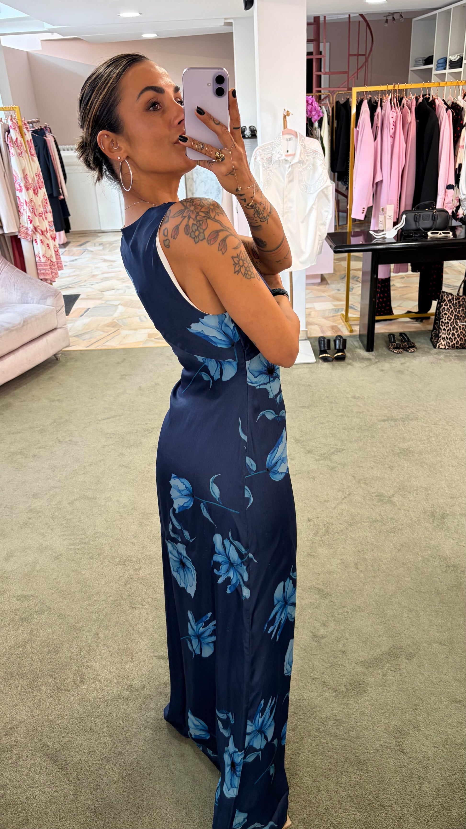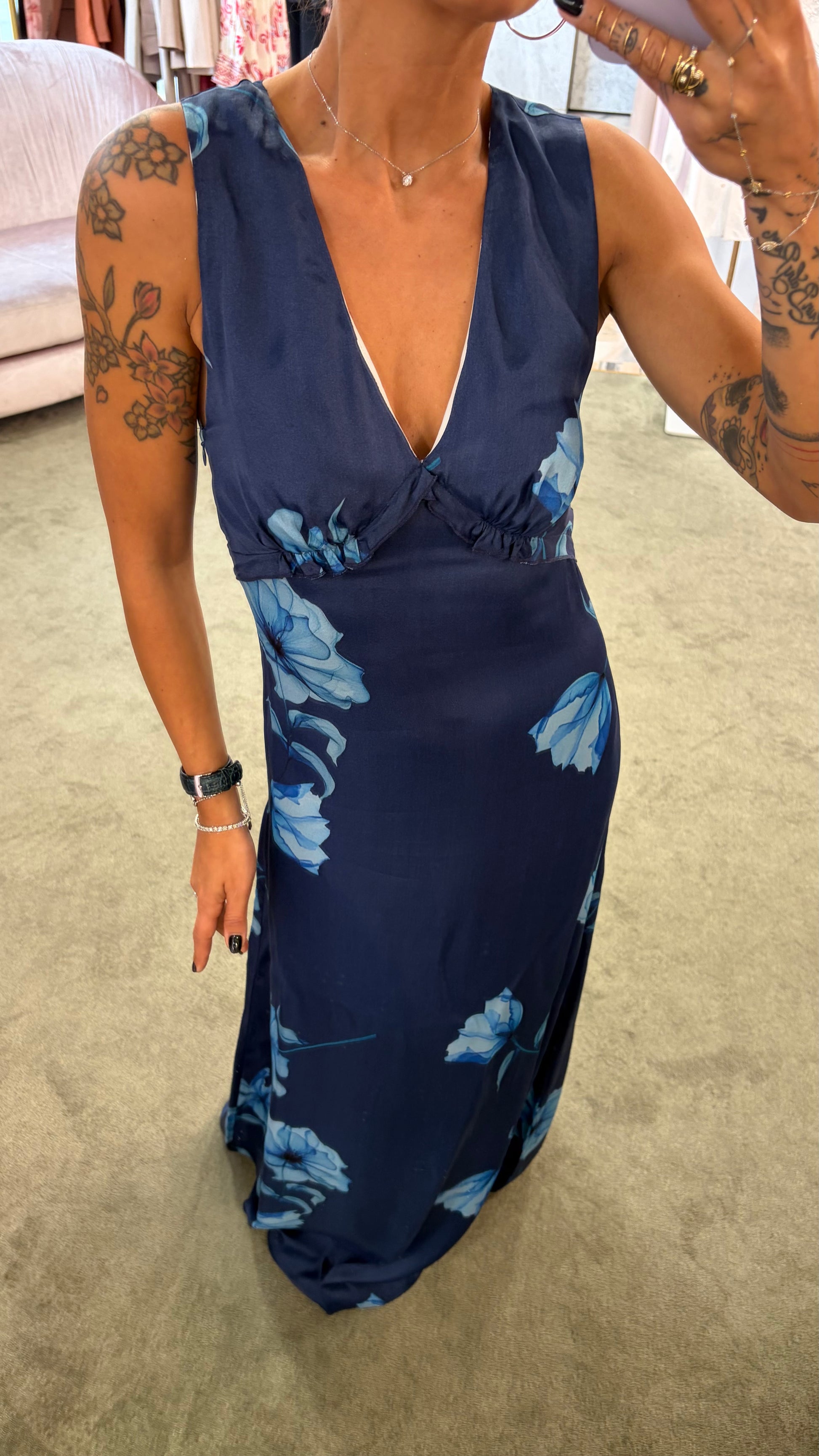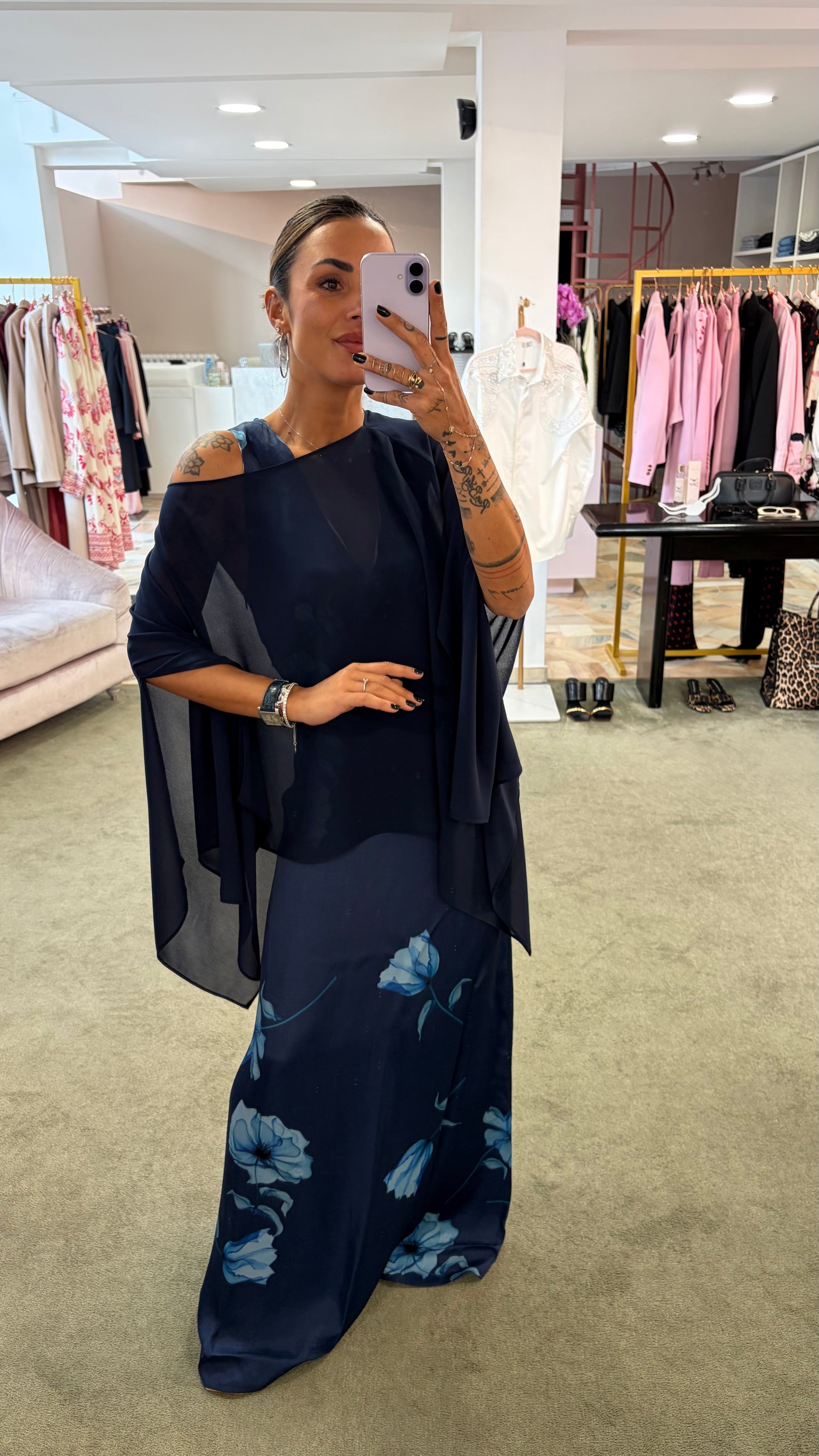 Abito ines lungo MAR DE MARGARITAS blu con fiori azzurri