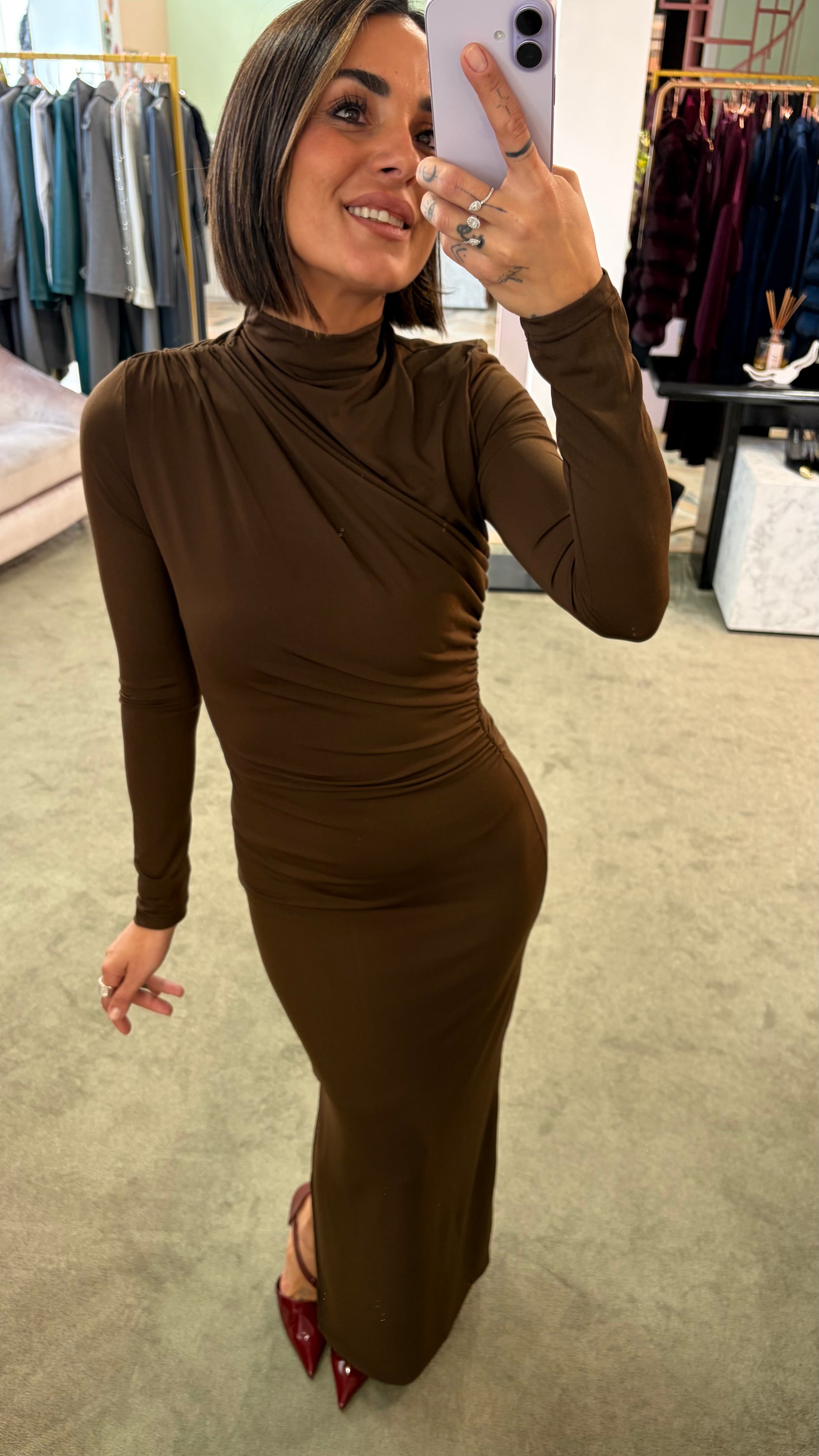 Vestibilità: regolare, tubino lungo arricciato elasticizzato, a lupetto, zip posteriore
