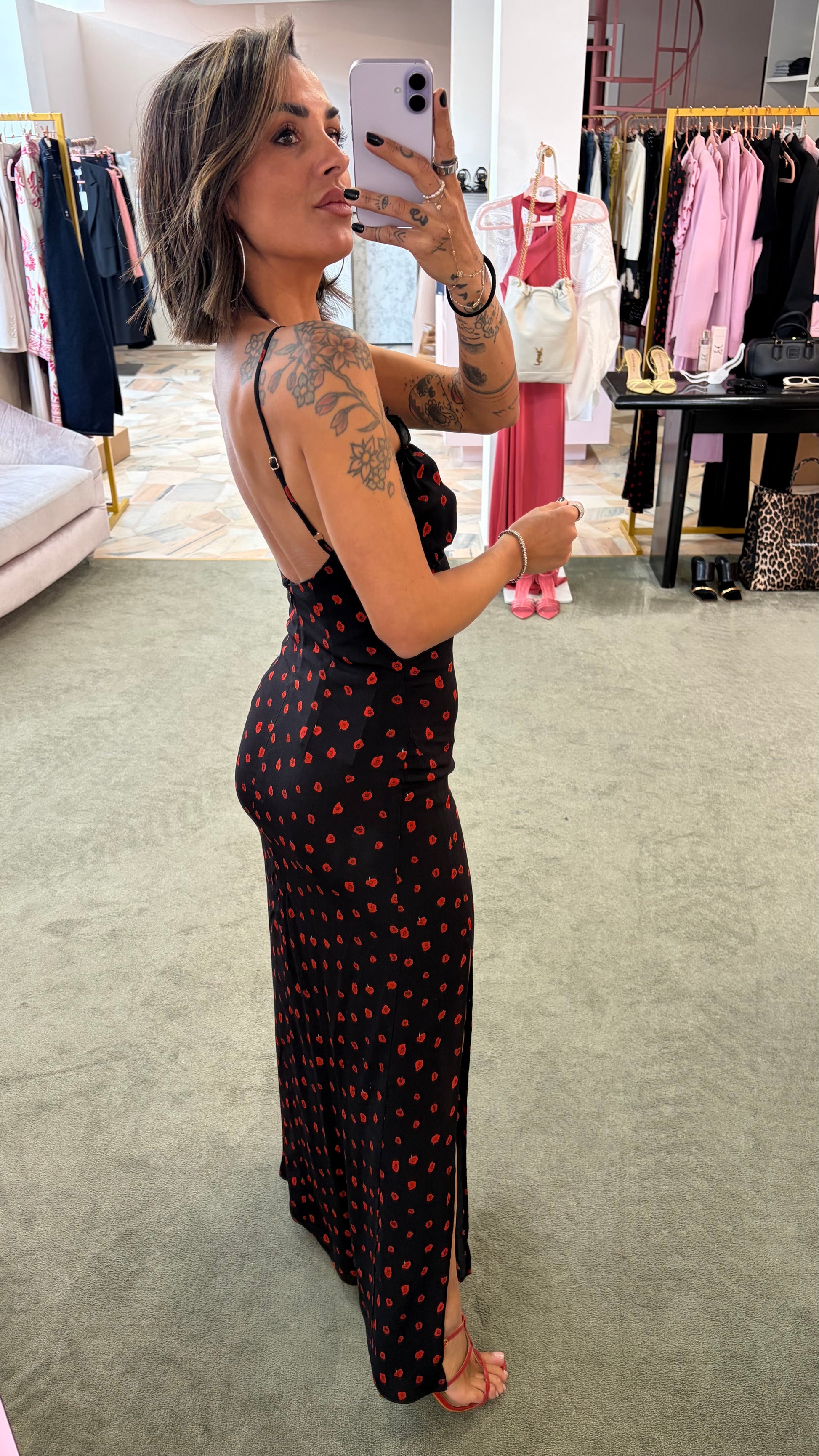 Abito riley lungo MAR DE MARGARITAS nero con rose