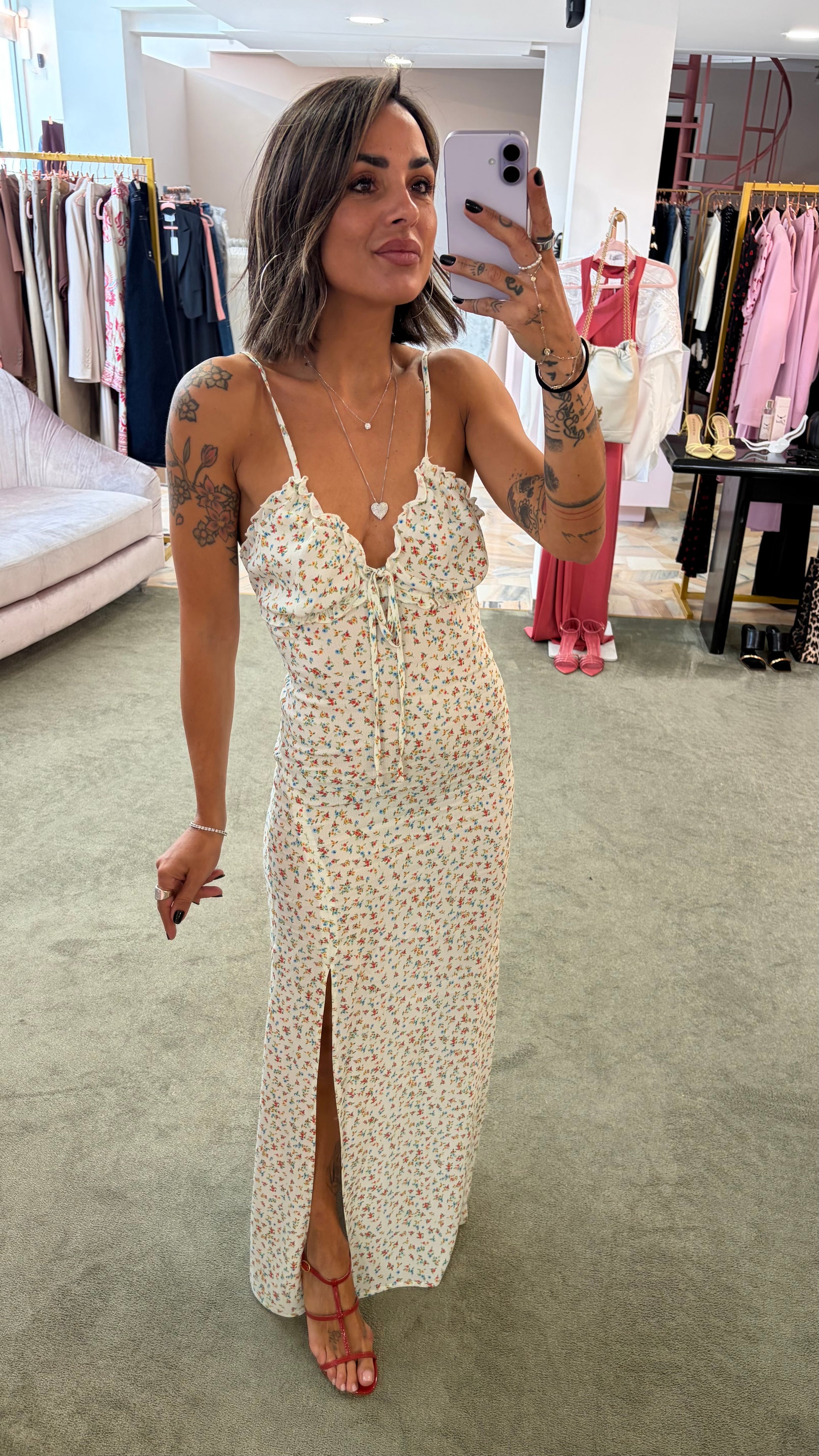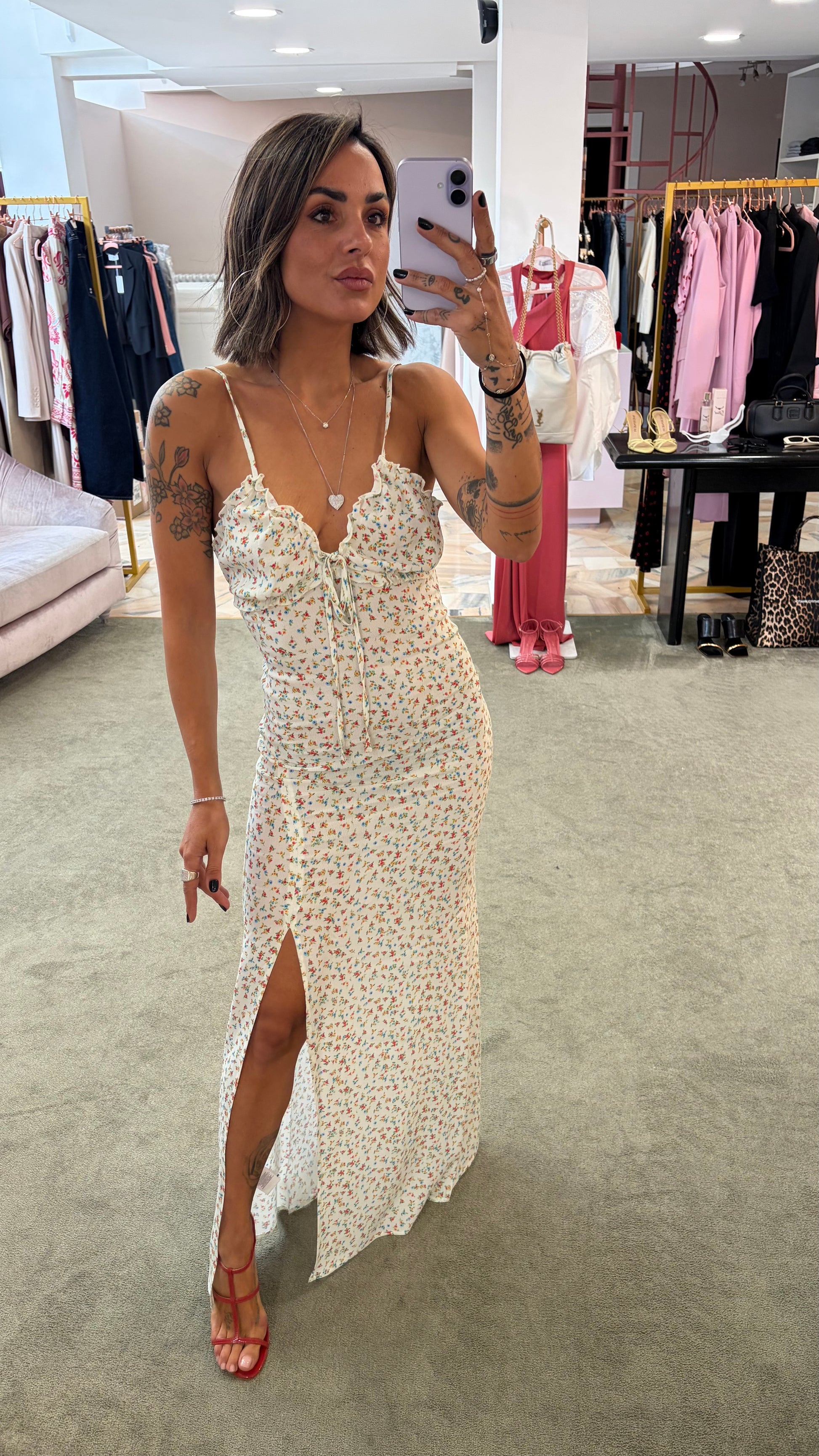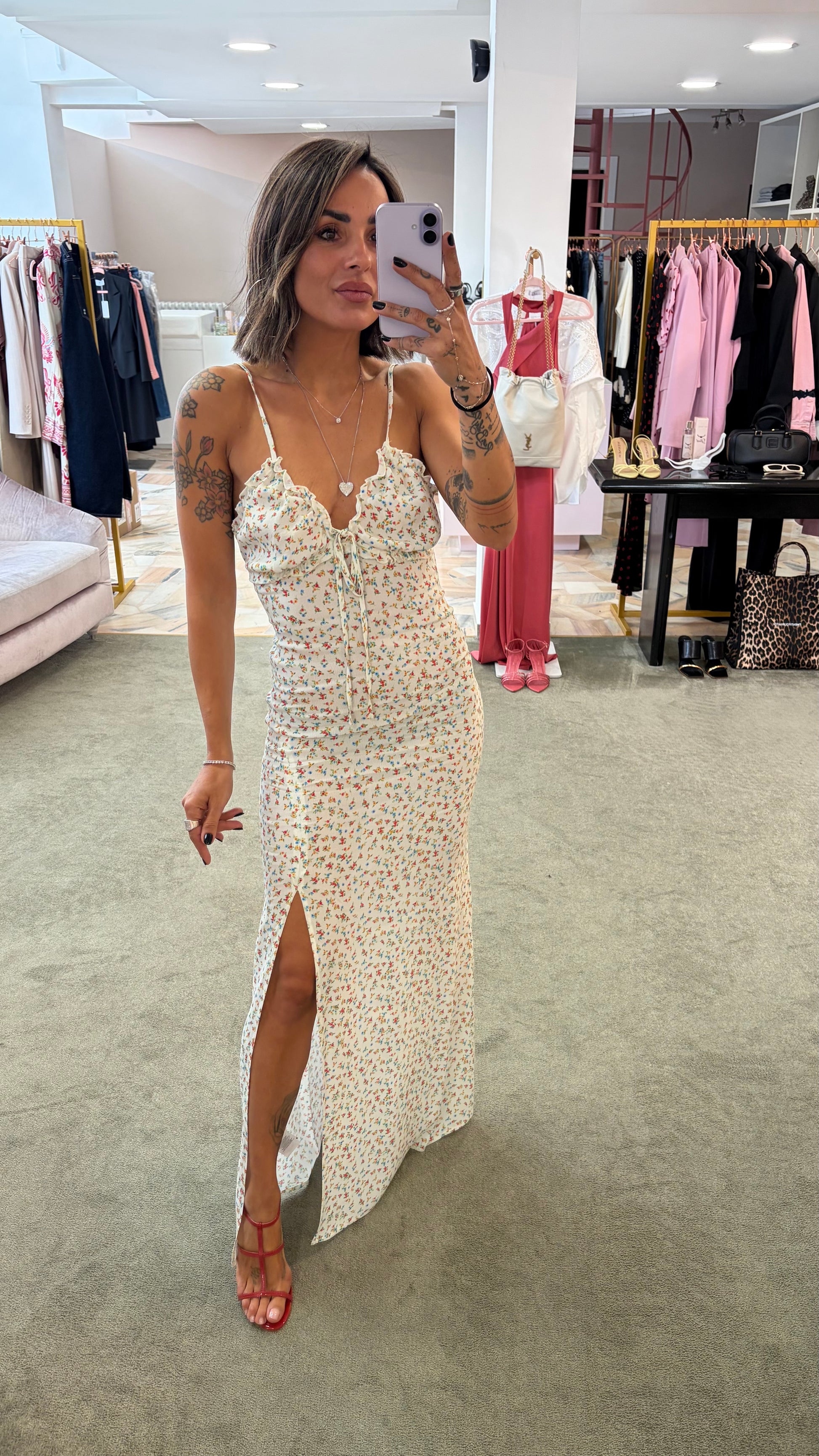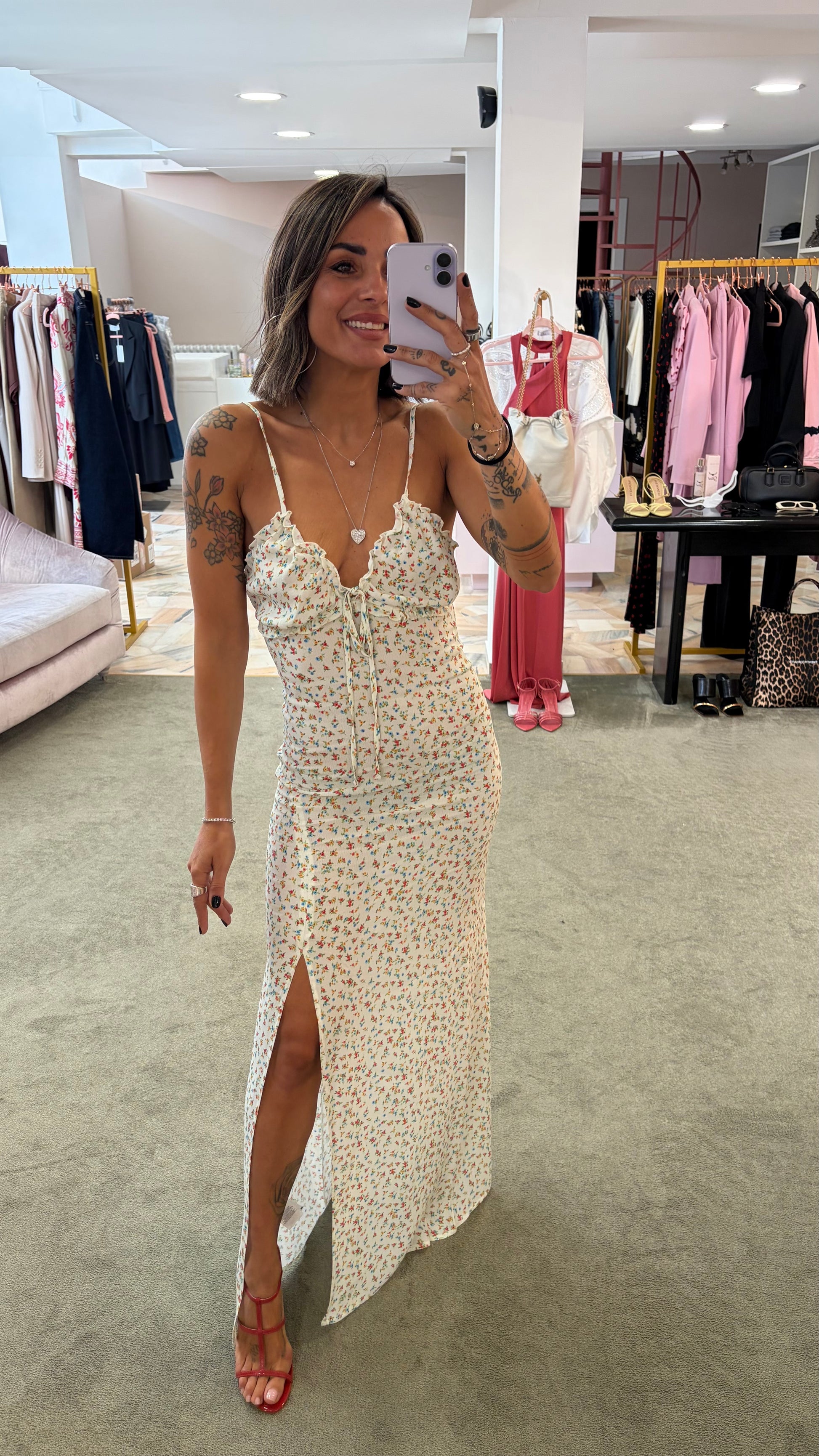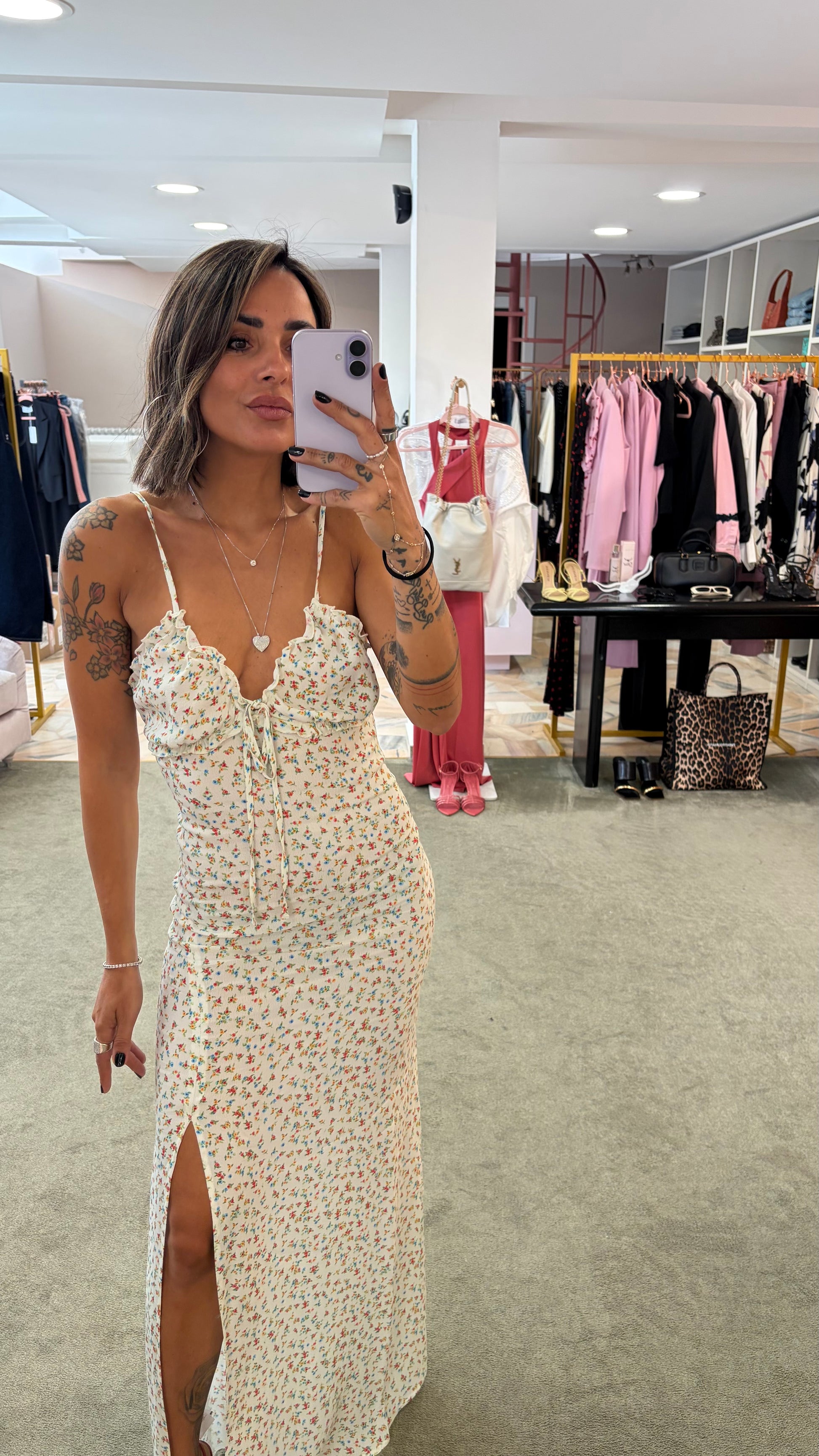 Abito riley lungo MAR DE MARGARITAS panna con fiorellini