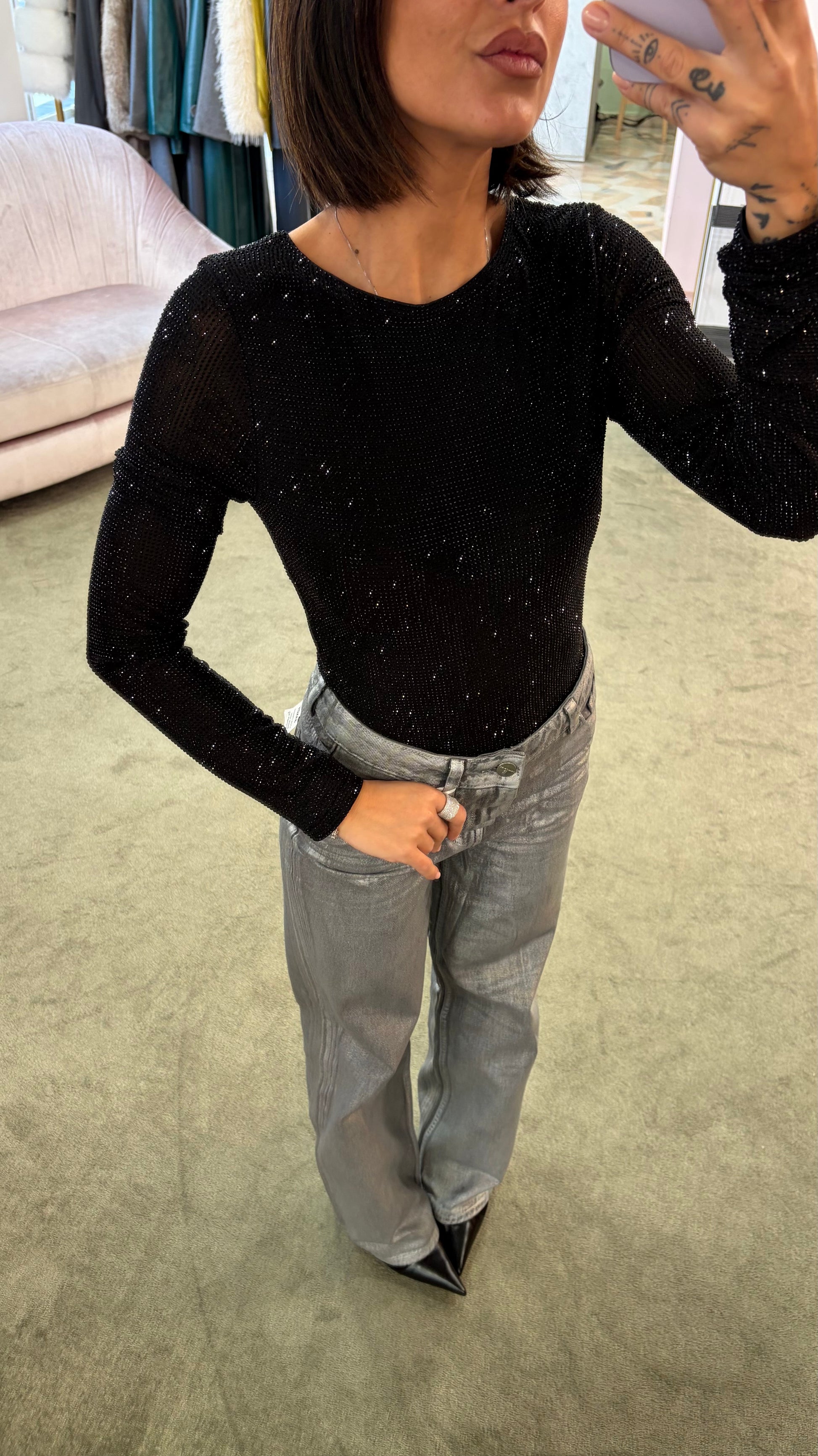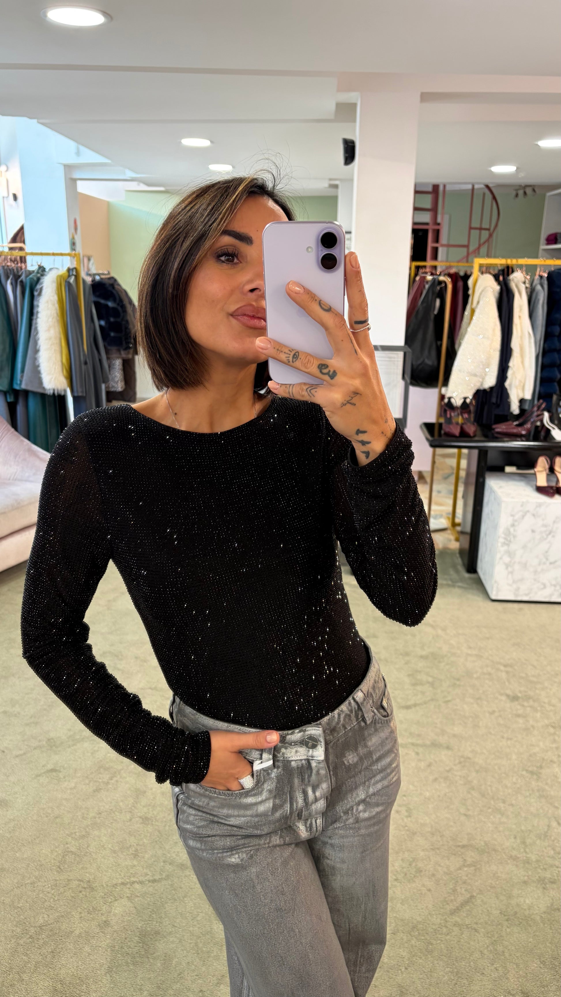 Vestibilità: regolare, scollo tondo e manica a guanto.