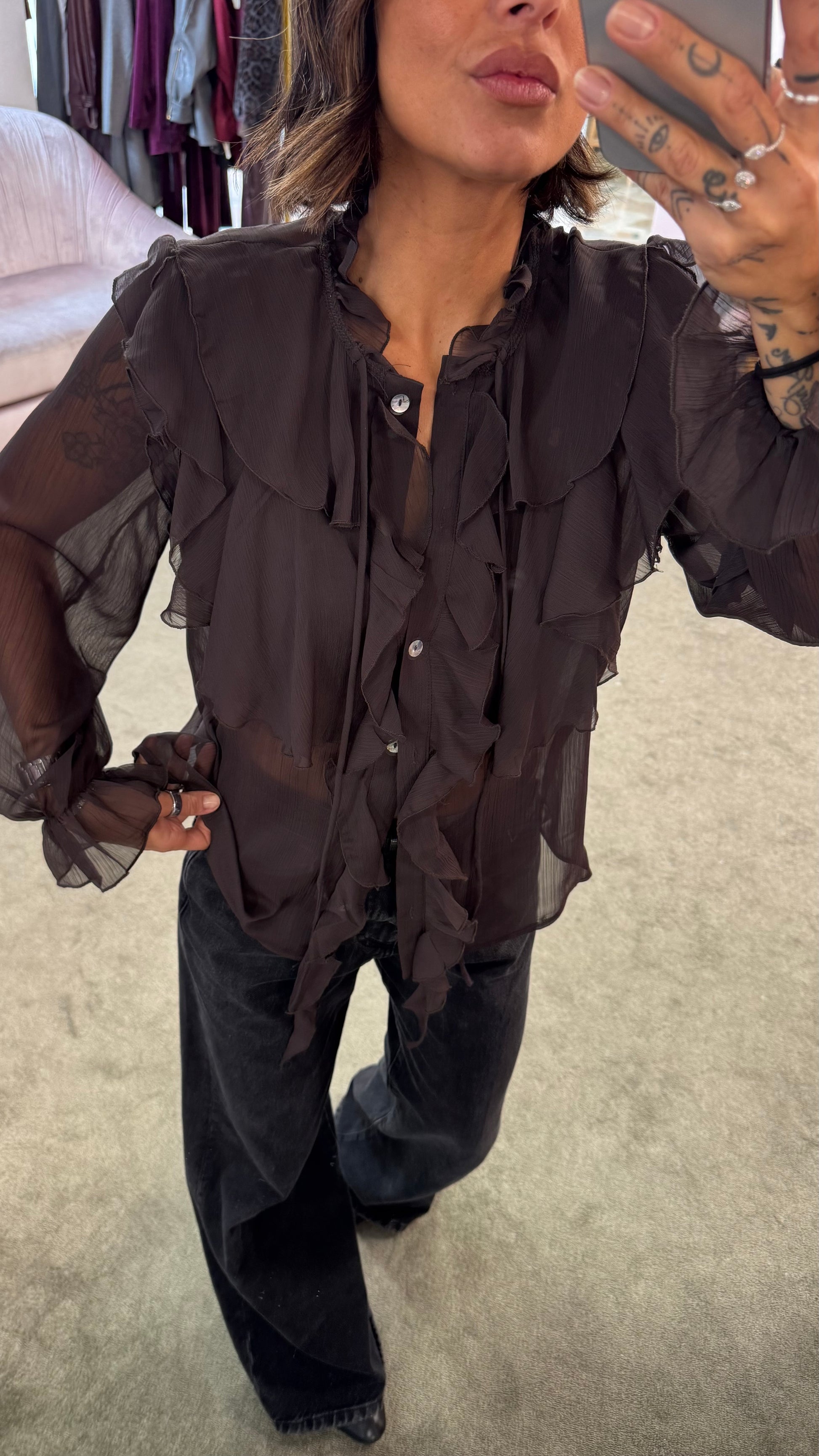 Vestibilità: regolare, collo alla coreana, tessuto semitrasparente
