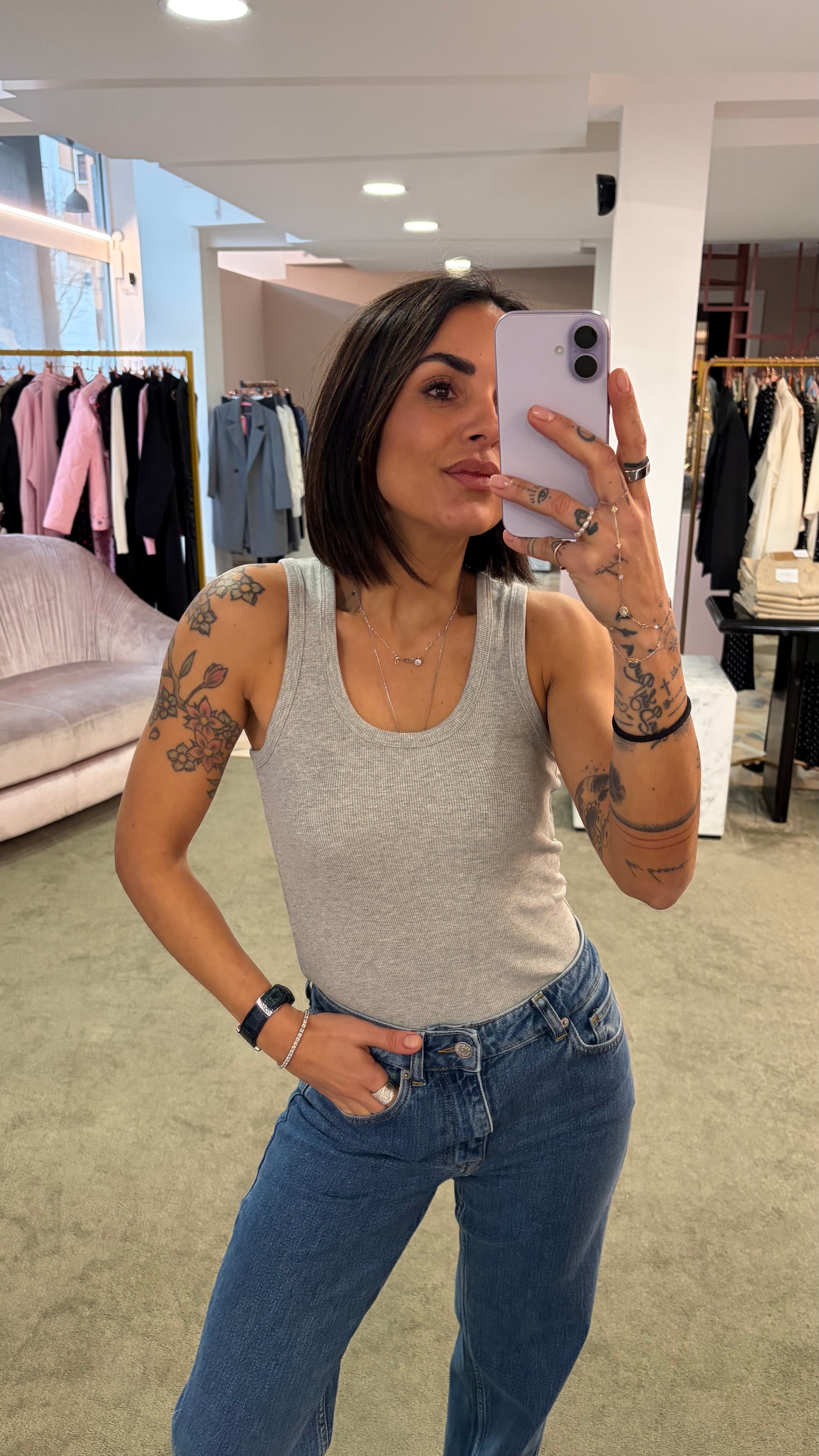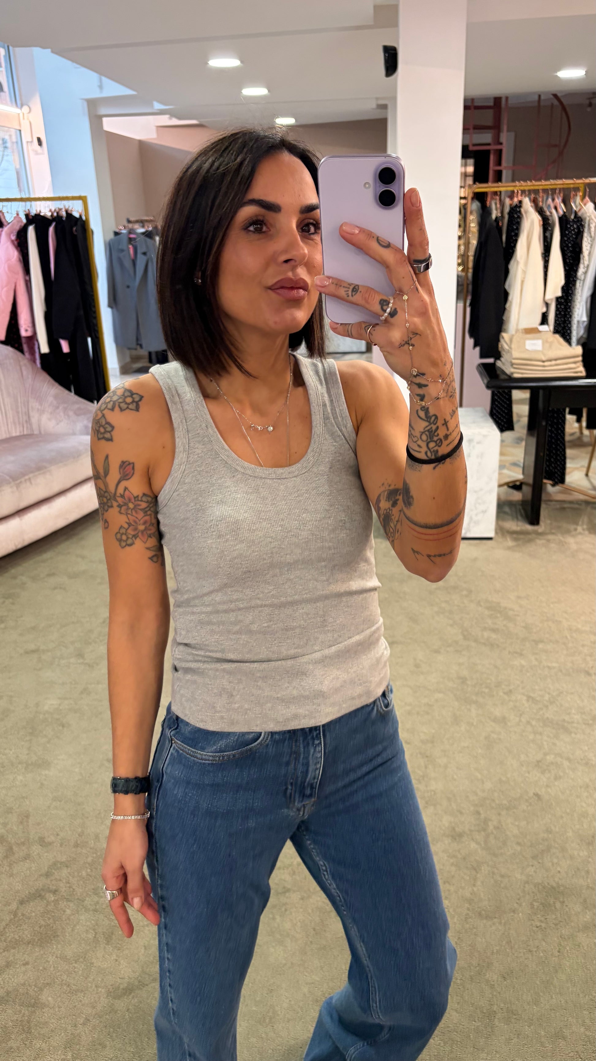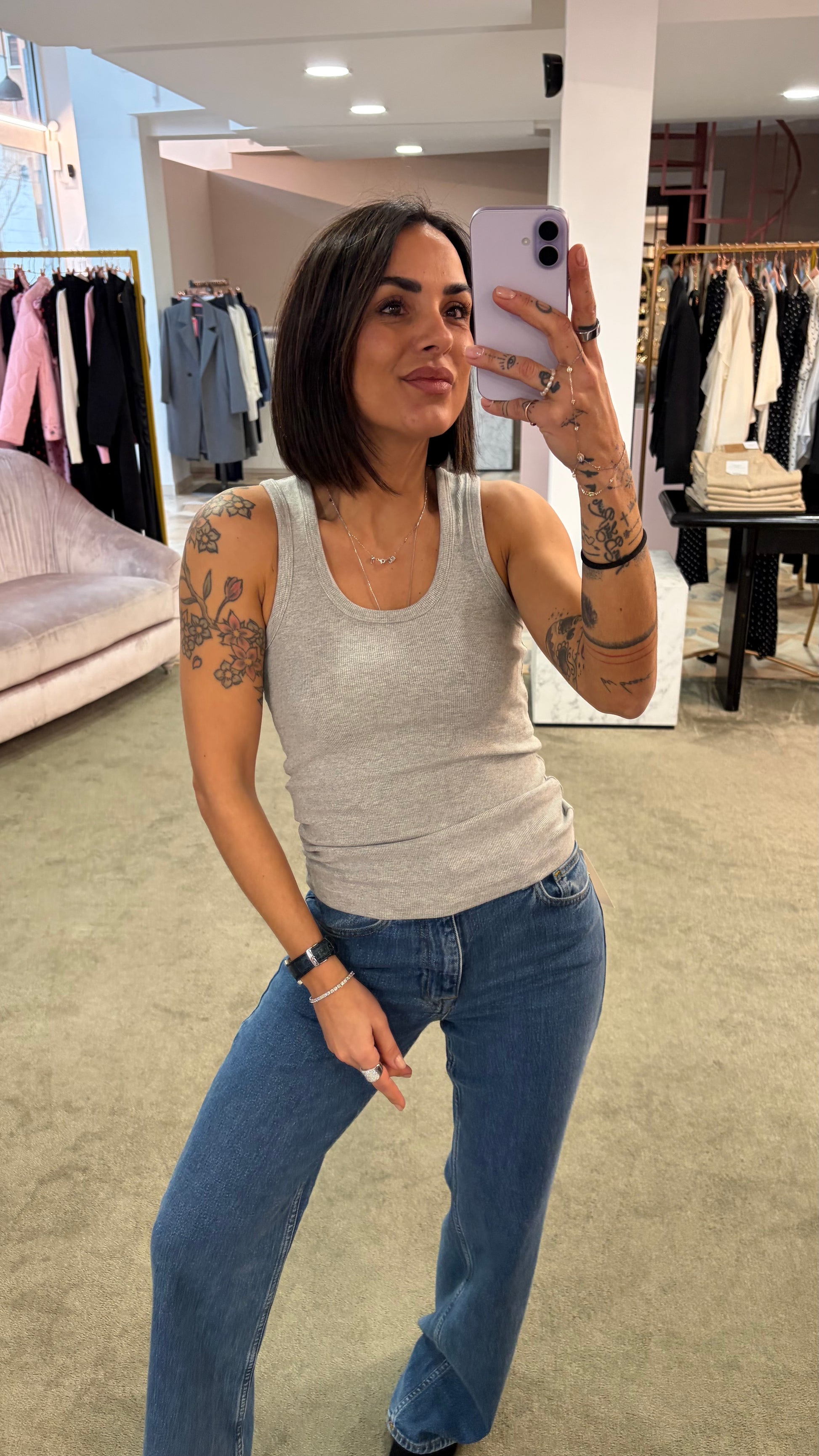 Canotta grigia melange a costine scollo tondo jx