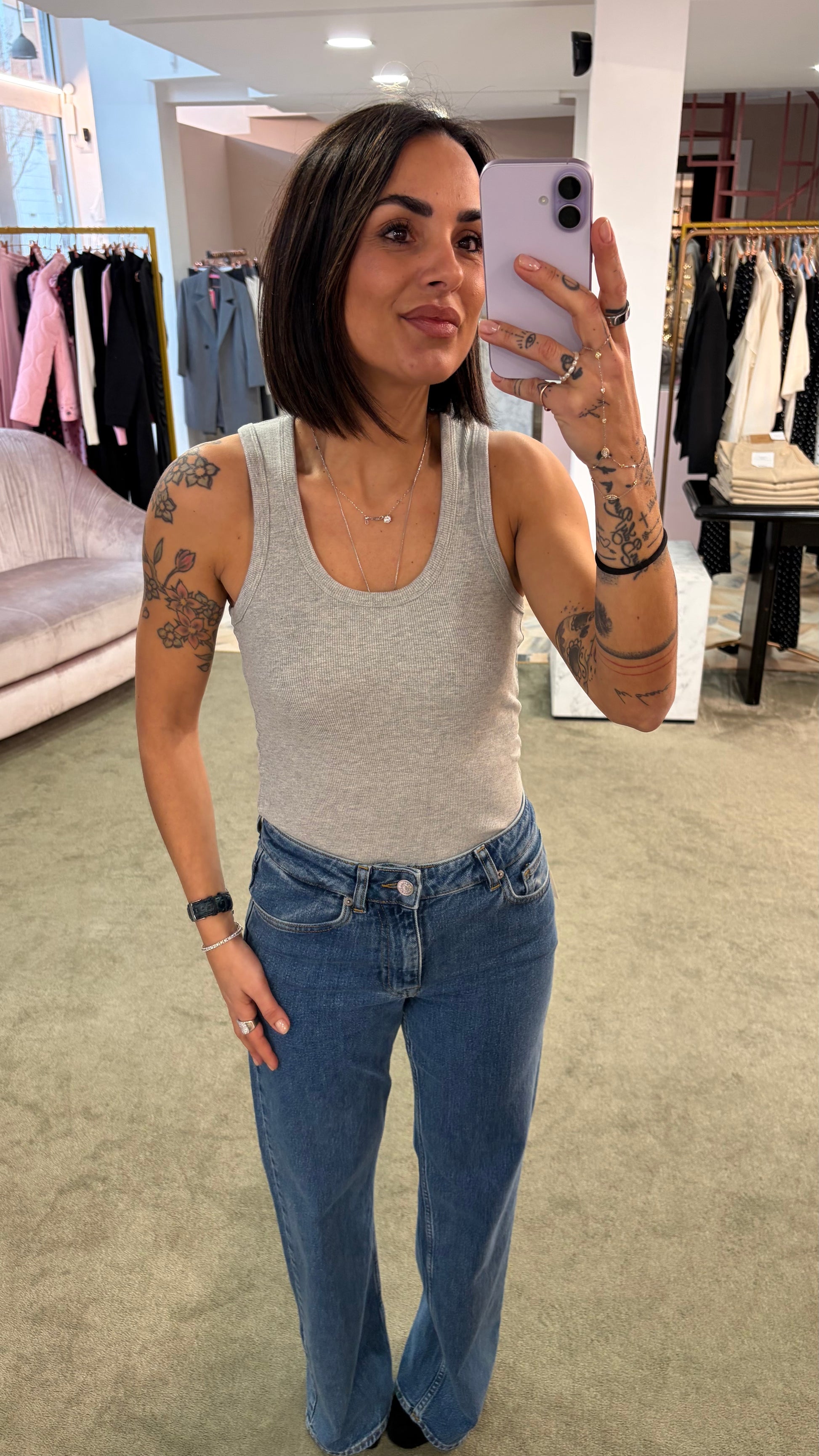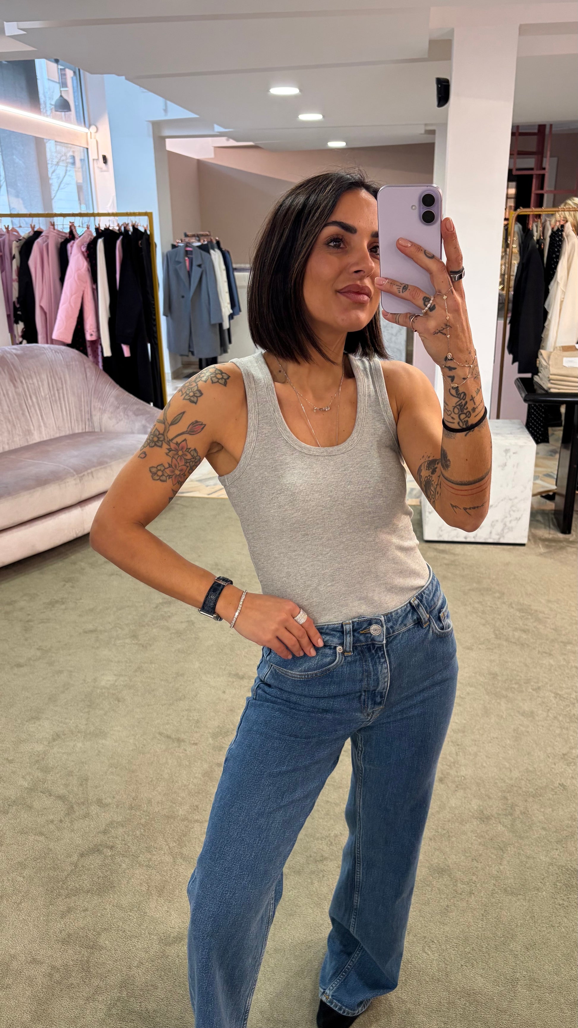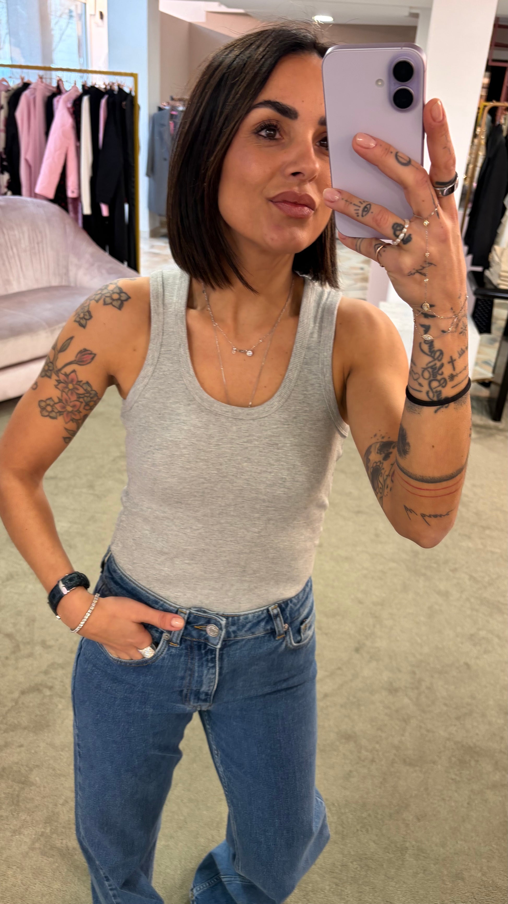 Canotta grigia melange a costine scollo tondo jx