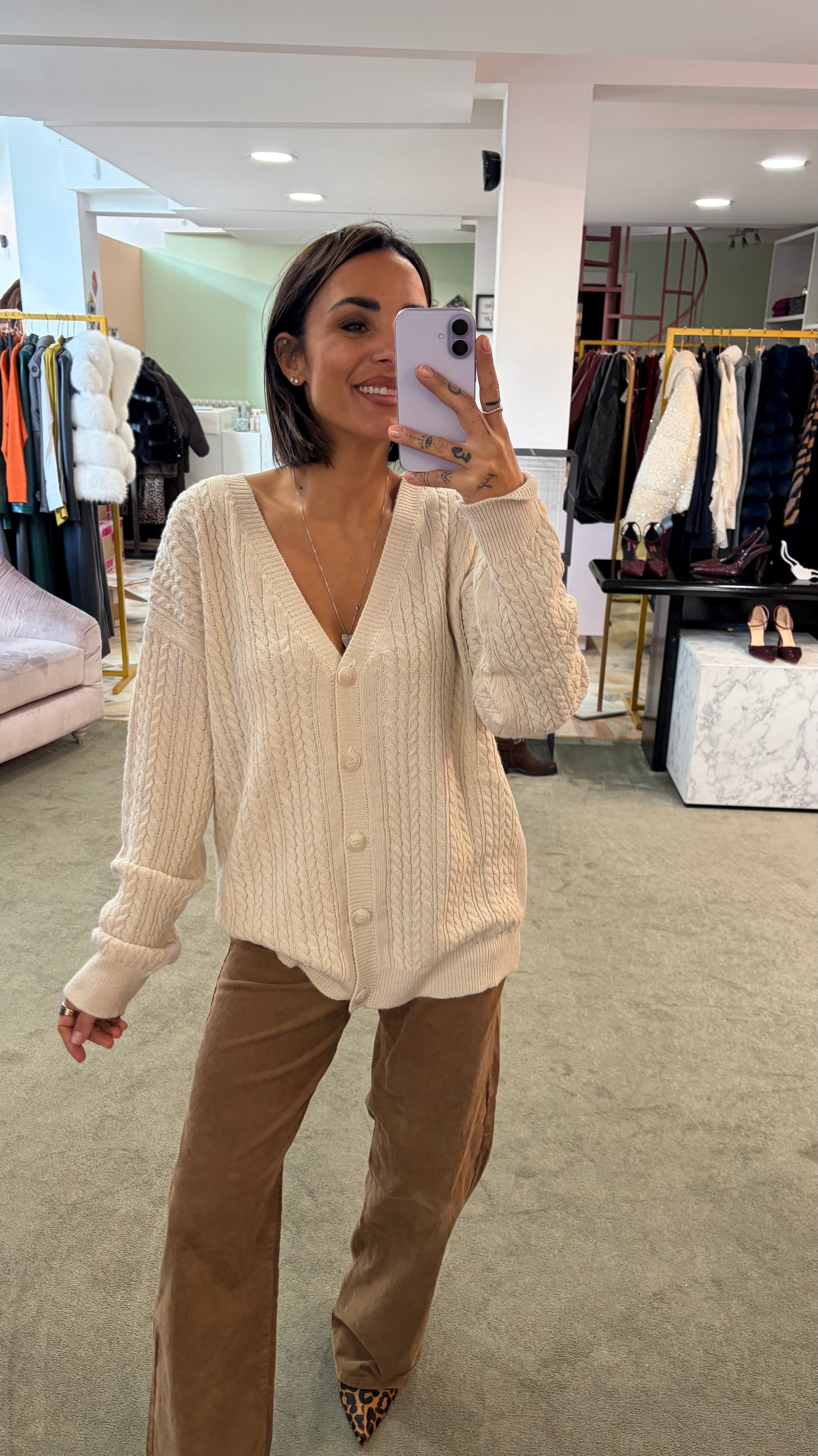 Cardigan a trecce MAR DE MARGARITAS panna