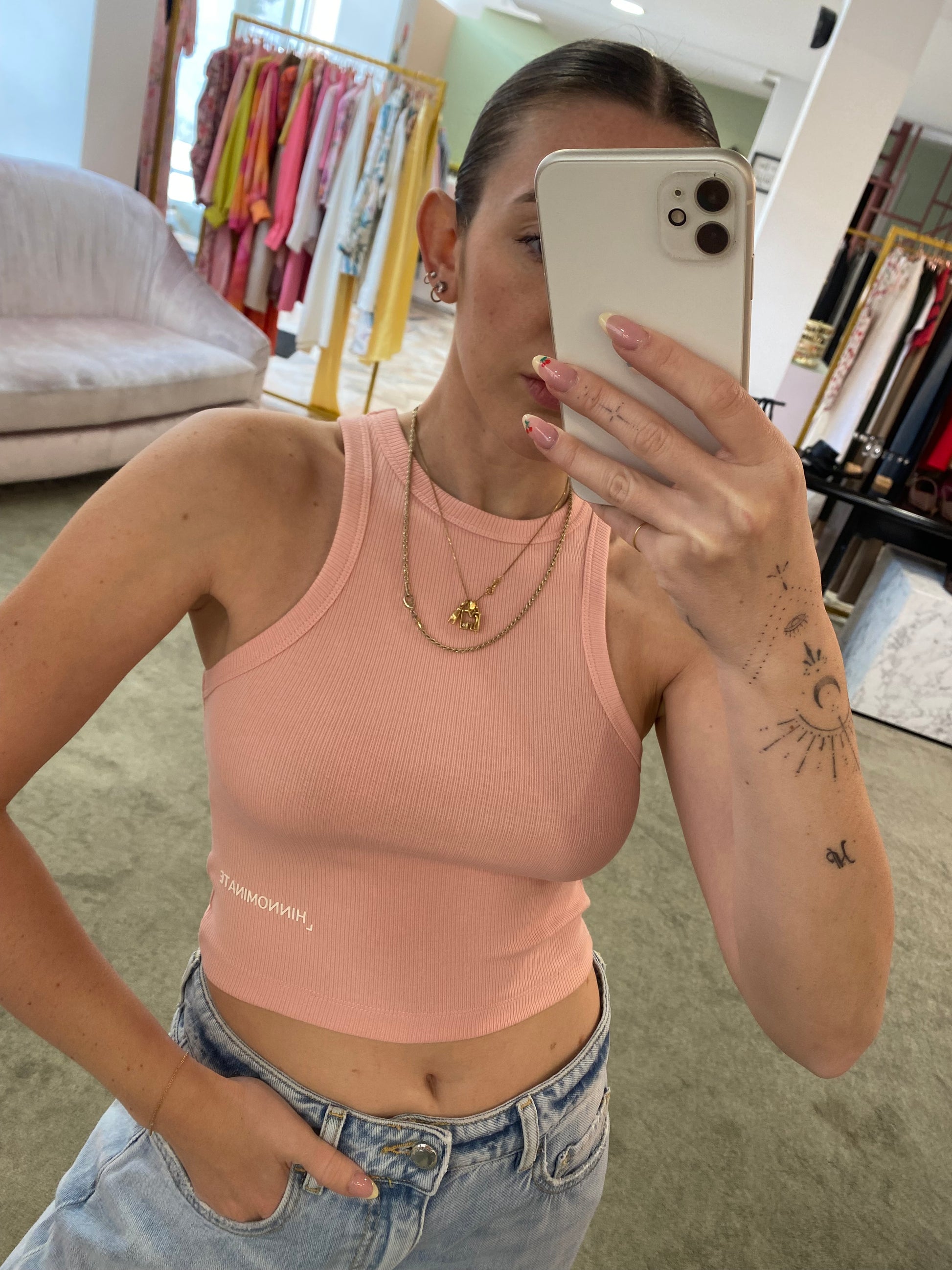 Crop top rosa cipria a costine hinnominate