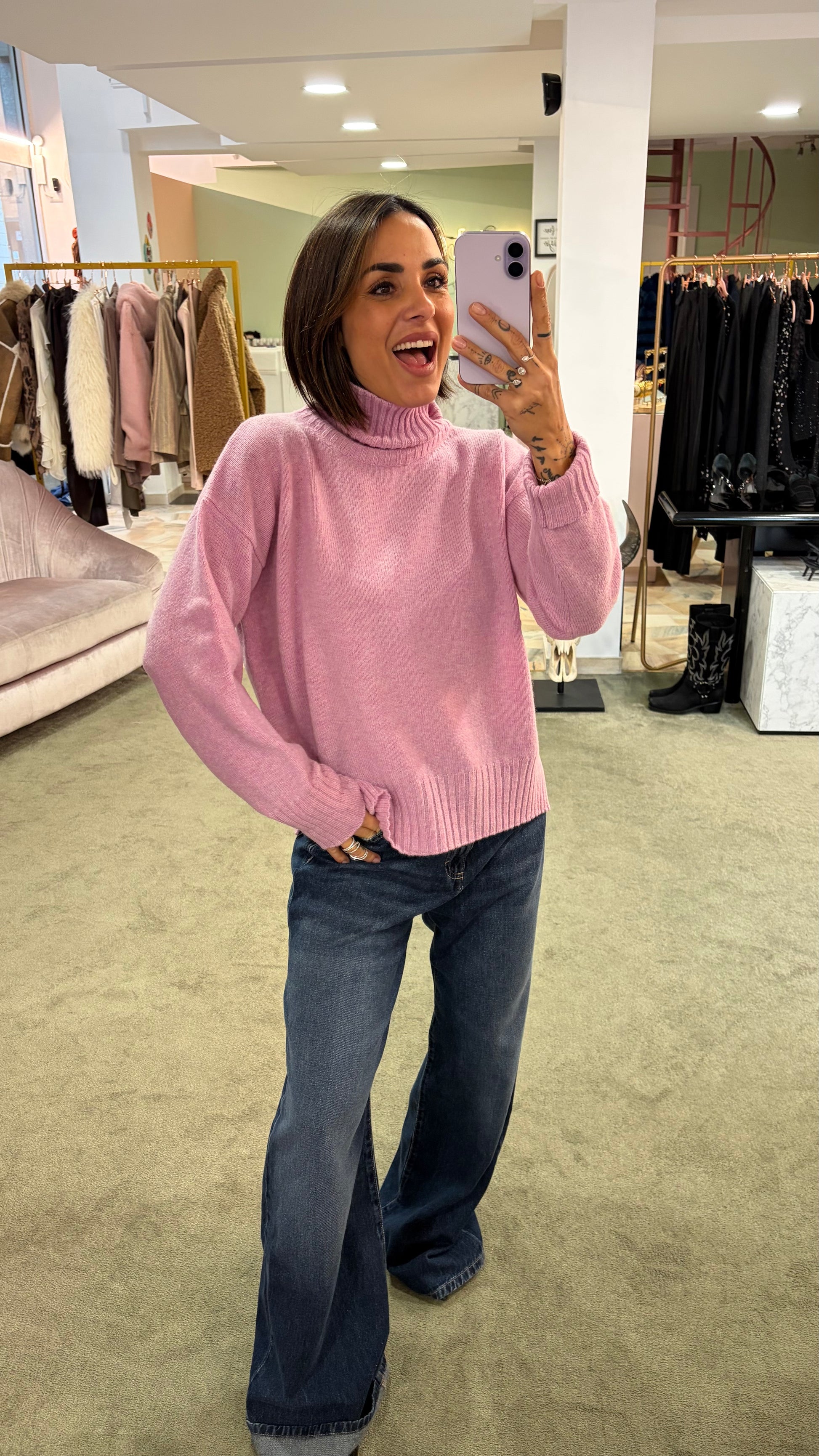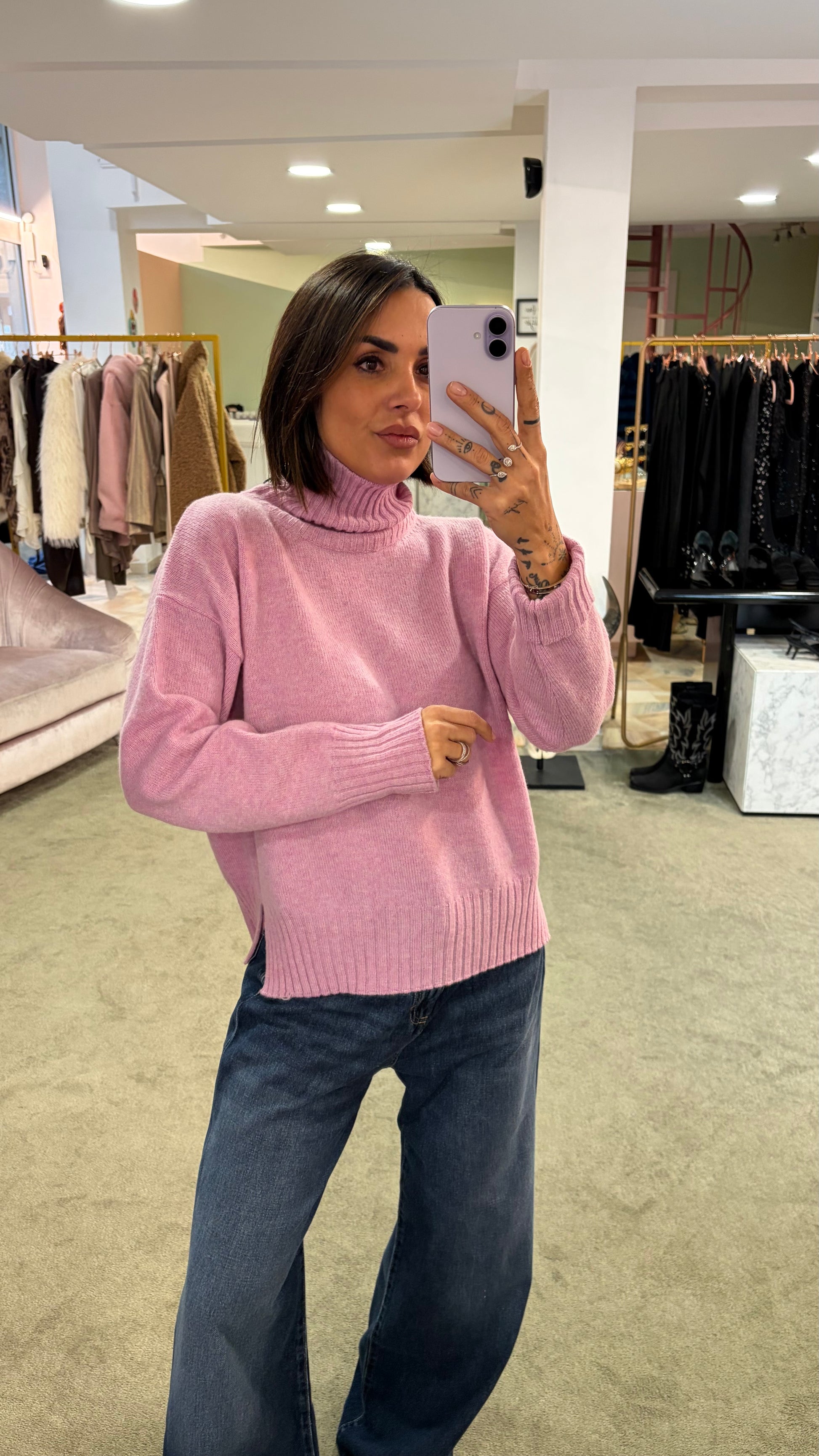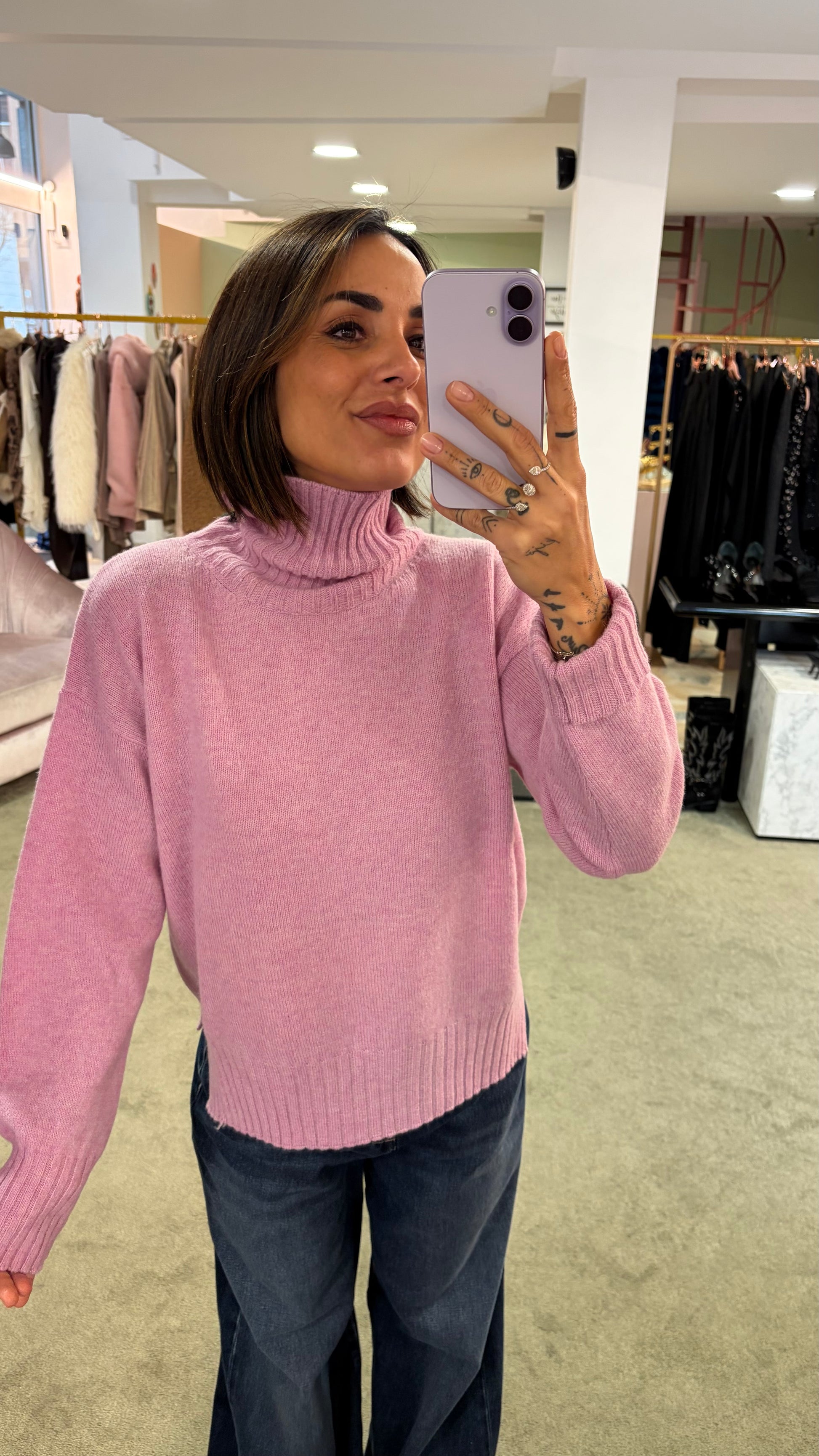 Dolcevita rosa peonia a scatoletta in lana Irish