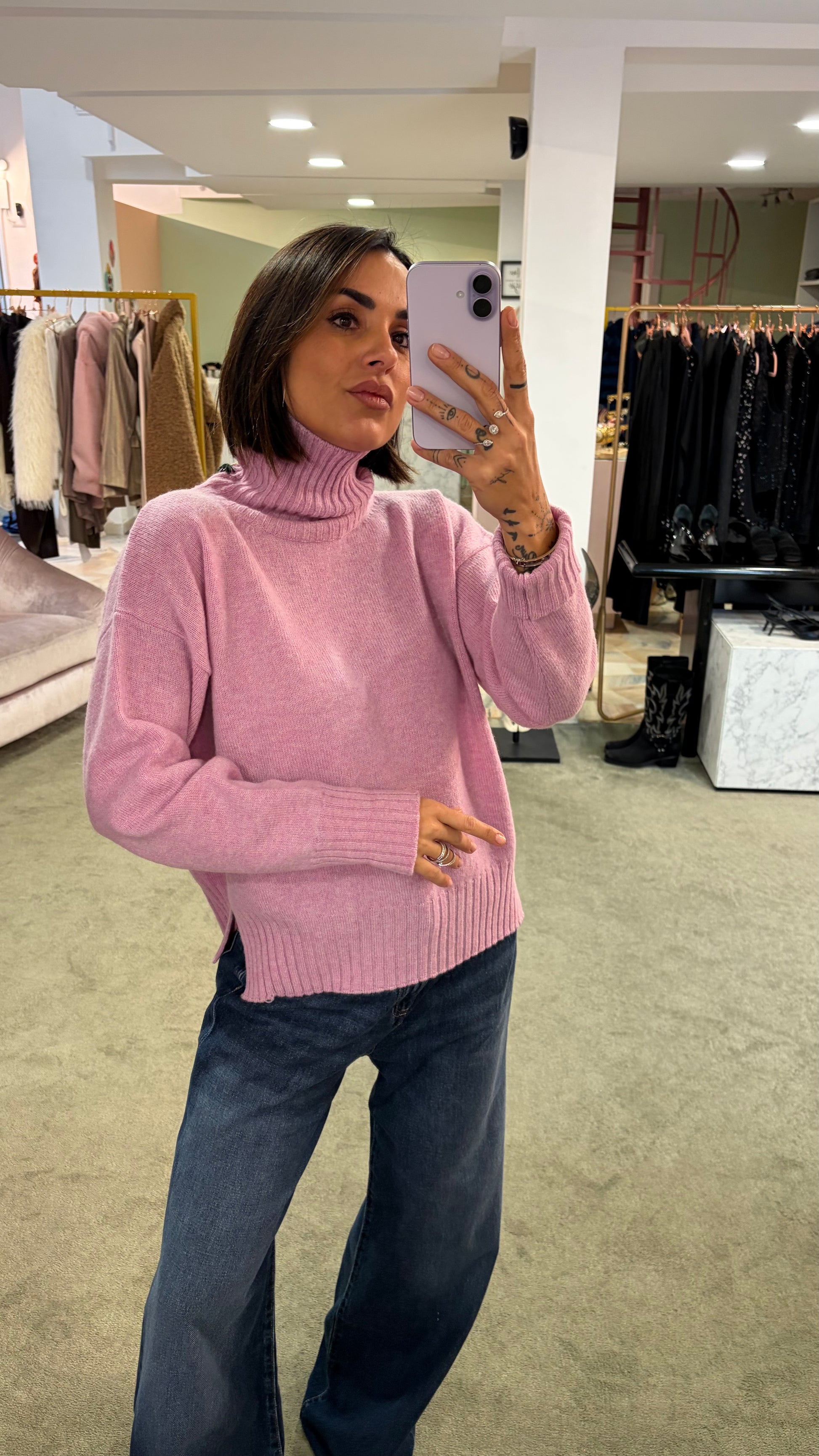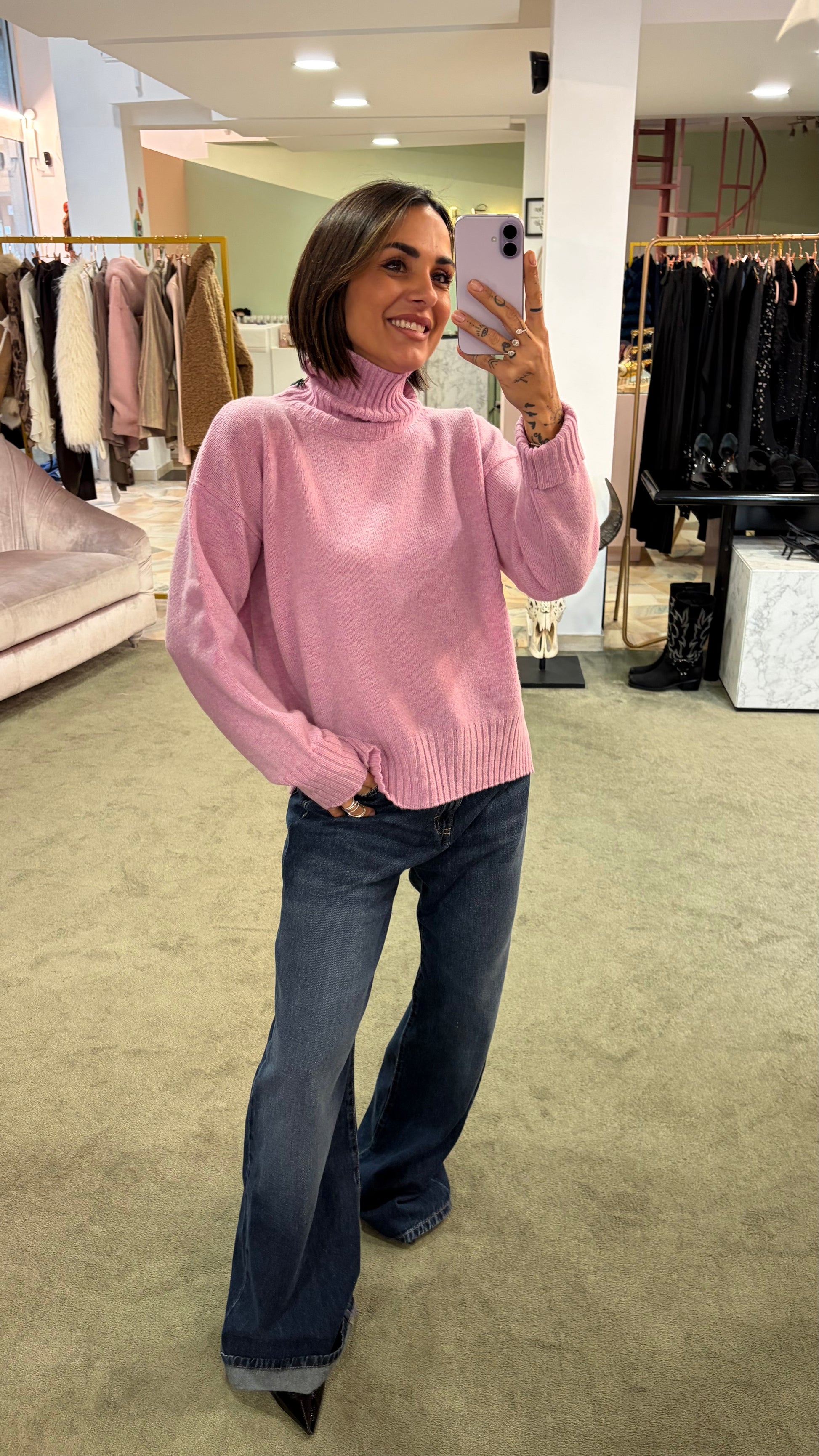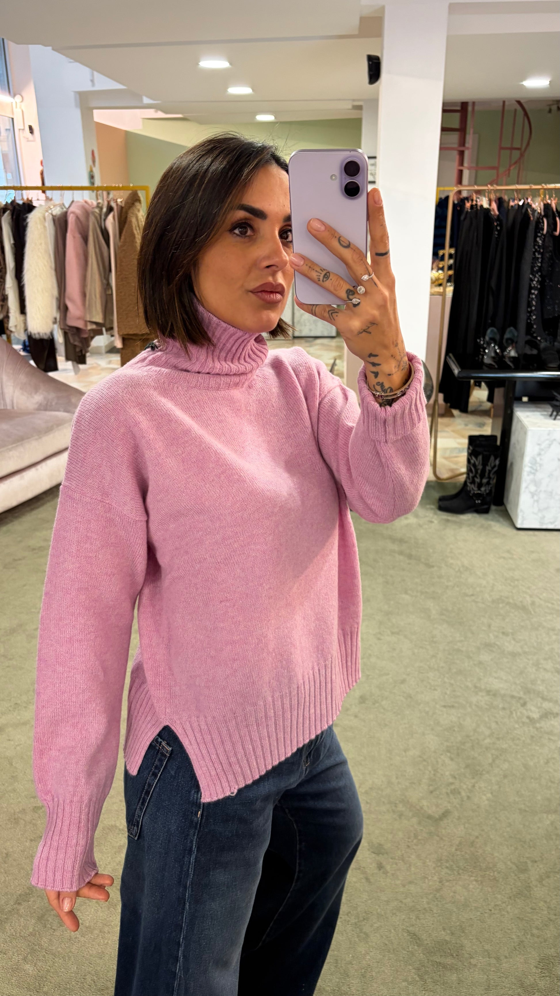 Dolcevita rosa peonia a scatoletta in lana Irish