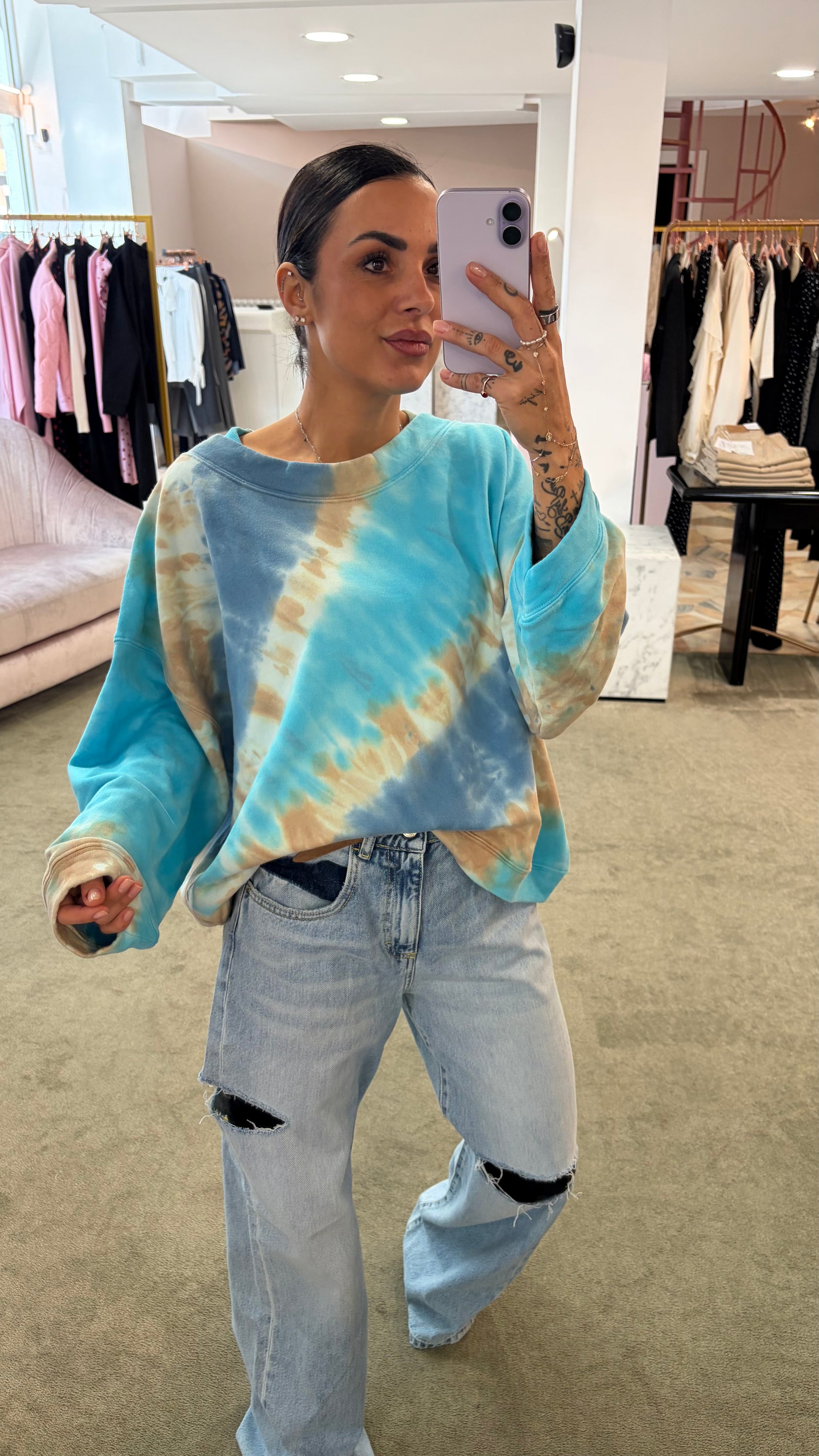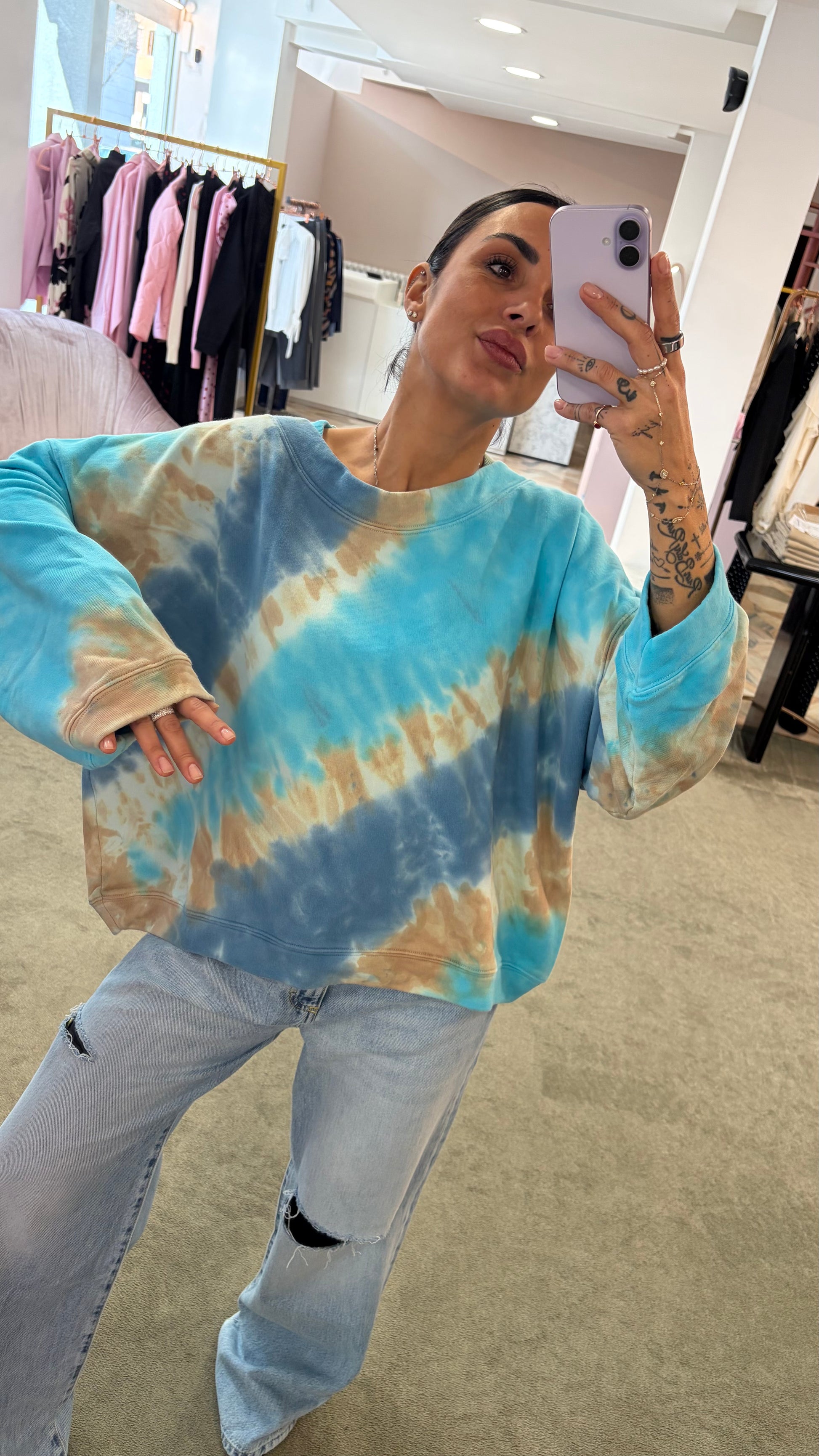 Felpa azzurra tie-dye scollo tondo Don't@Me