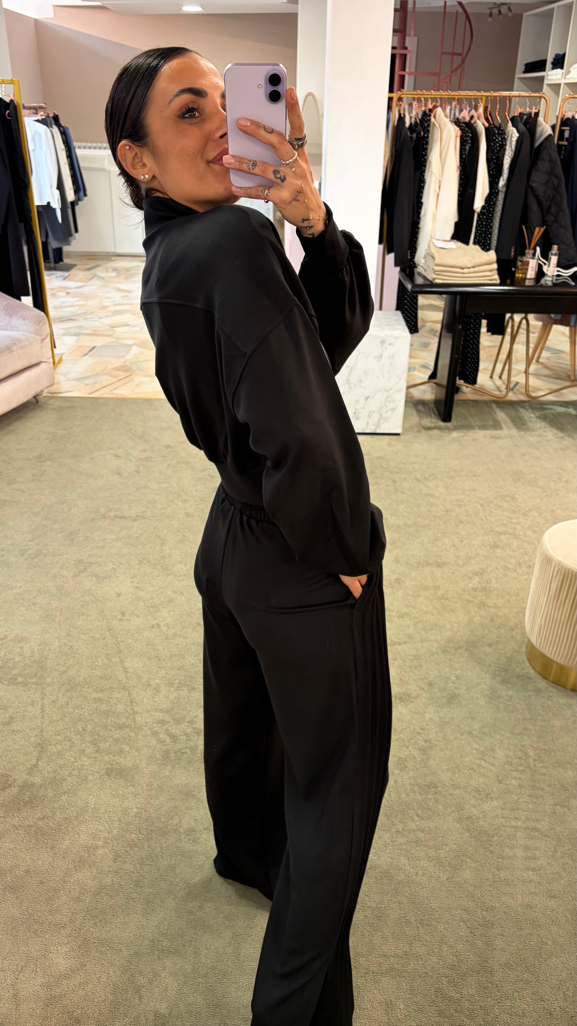 Felpa nera crop con zip Hinnominate