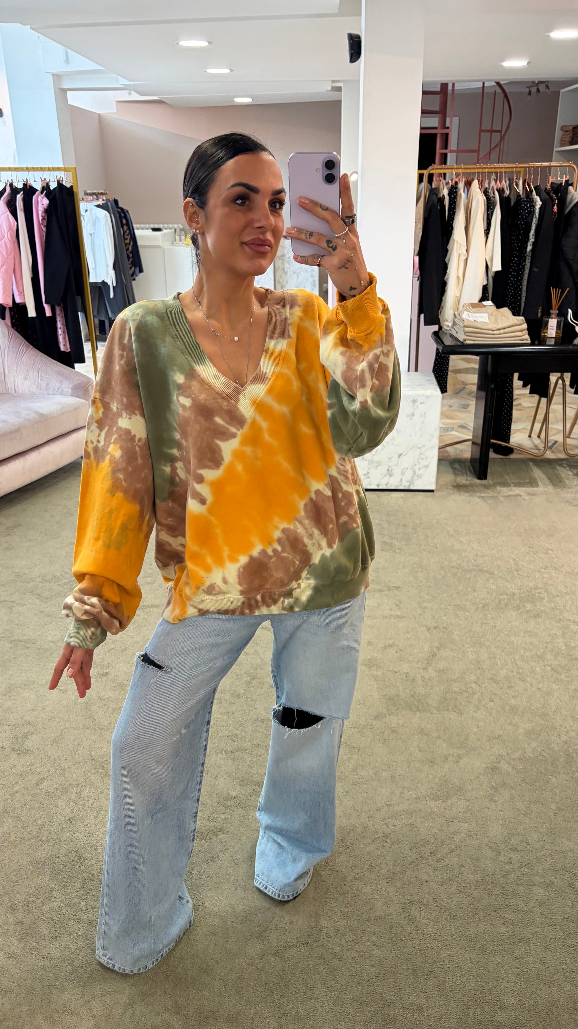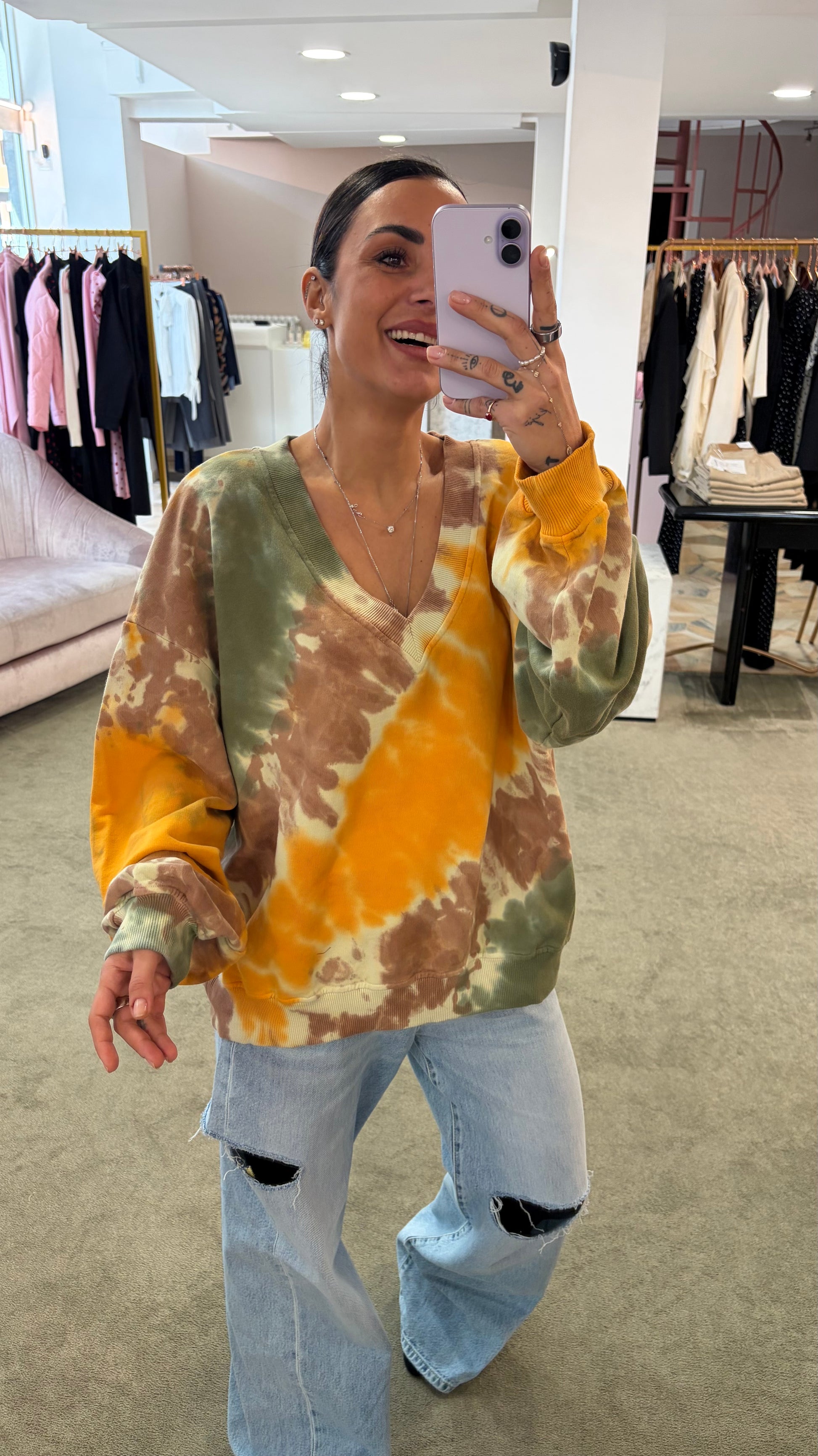 Felpa gialla verde tie-dye scollo a v Don't@Me