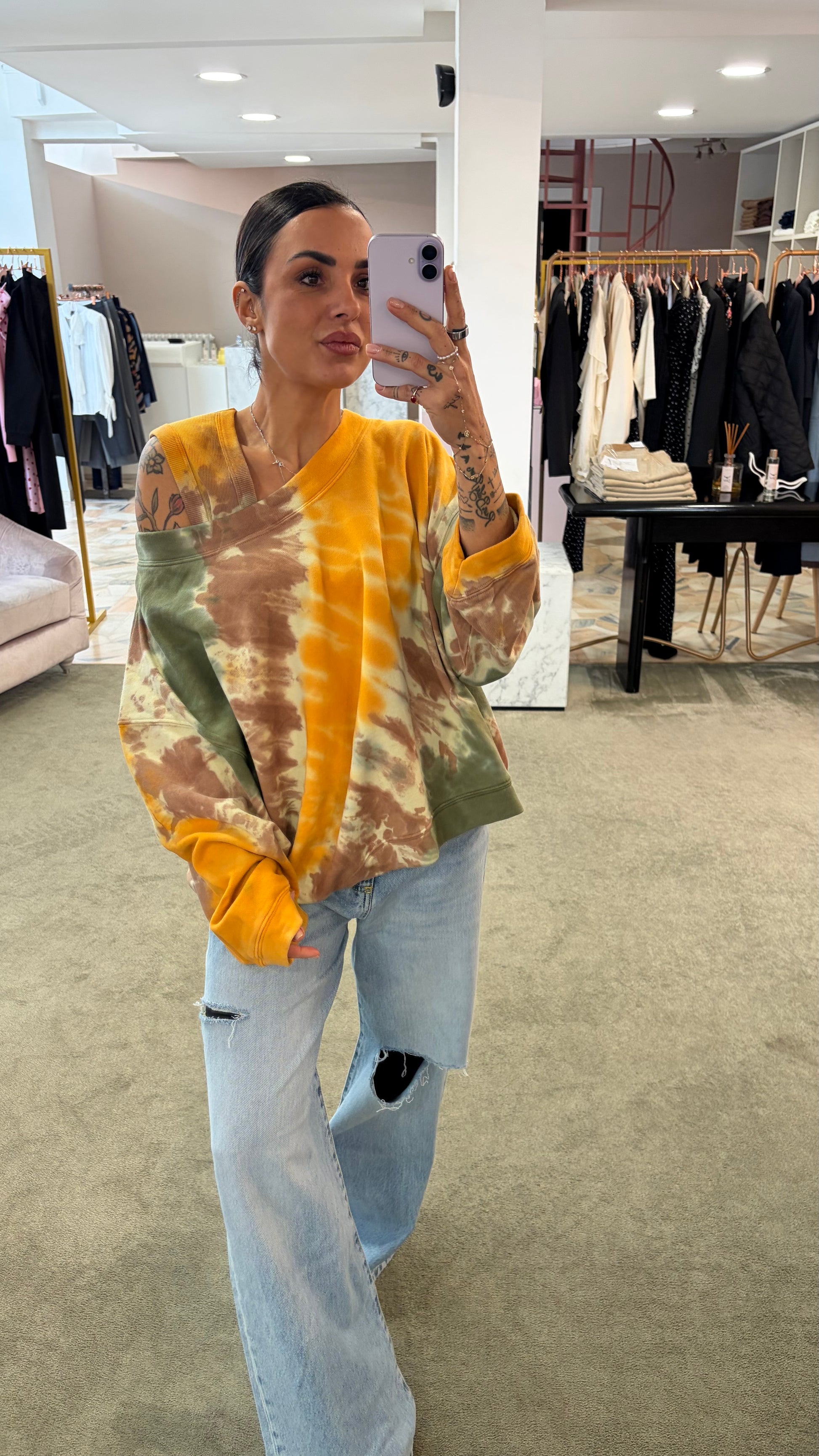 Felpa gialla verde tie-dye scollo tondo Don't@Me