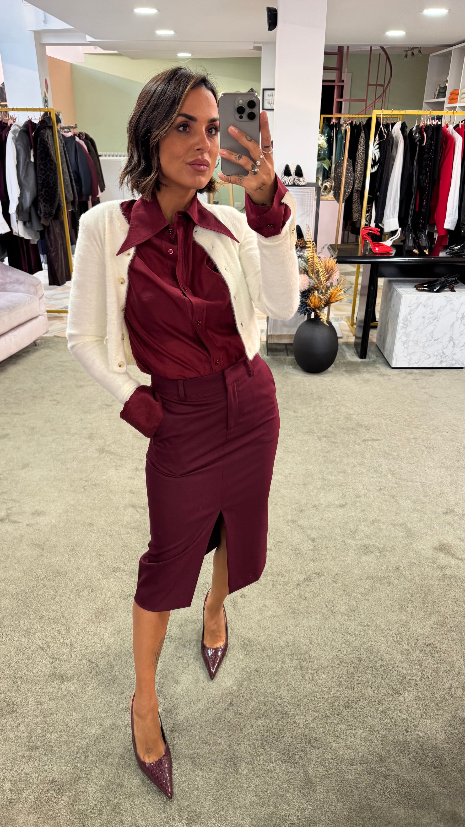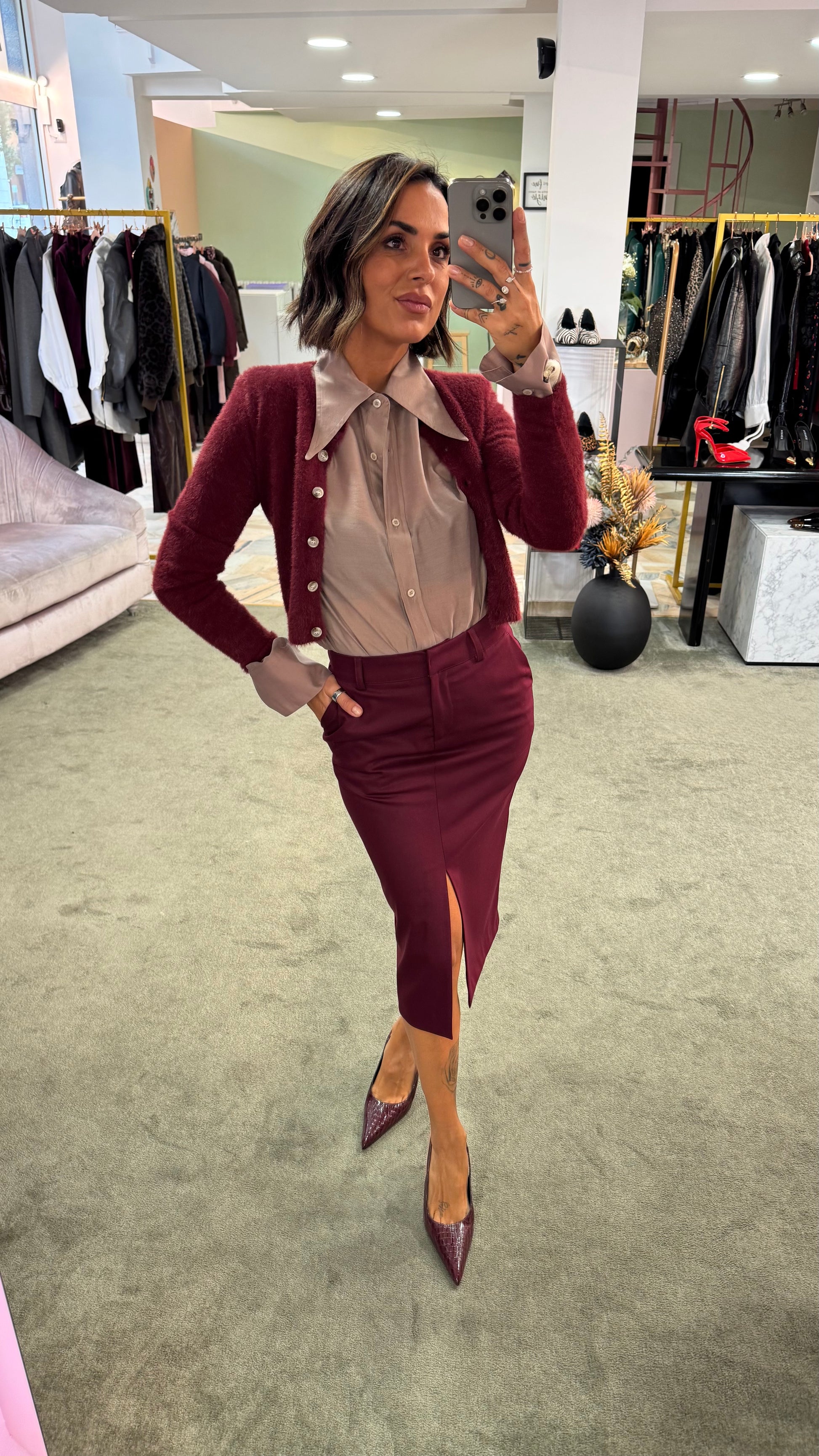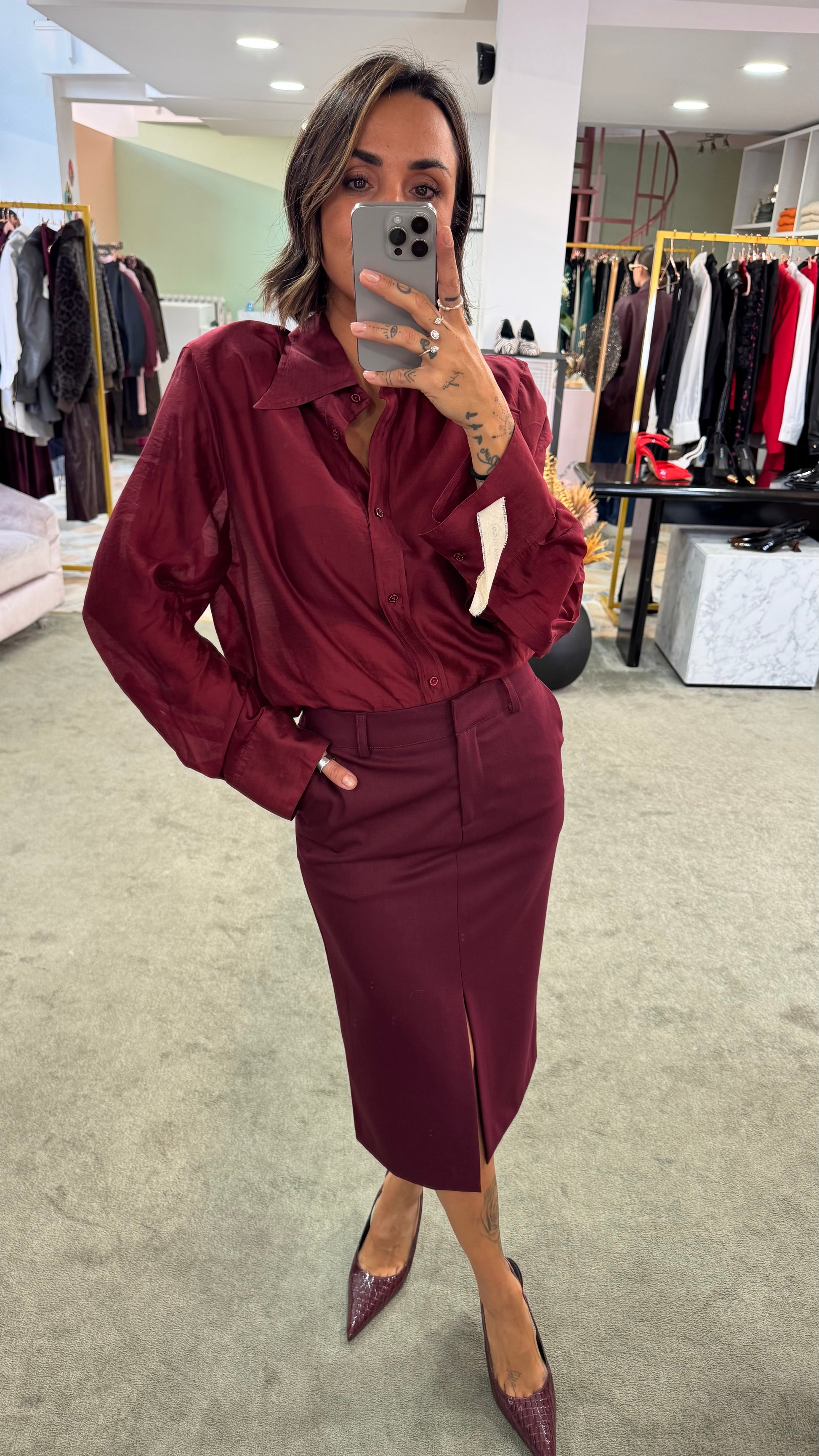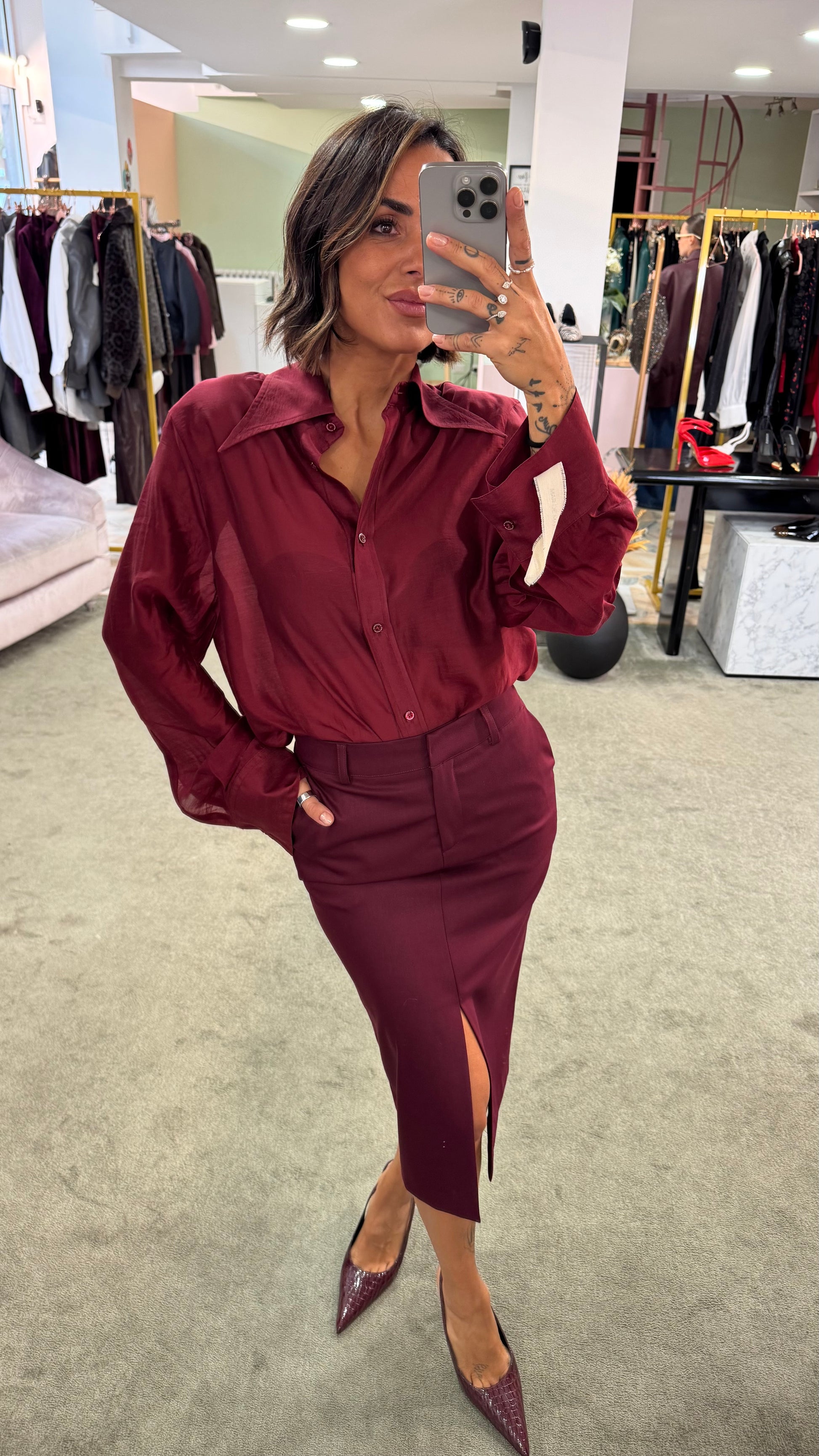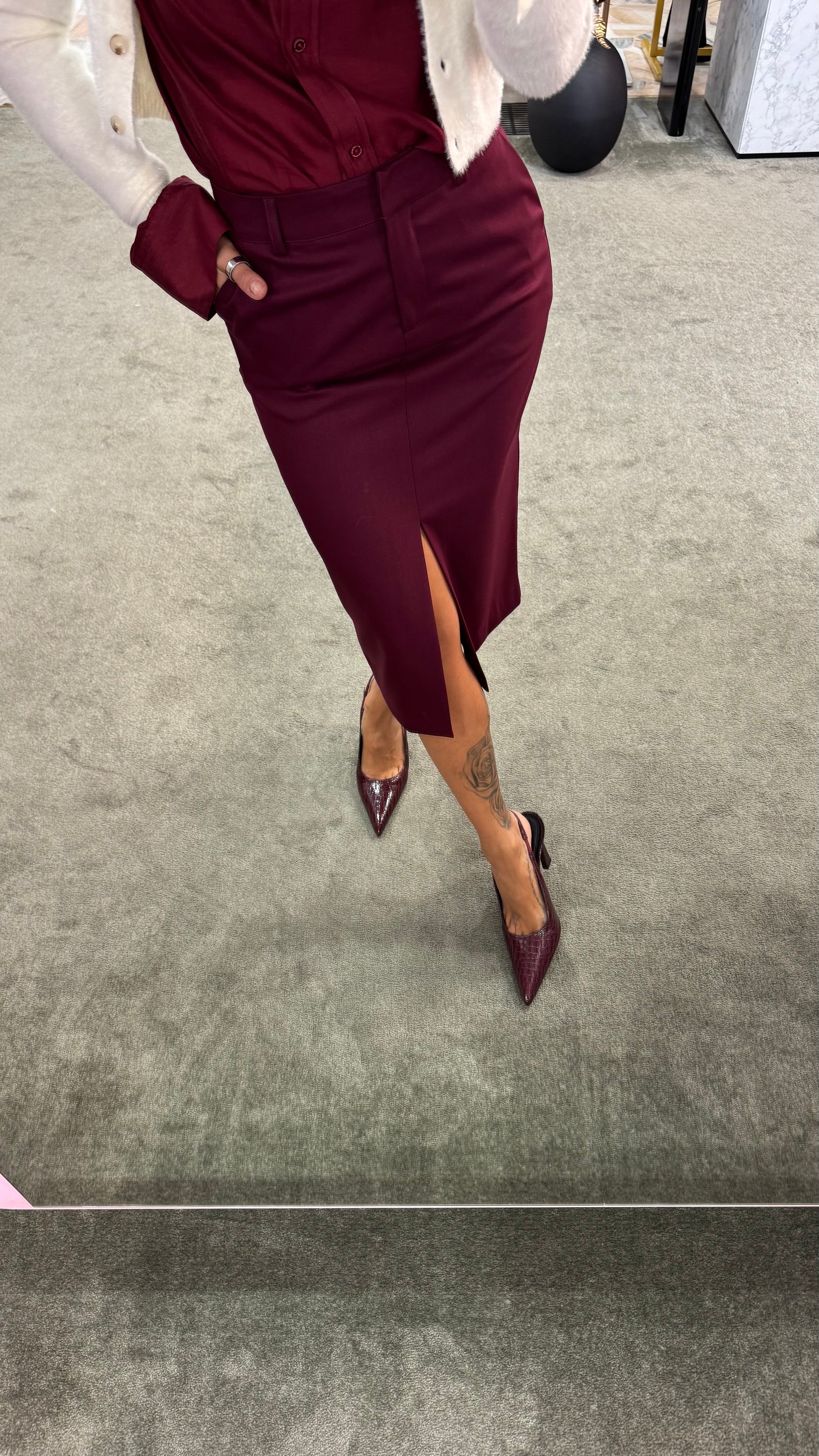 Gonna longuette goldie MAR DE MARGARITAS bordeaux con spacco