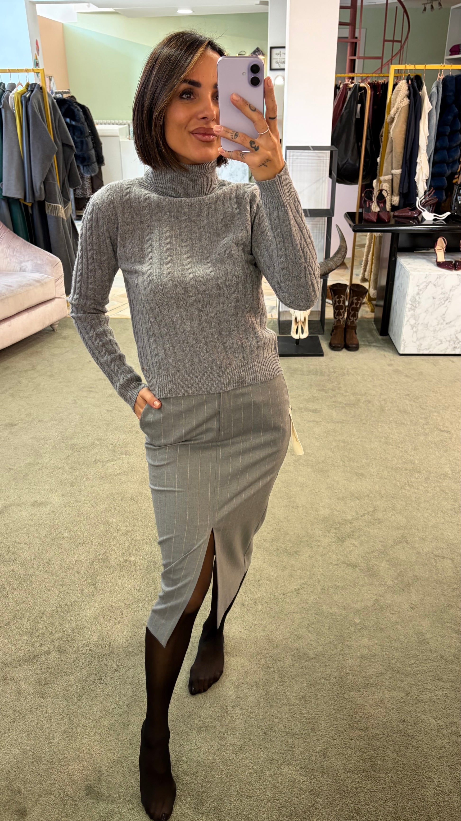 Gonna longuette MAR DE MARGARITAS grigia gessata con spacco