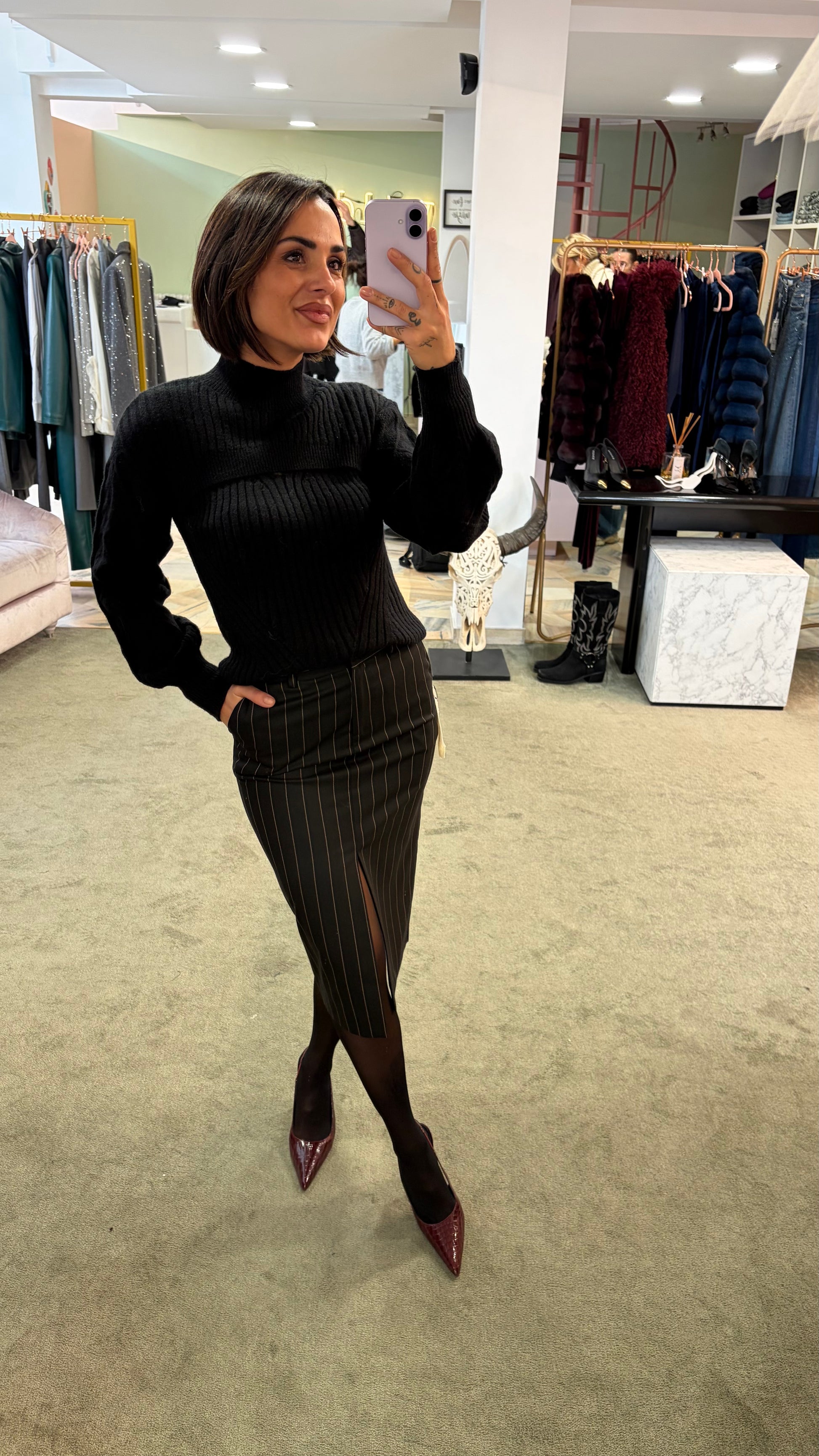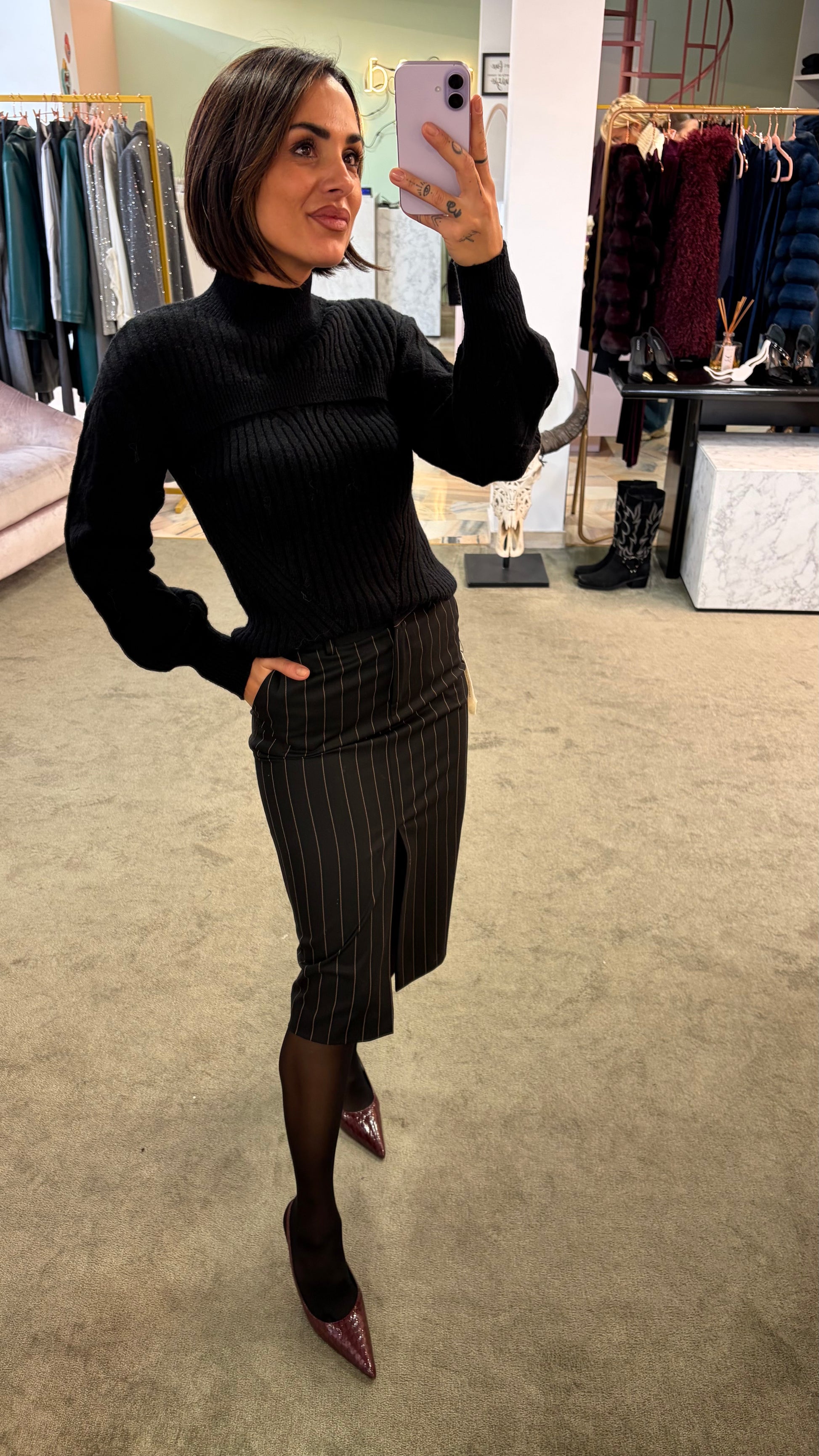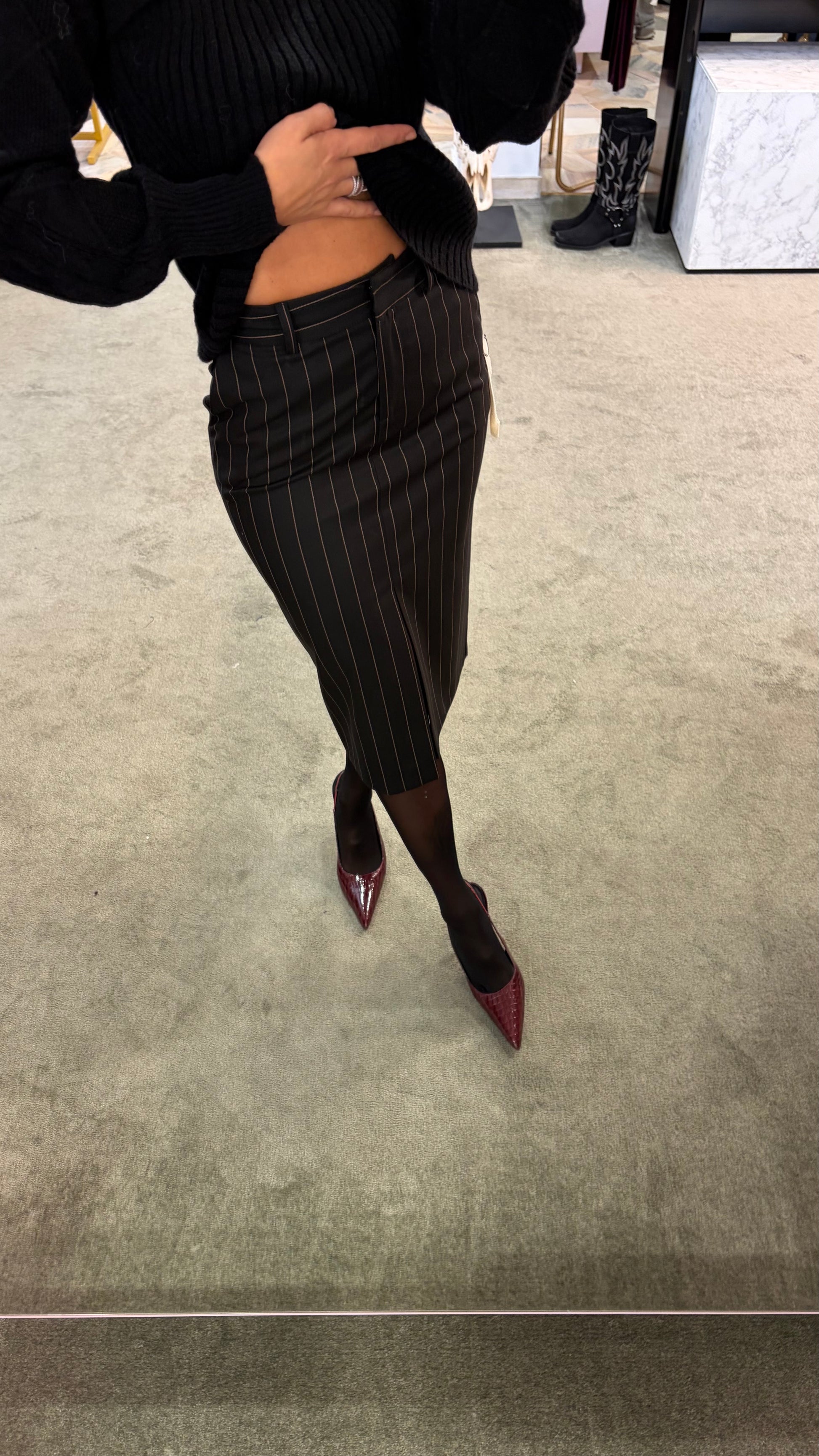 Gonna longuette MAR DE MARGARITAS nera gessata con spacco