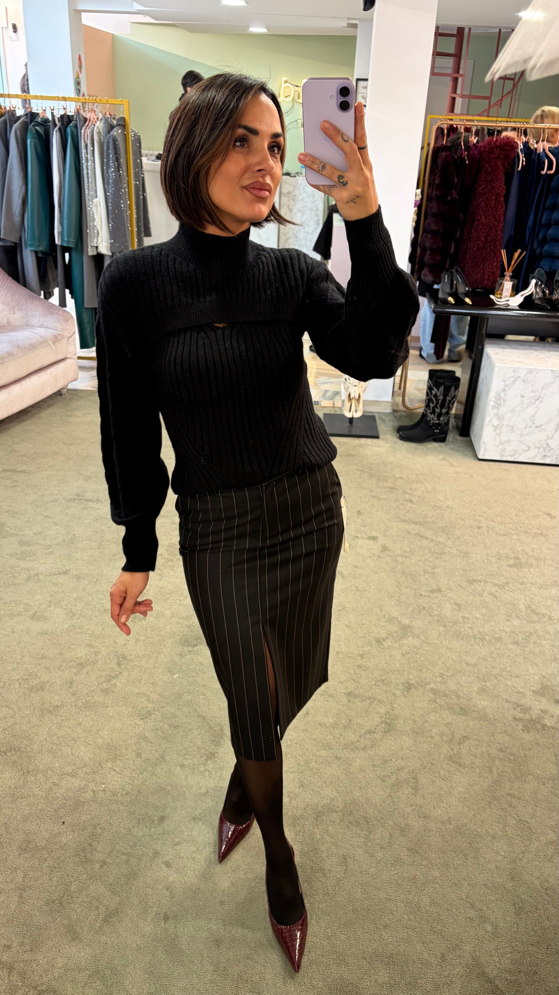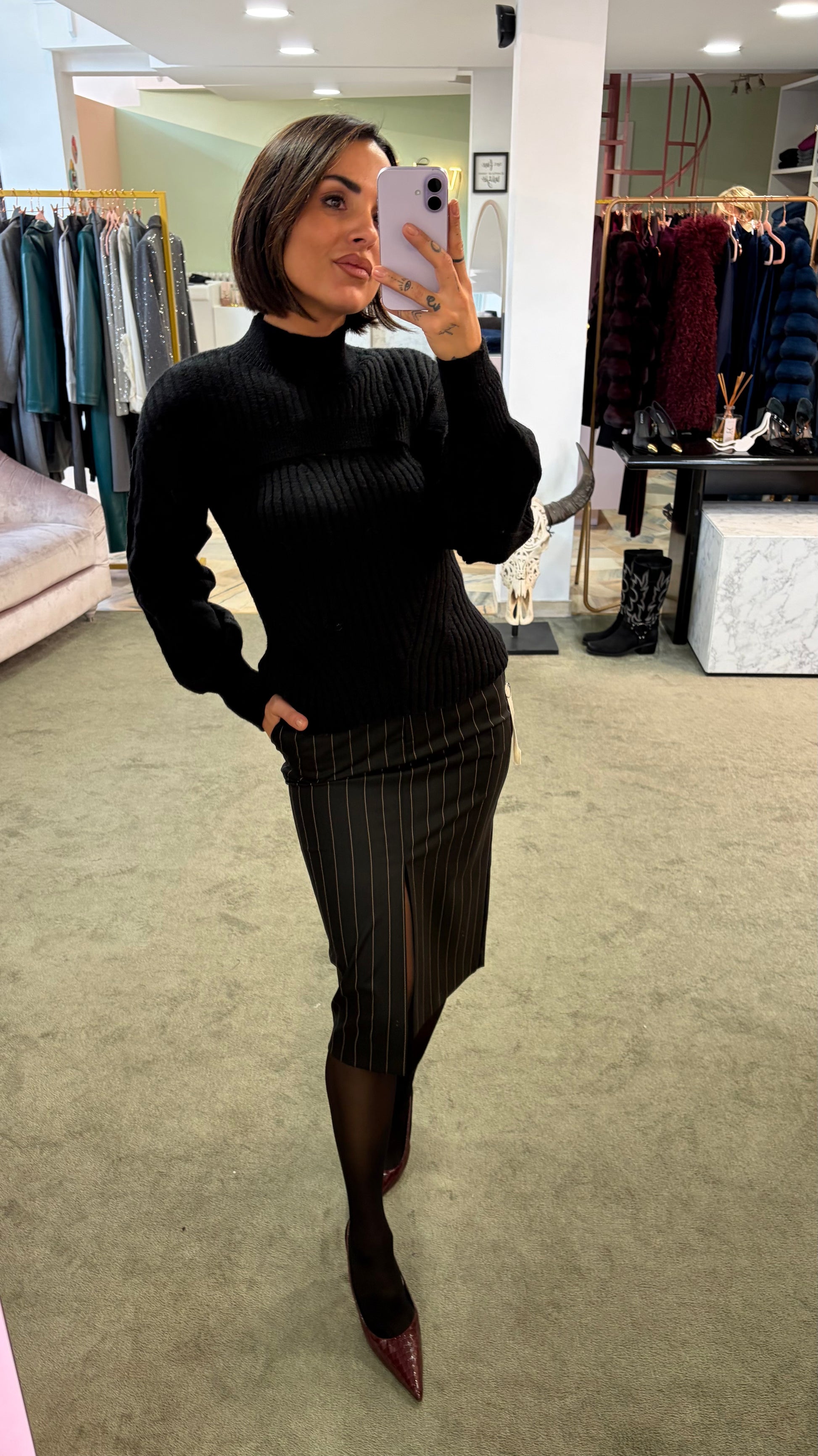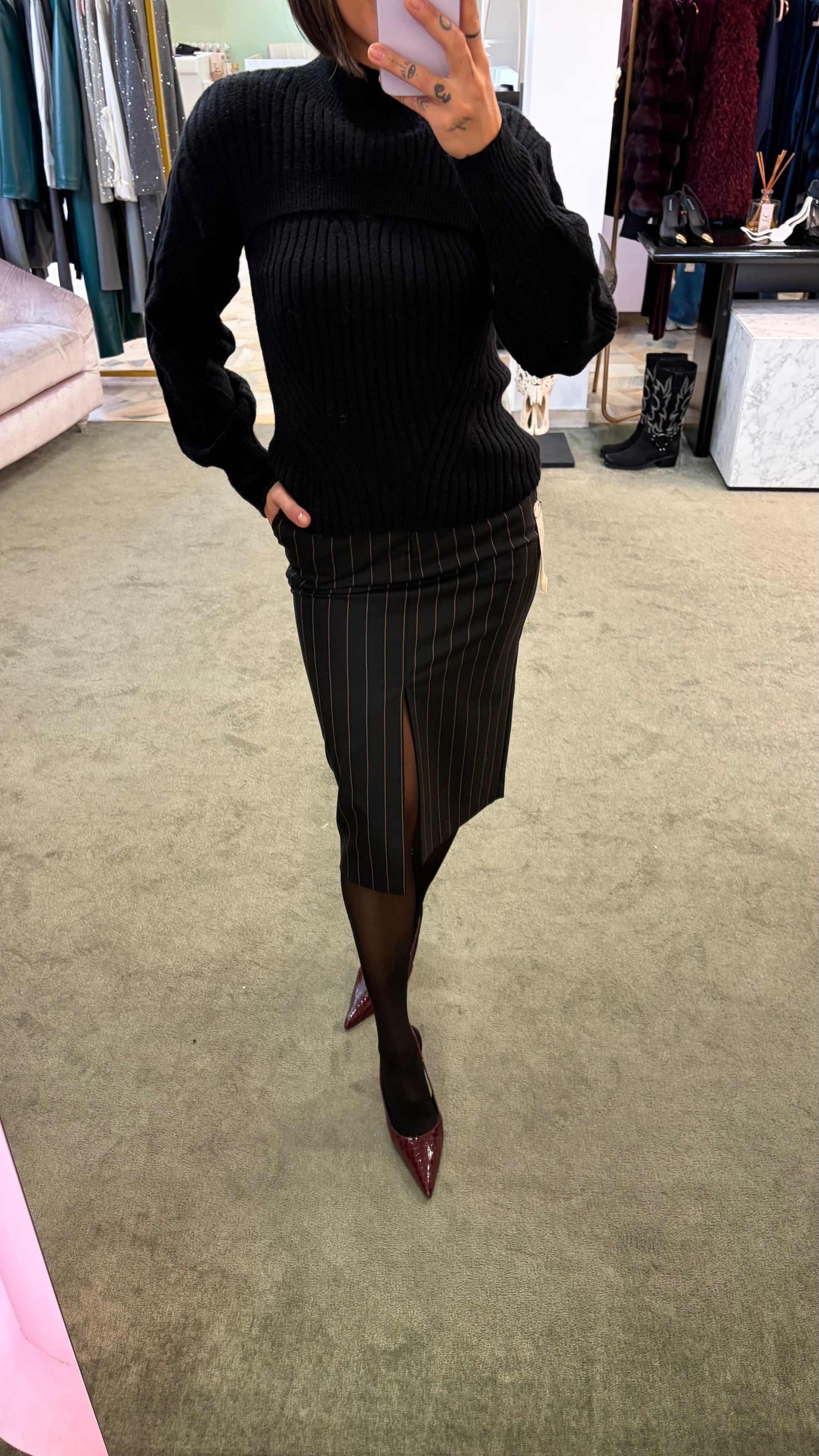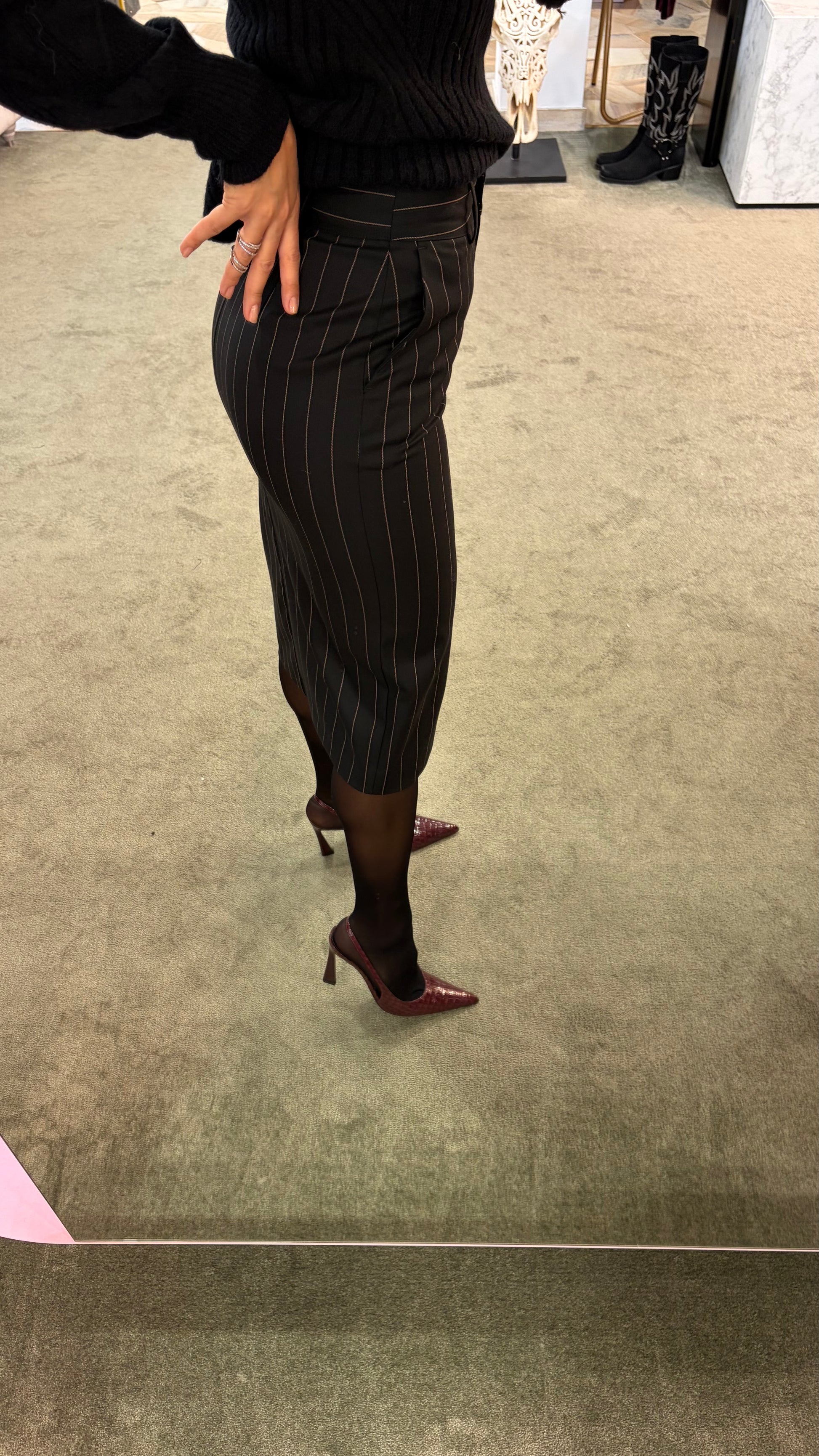 Gonna longuette MAR DE MARGARITAS nera gessata con spacco