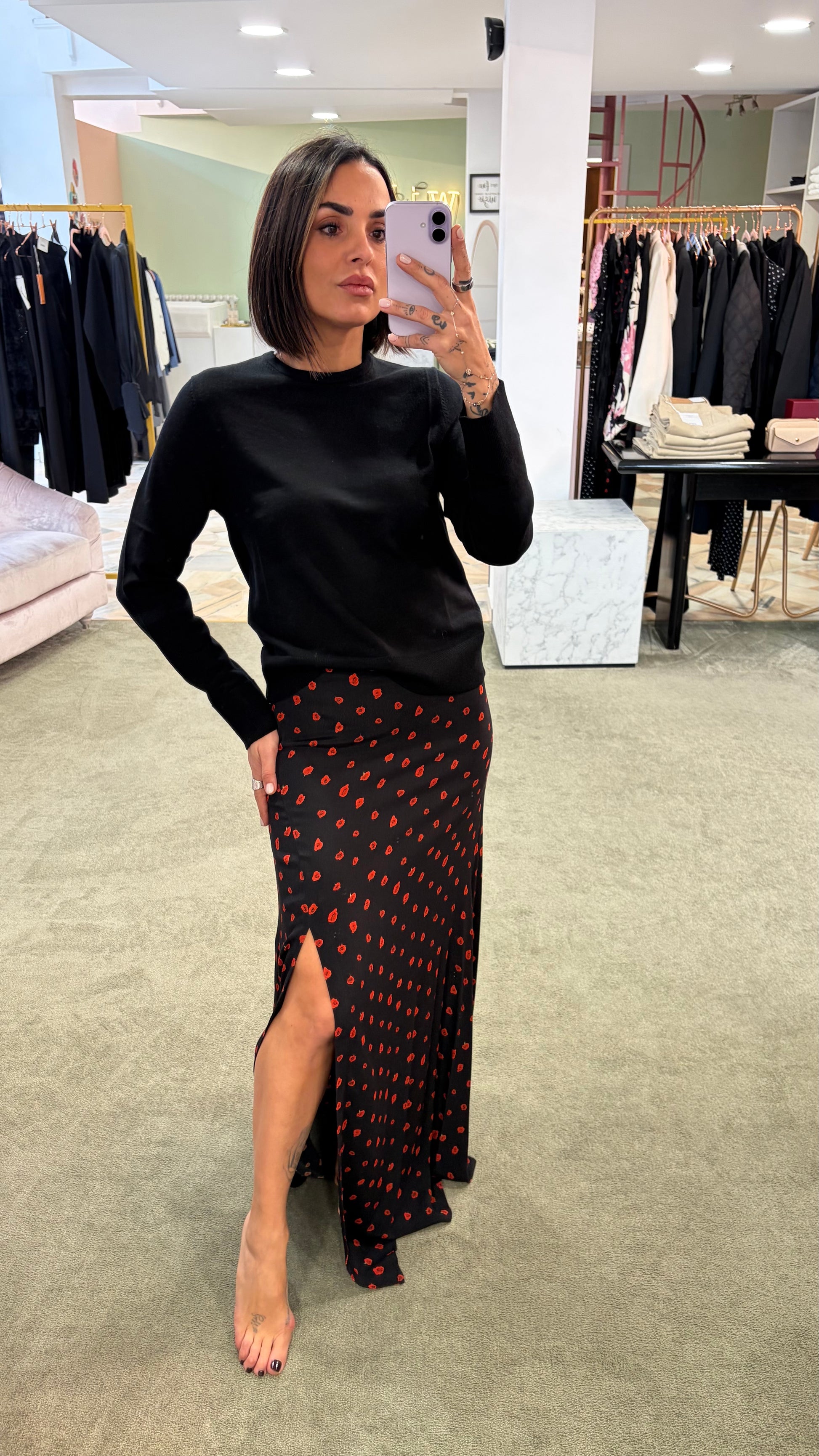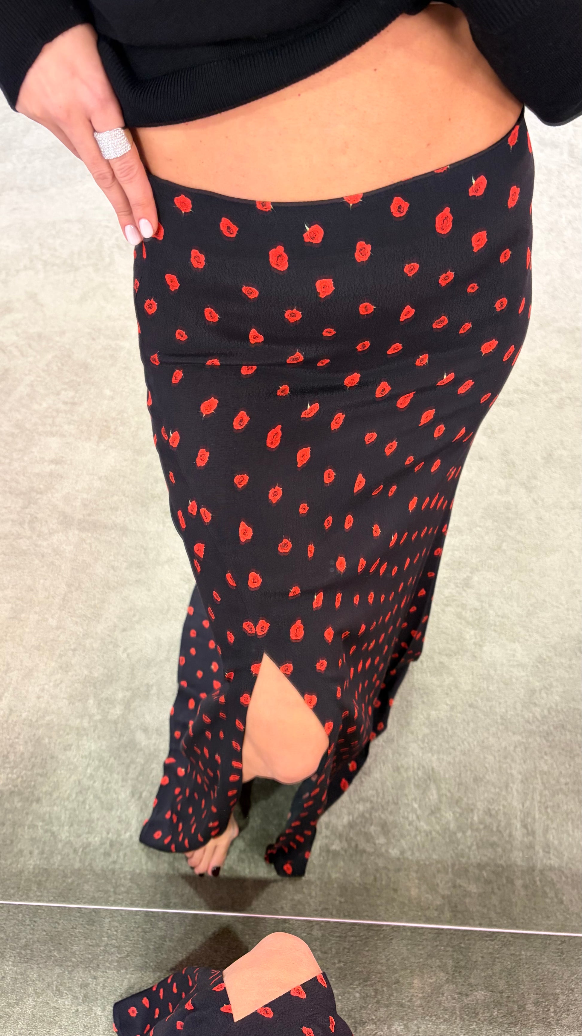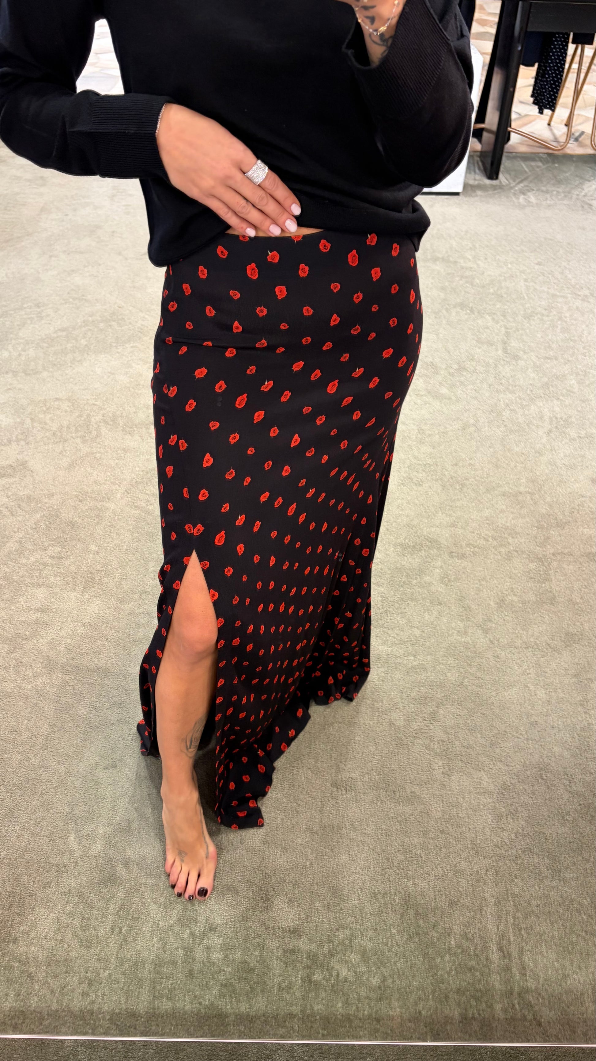 Gonna lunga anita MAR DE MARGARITAS nera e fiori rossi con spacco