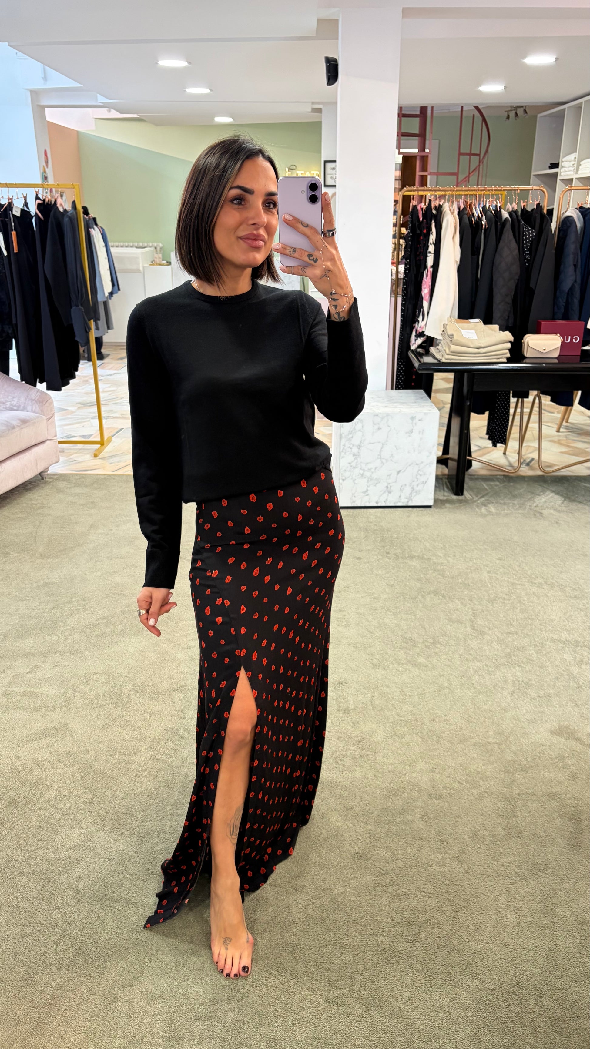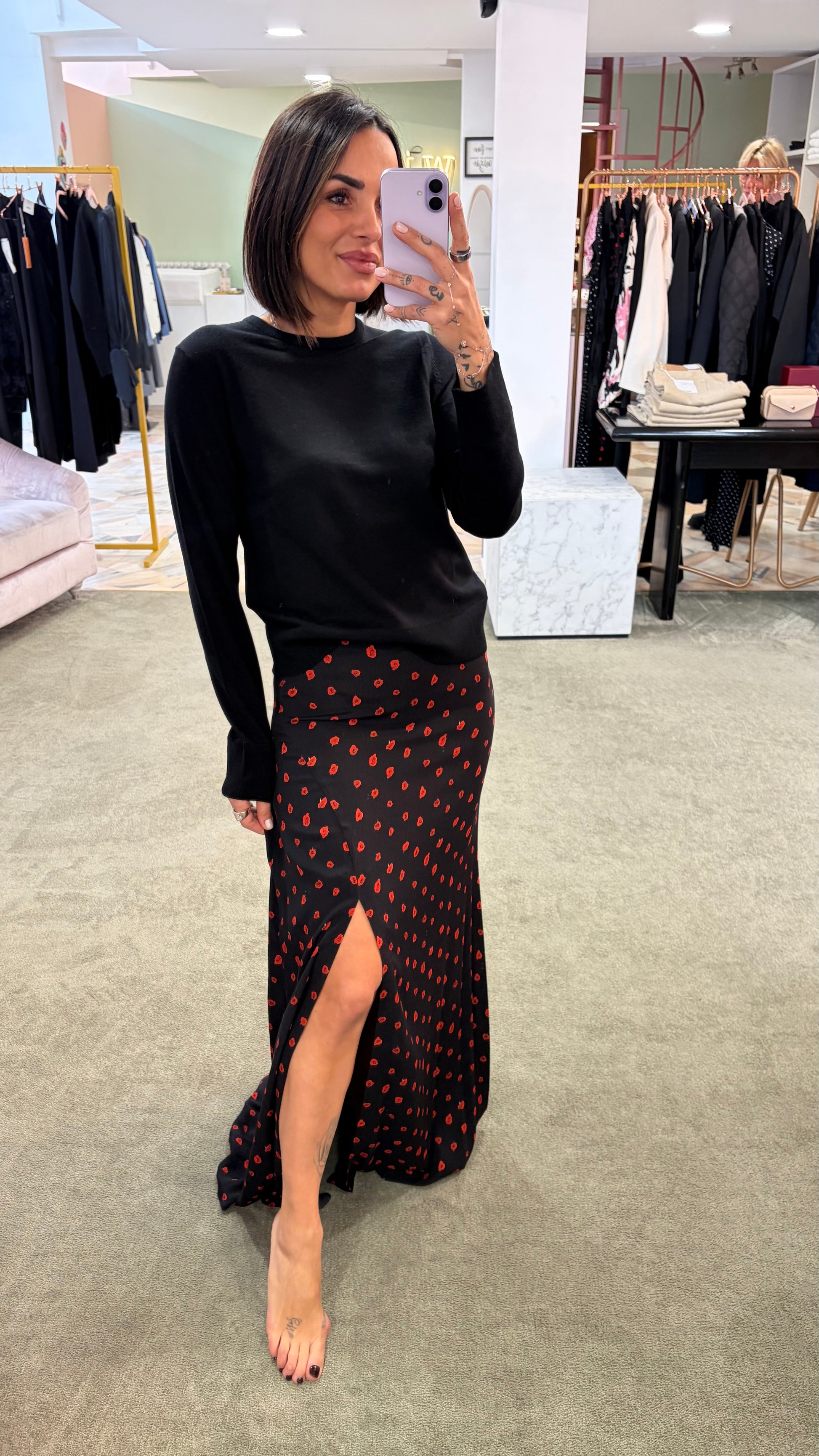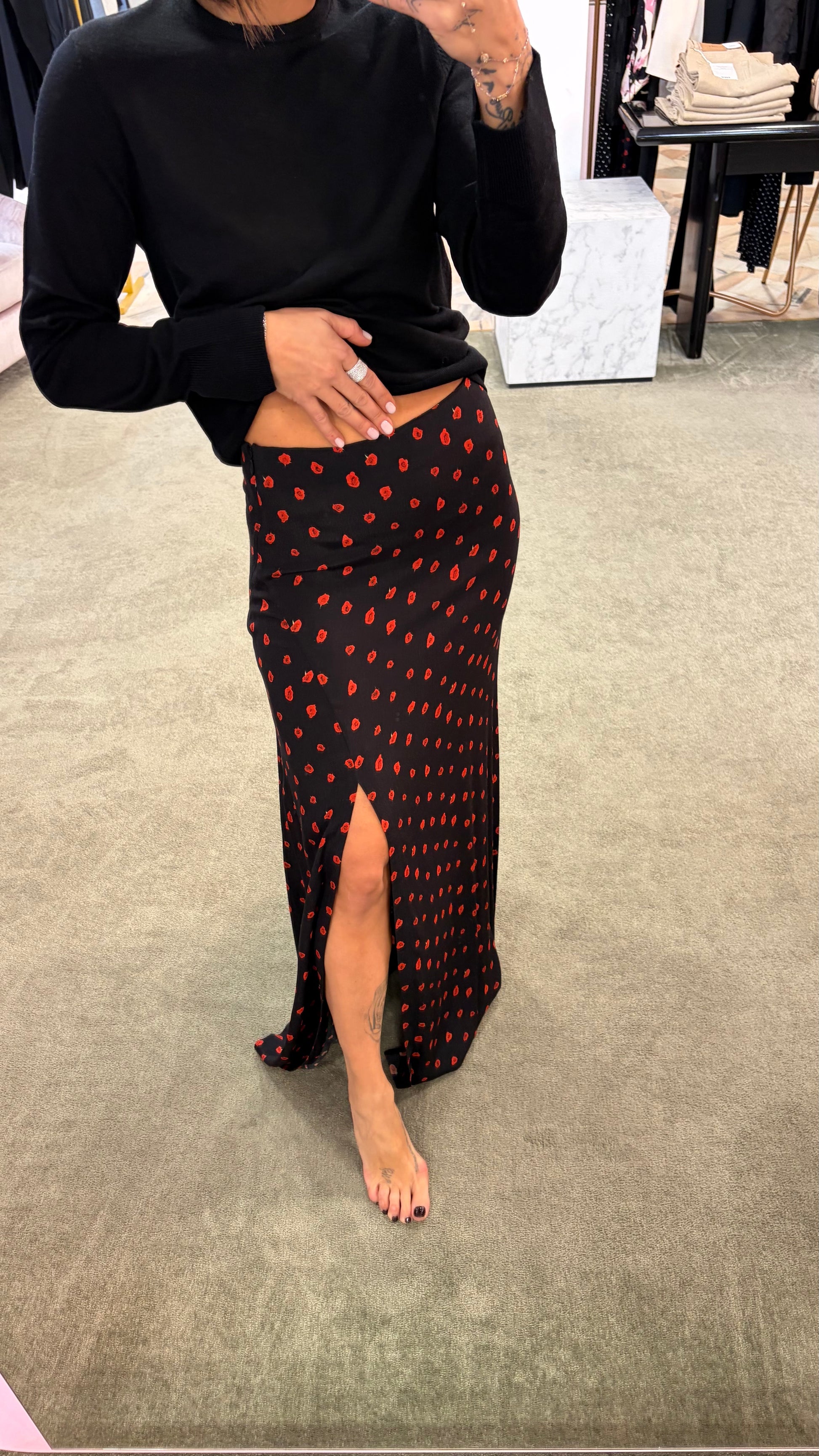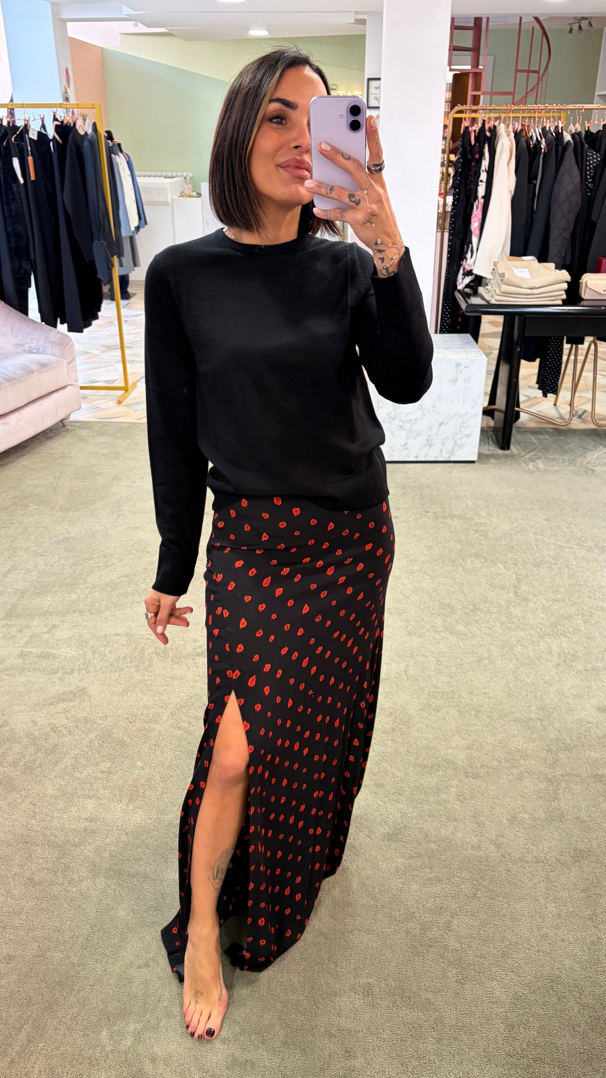 Gonna lunga anita MAR DE MARGARITAS nera e fiori rossi con spacco