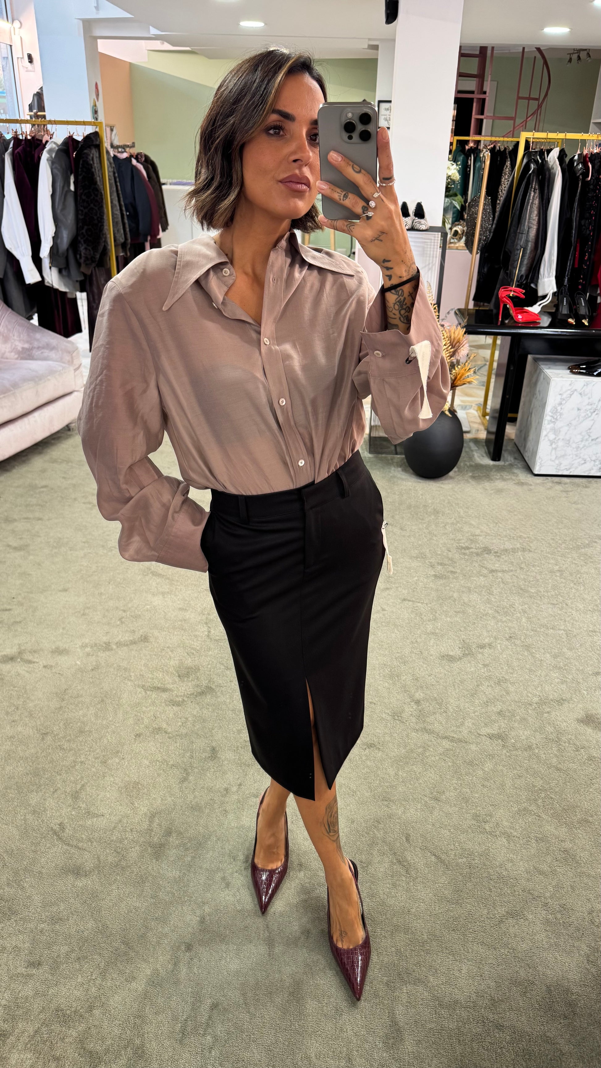 Gonna longuette goldie MAR DE MARGARITAS nera con spacco
