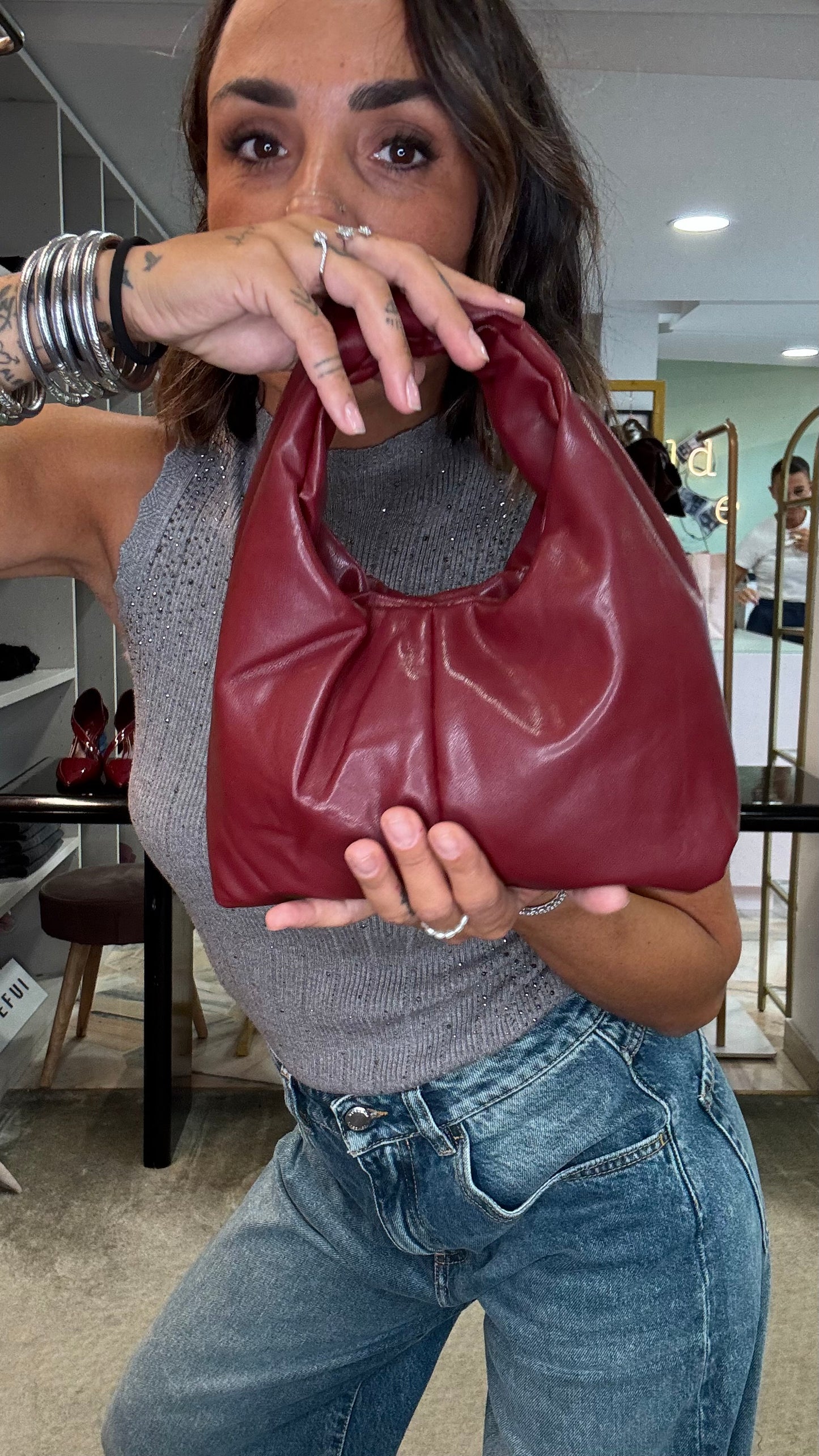 In ecopelle morbidissima, chiusura con bottone magnetico.