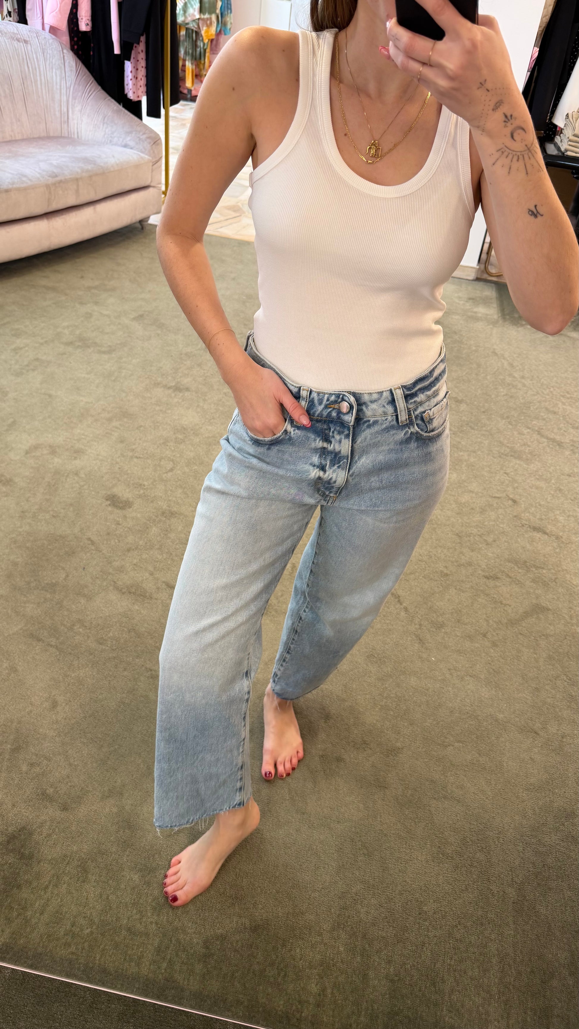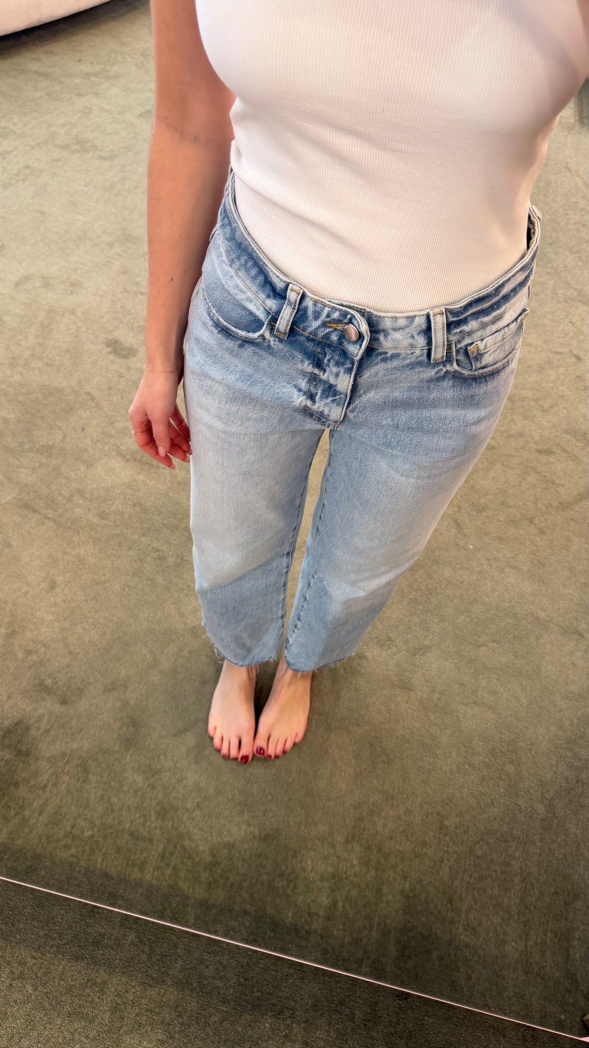 Vestibilità: stretta, vita alta, gamba straight