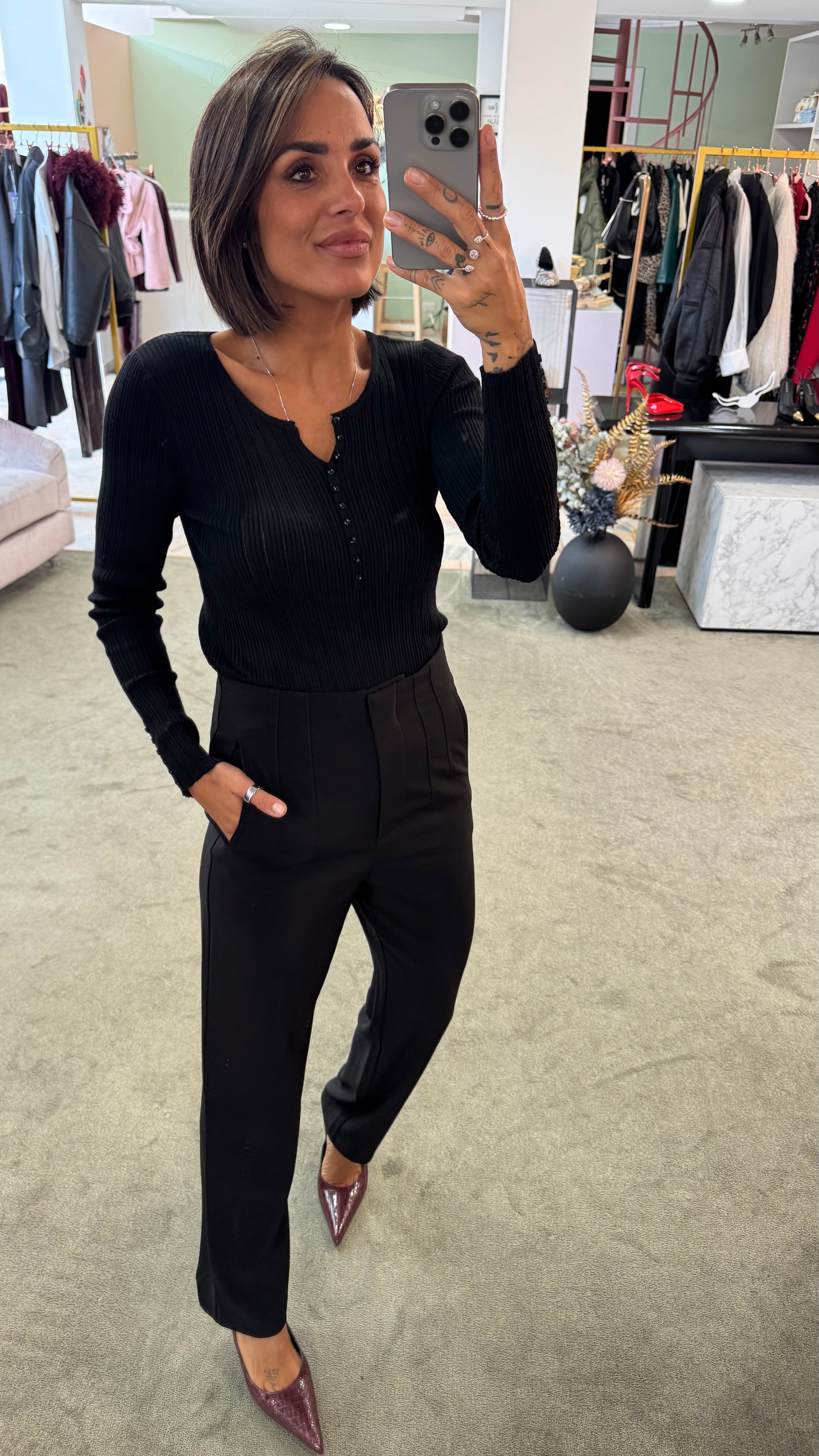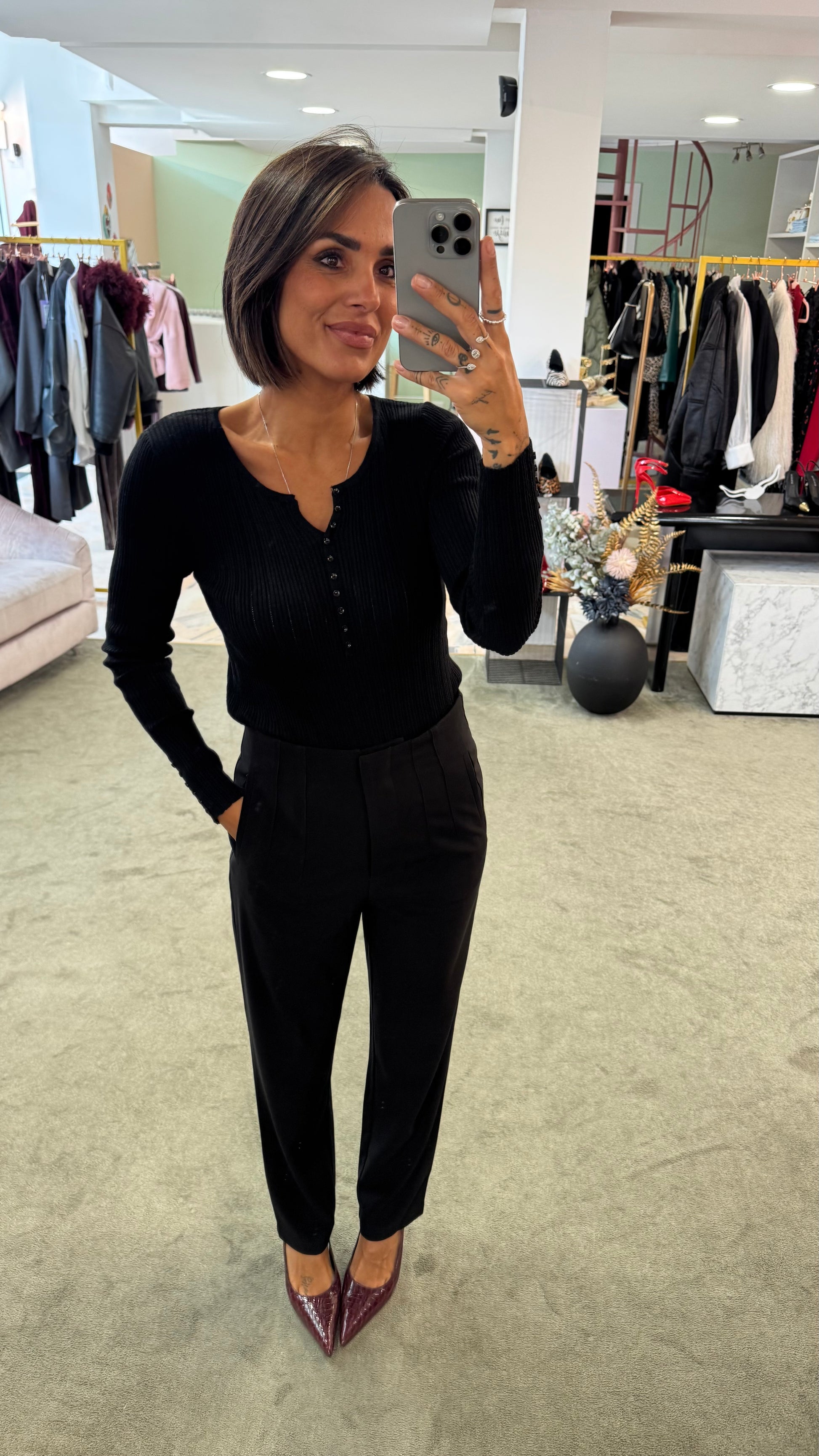 Maglia nera a costine con bottoncini bj