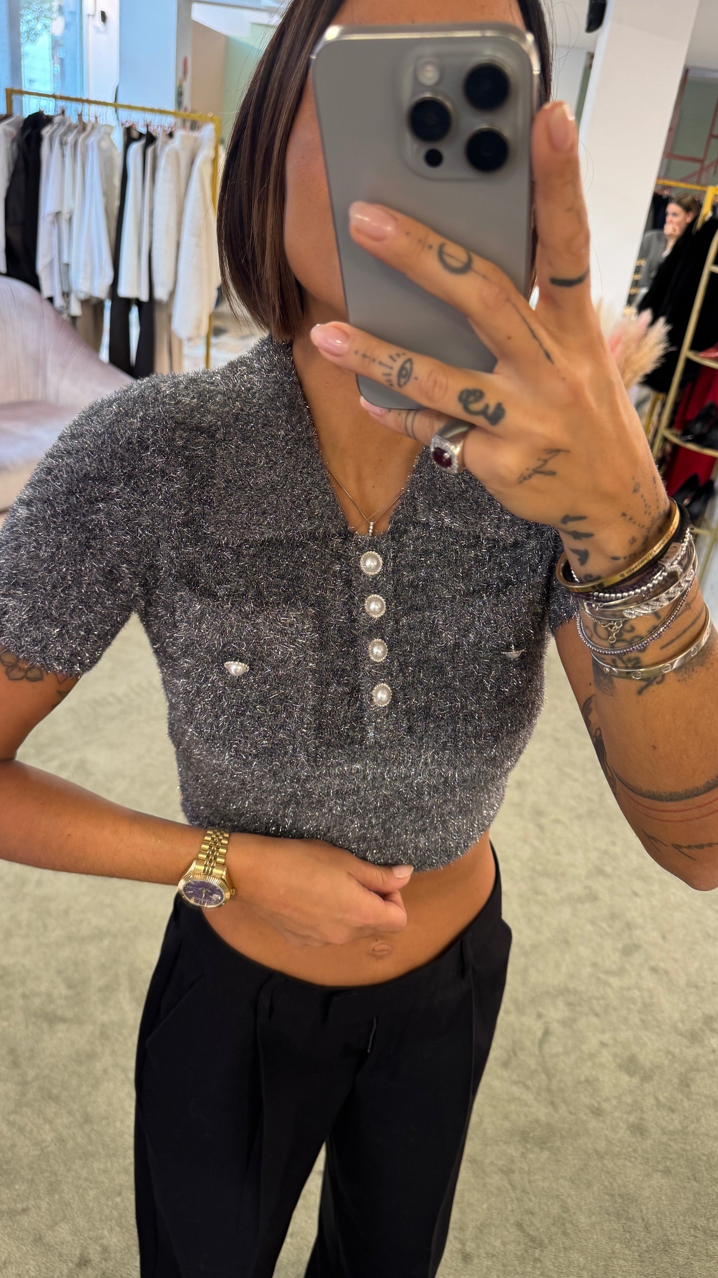Vestibilità: regolare, elasticizzata, manica corta, bottoni gioiello