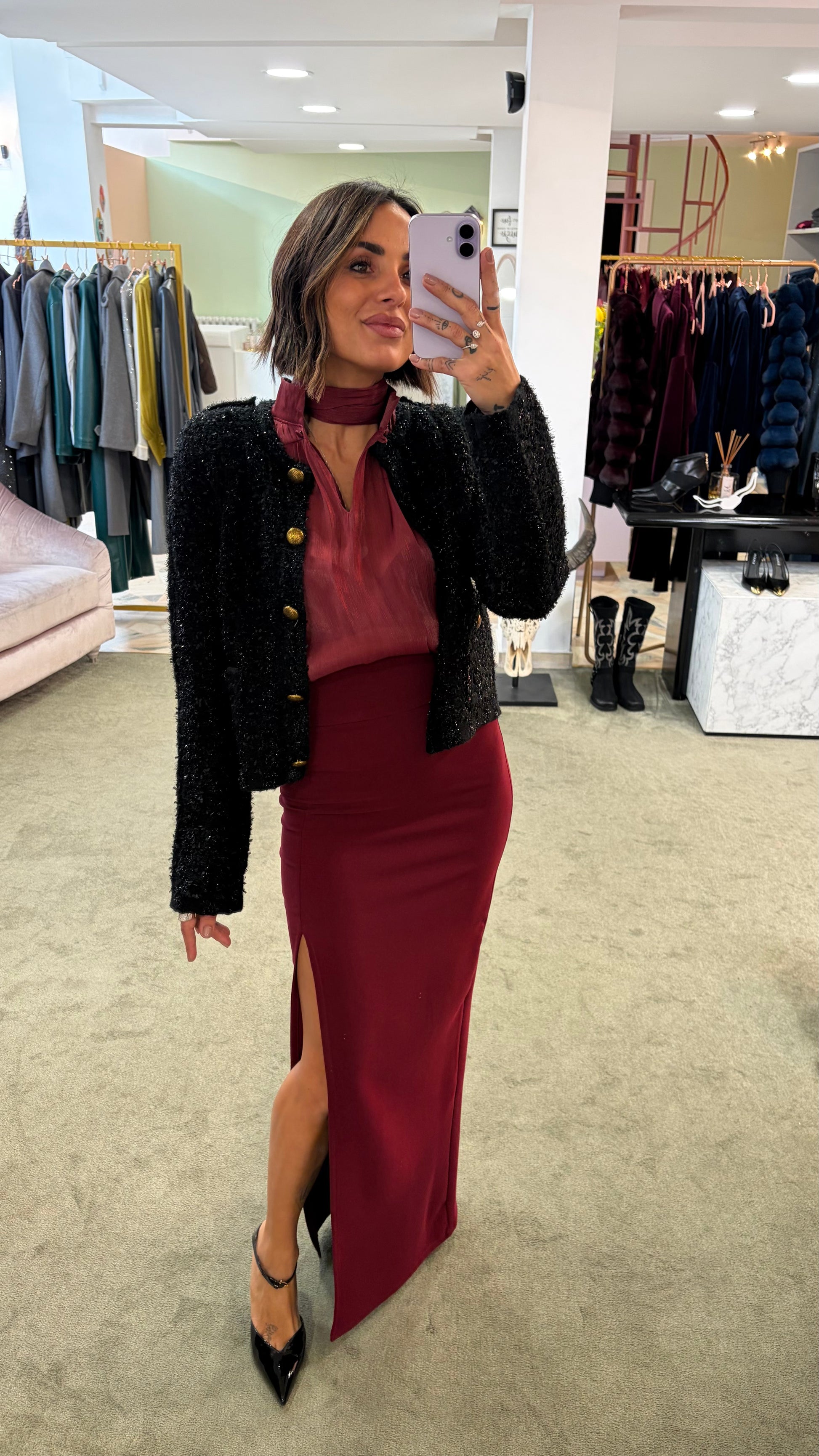 Maglione giacchetta nero in lurex con bottoni oro gl