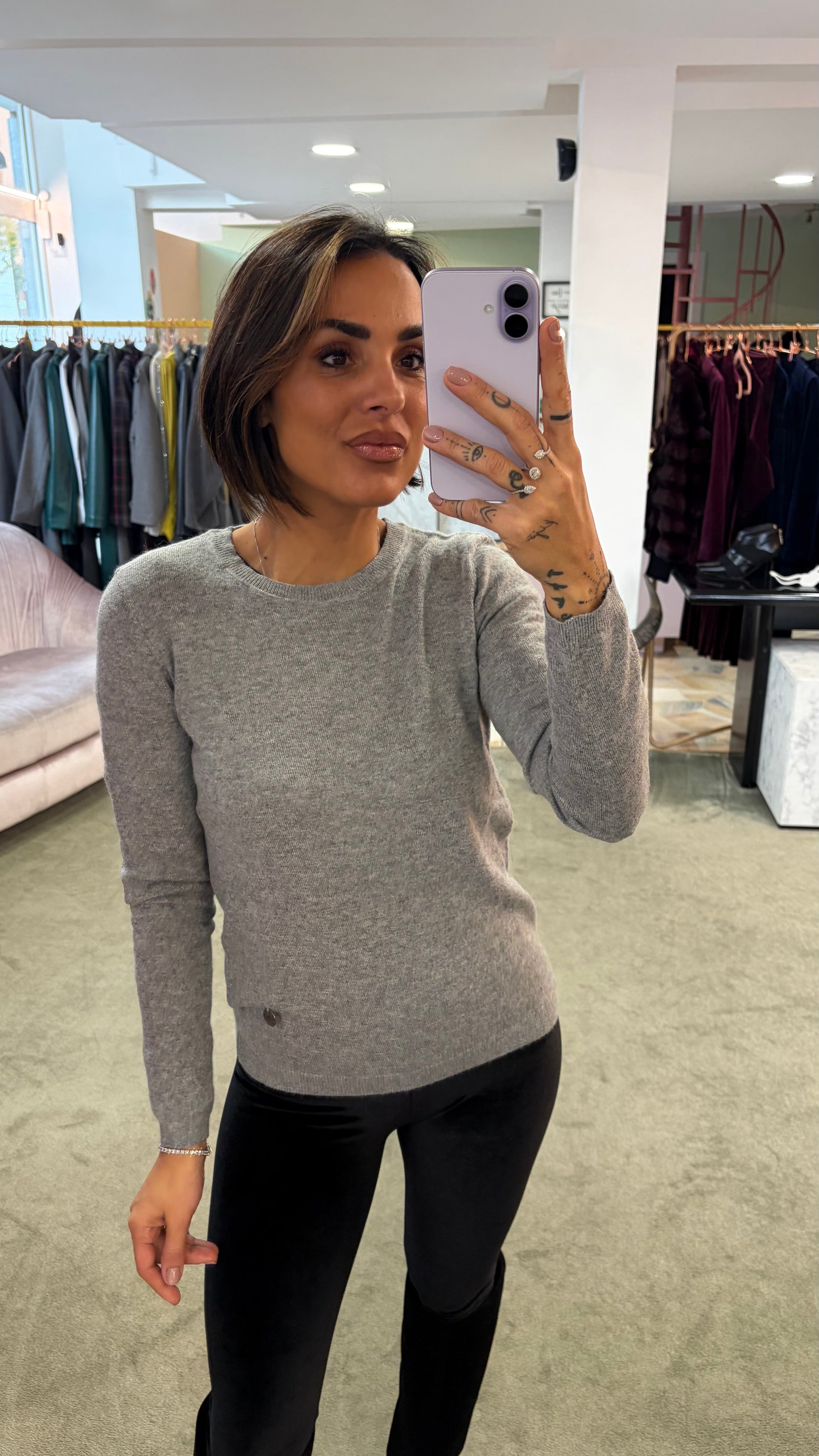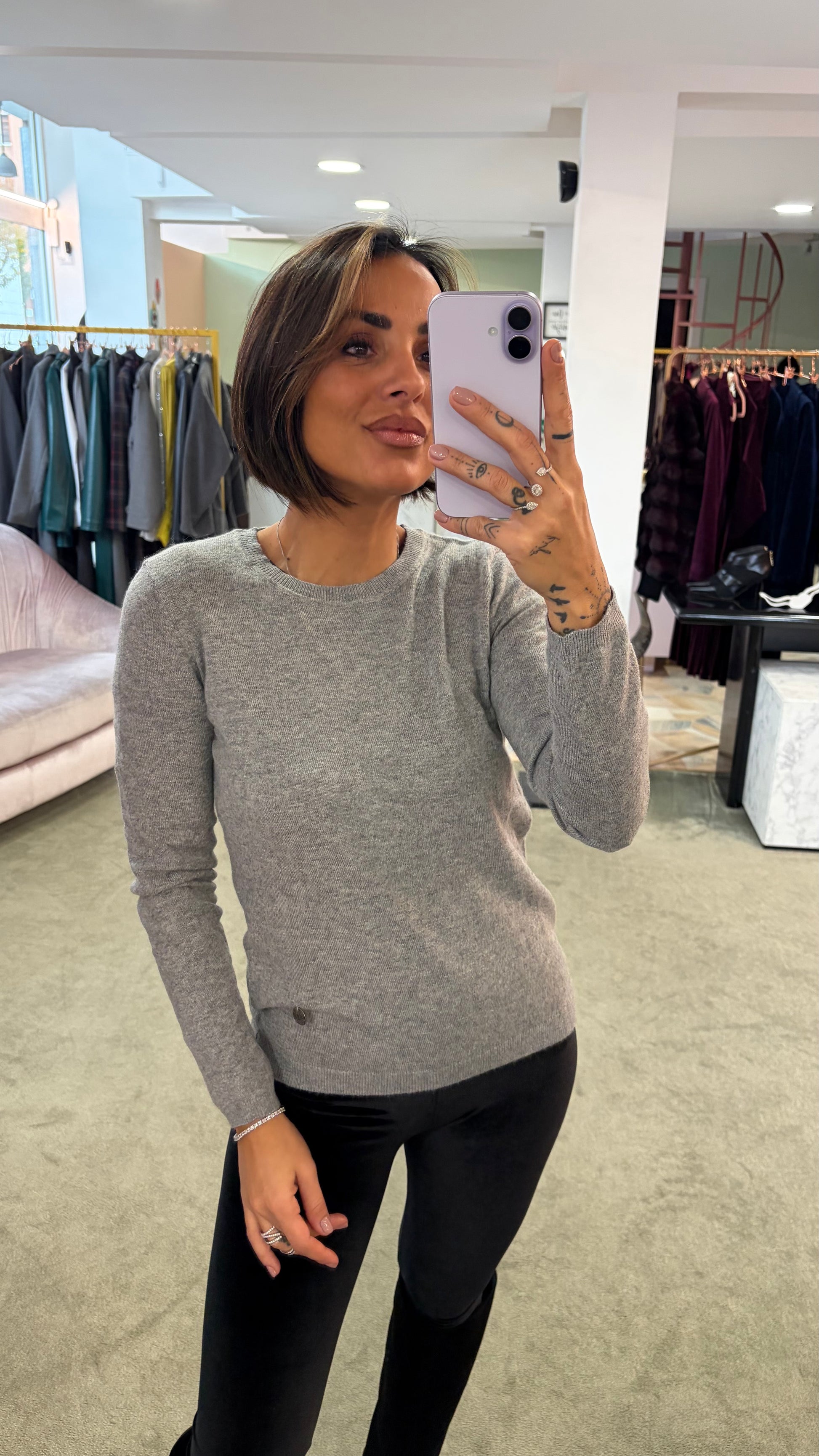 Maglione girocollo grigio in angora tk
