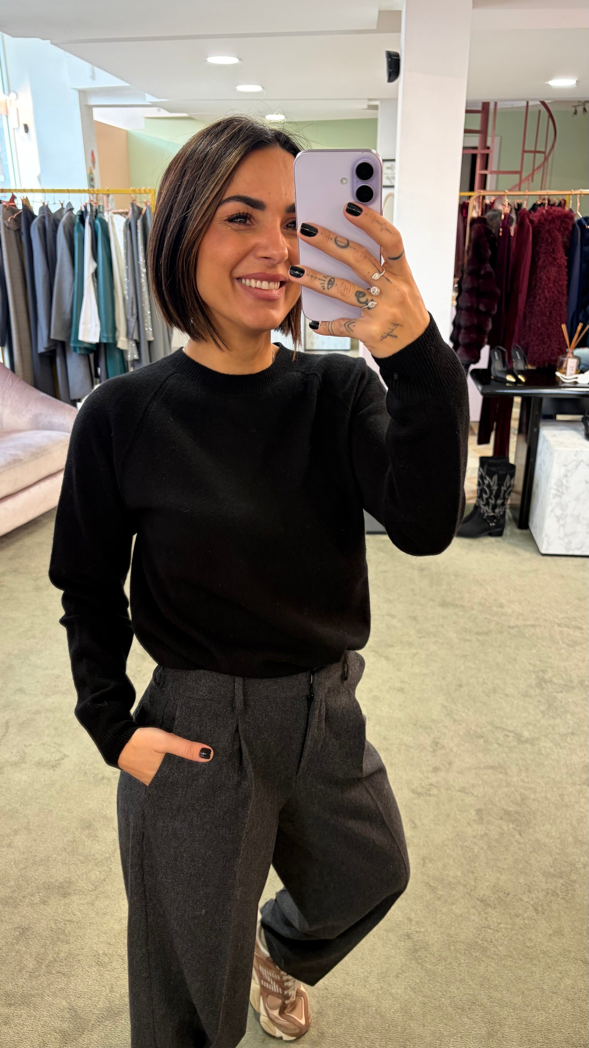 Maglione girocollo nero manica raglan fr