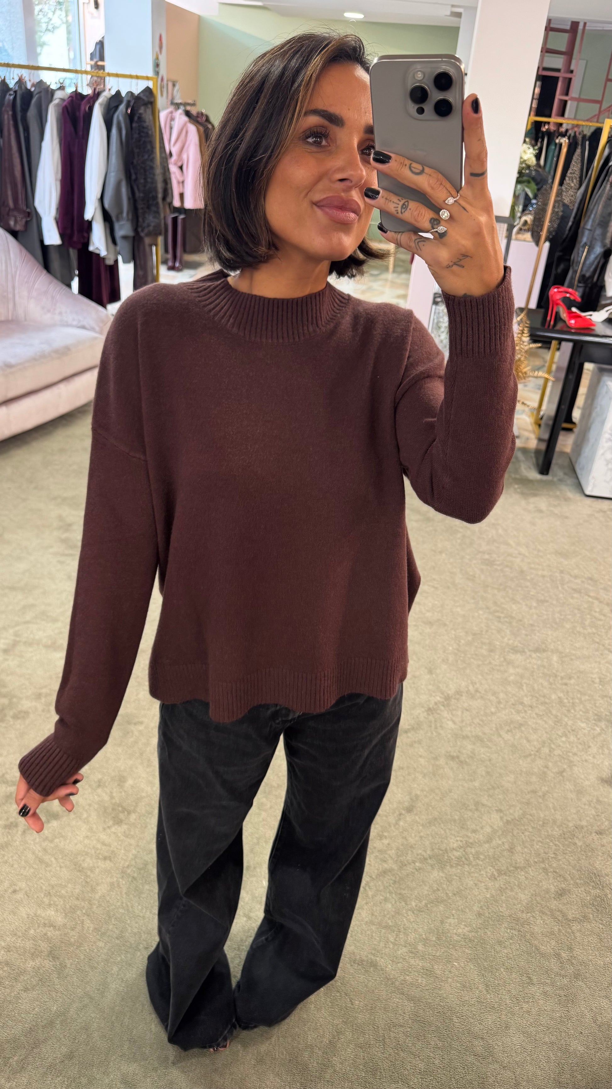 Maglione lupetto marrone a scatola tk