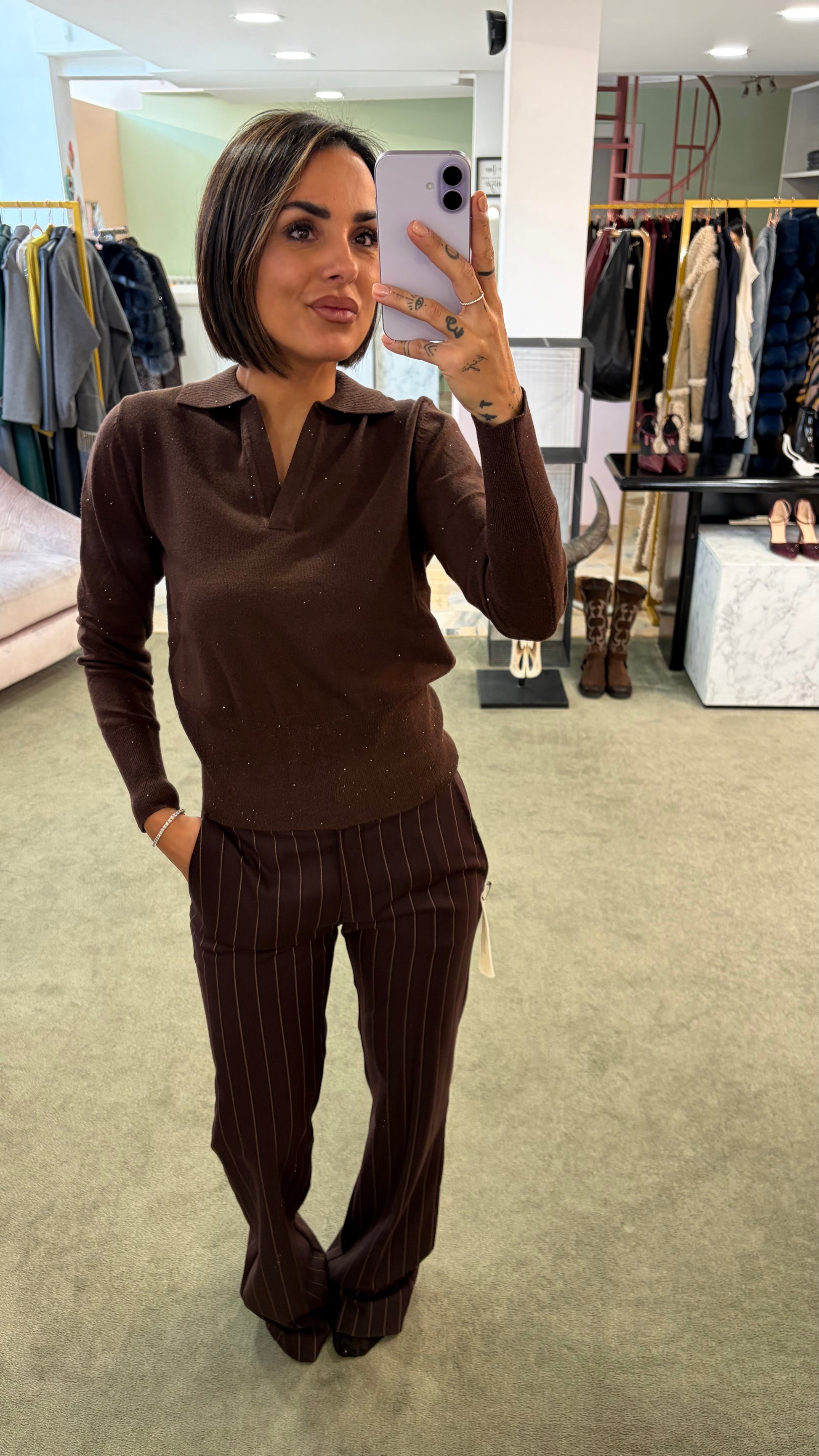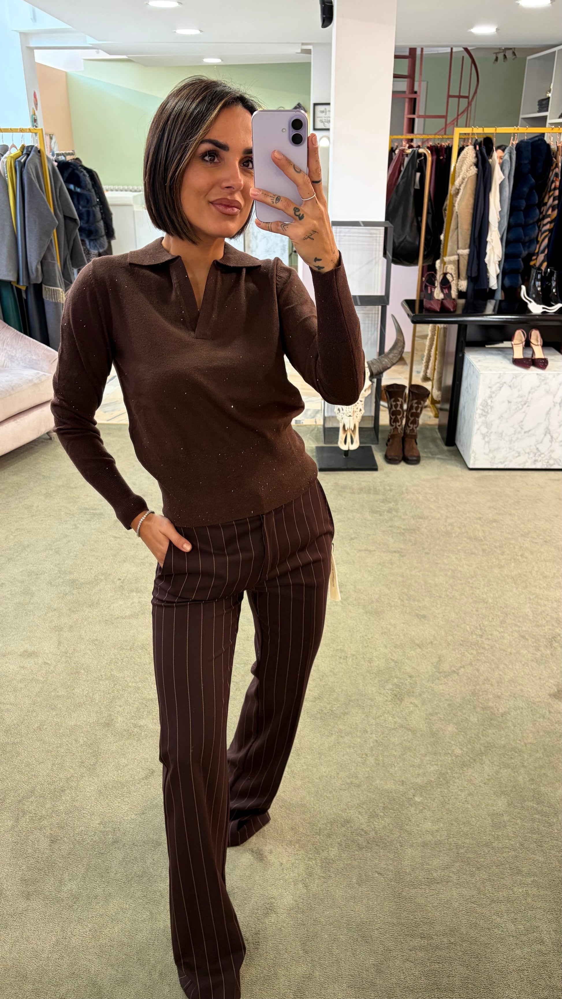Pantaloni marroni gessati MAR DE MARGARITAS