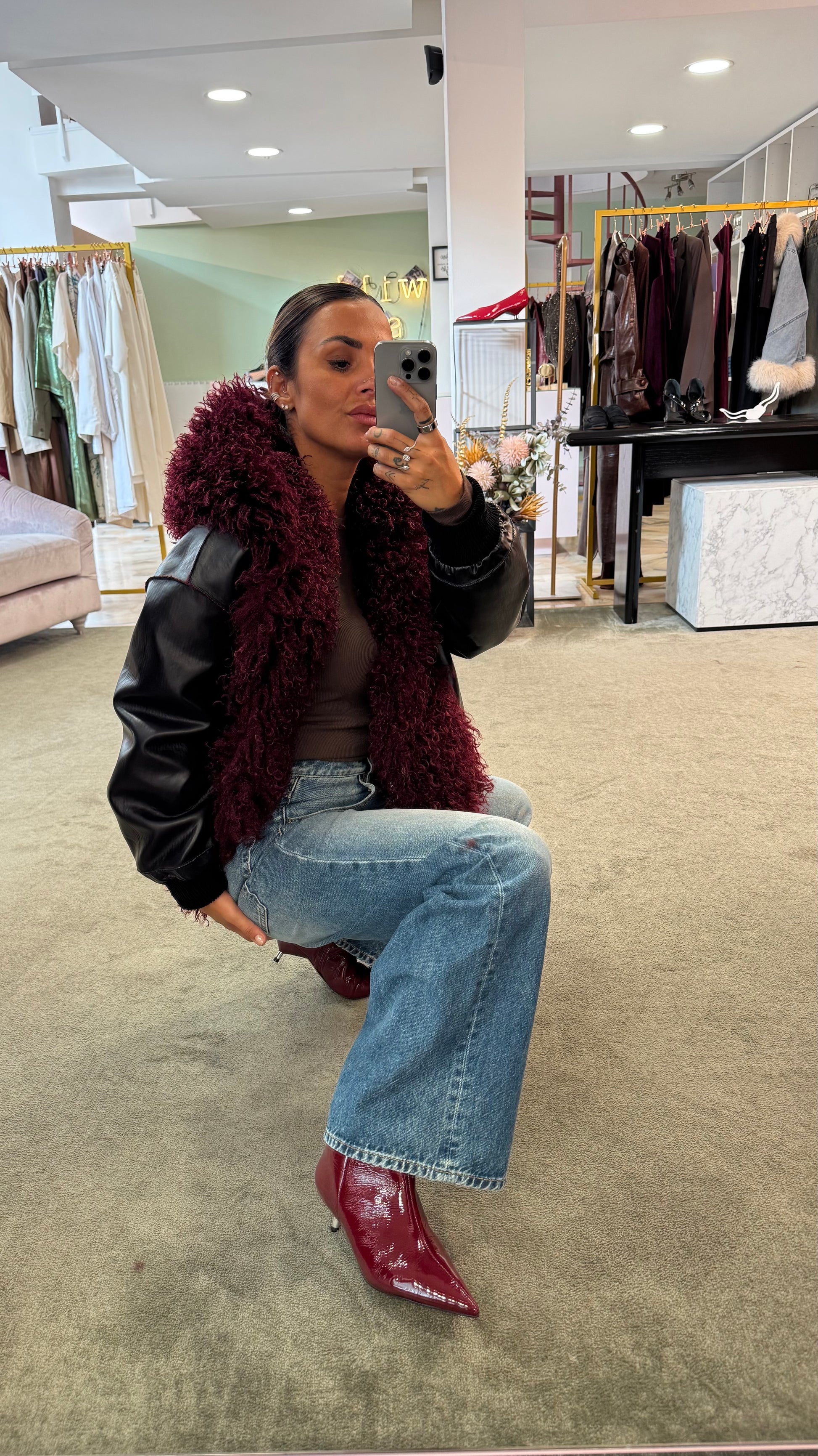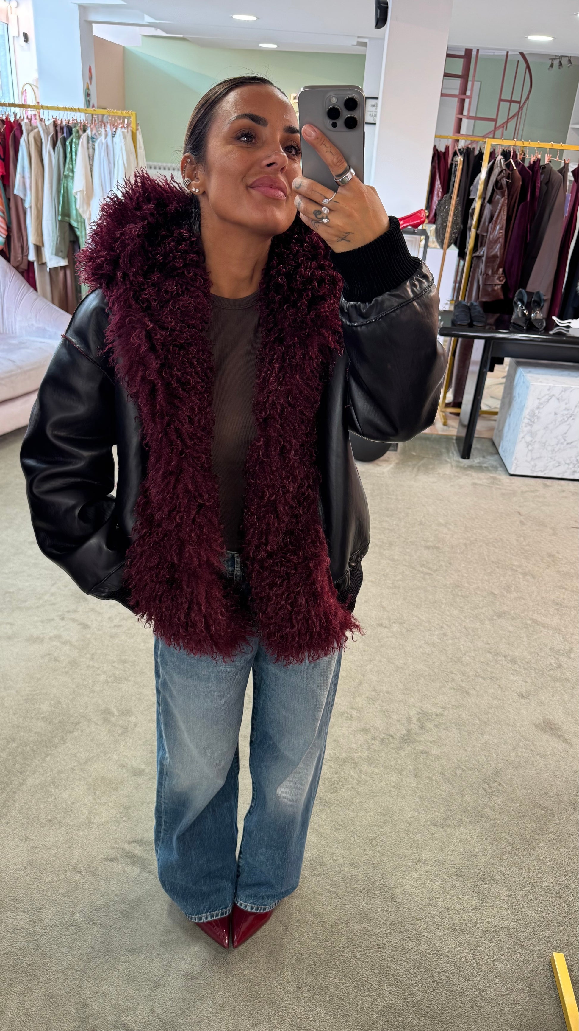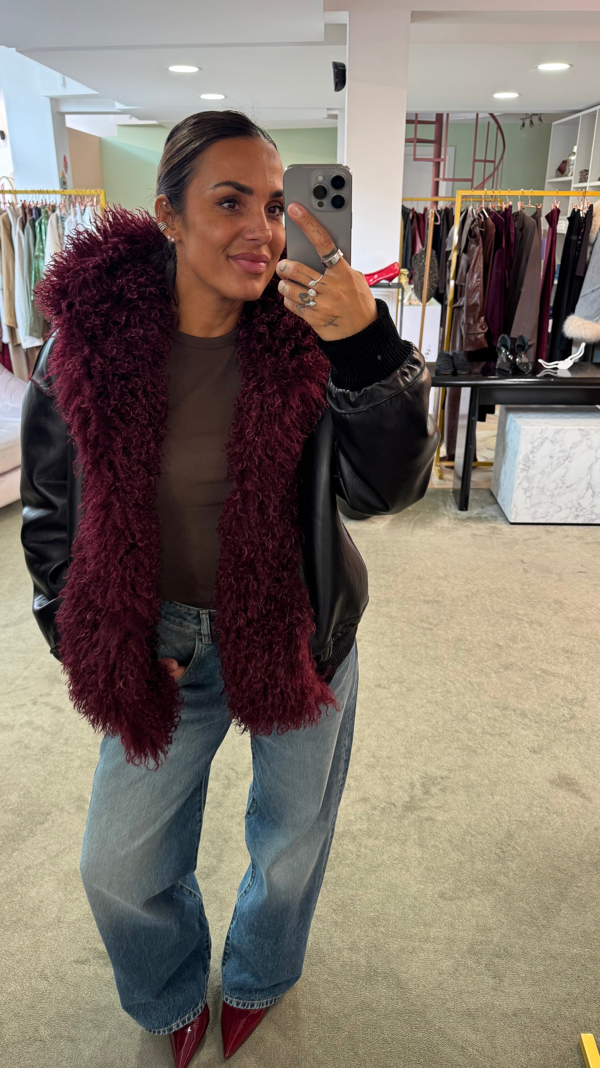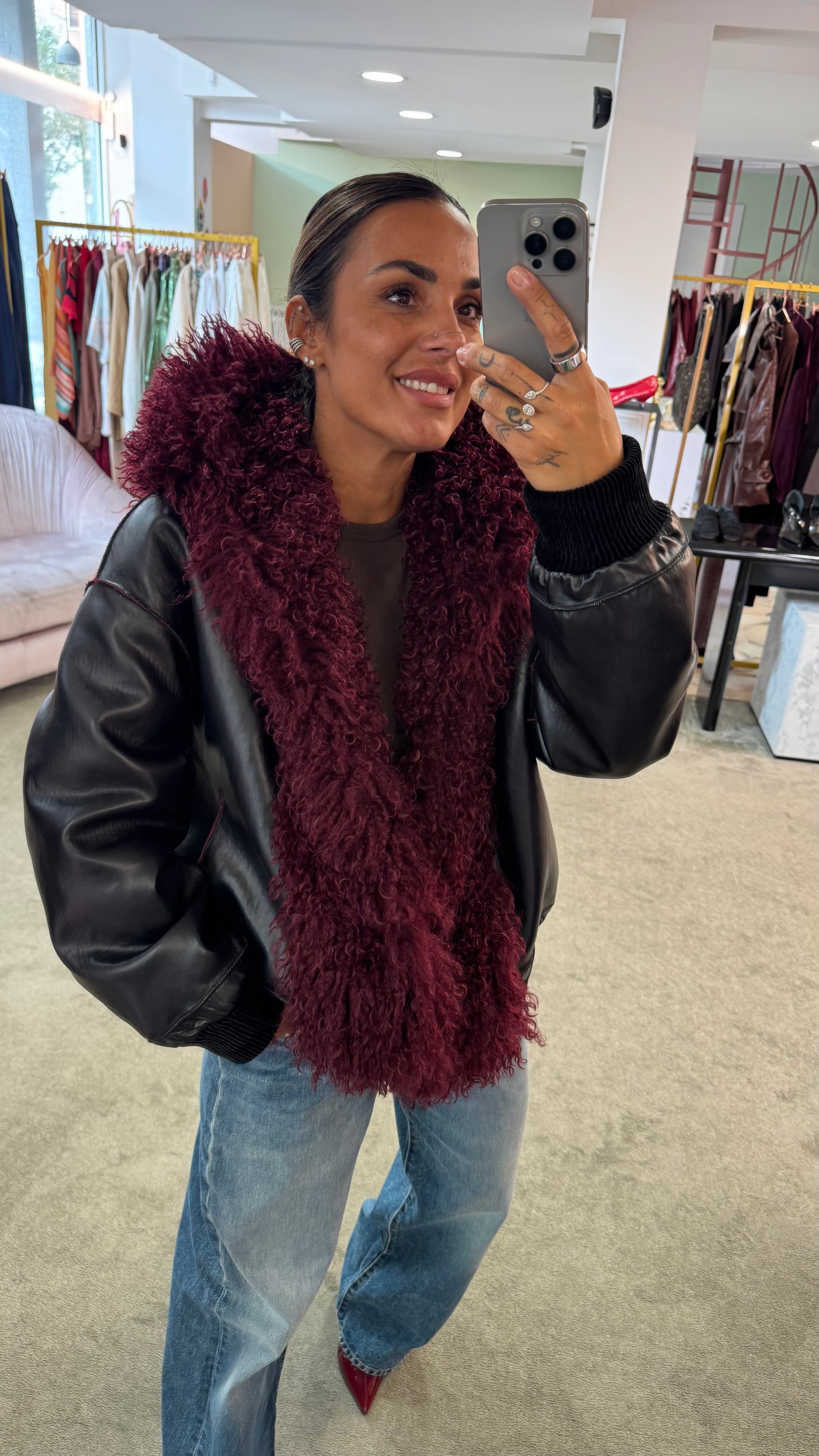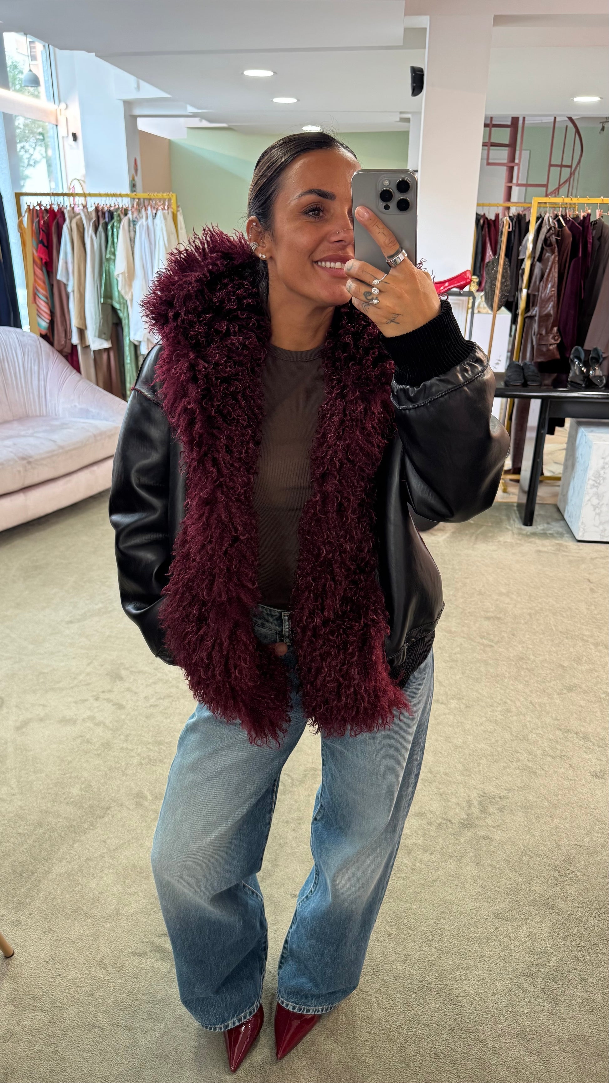 Bomber mongolia eco bordeaux con cappuccio