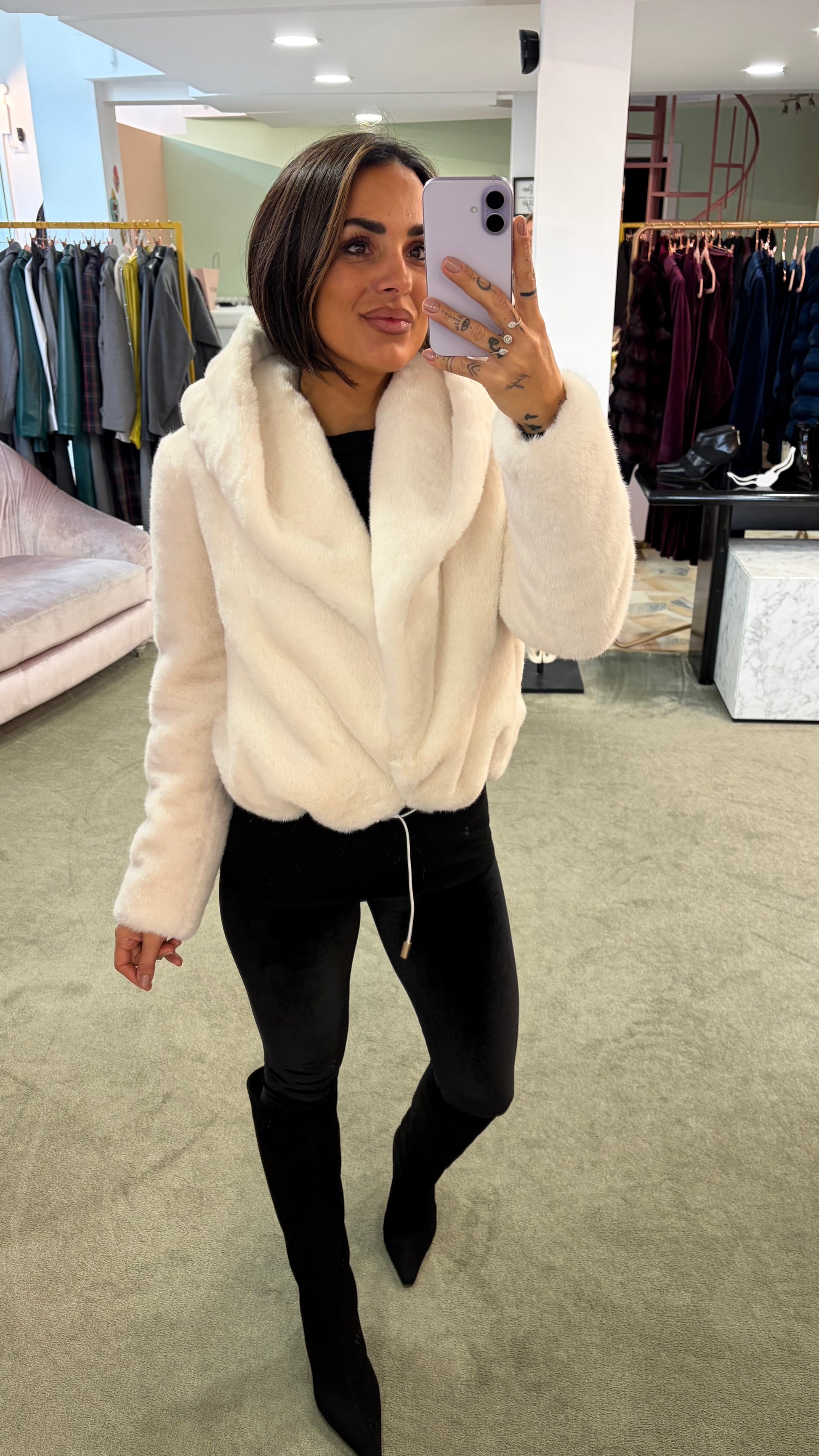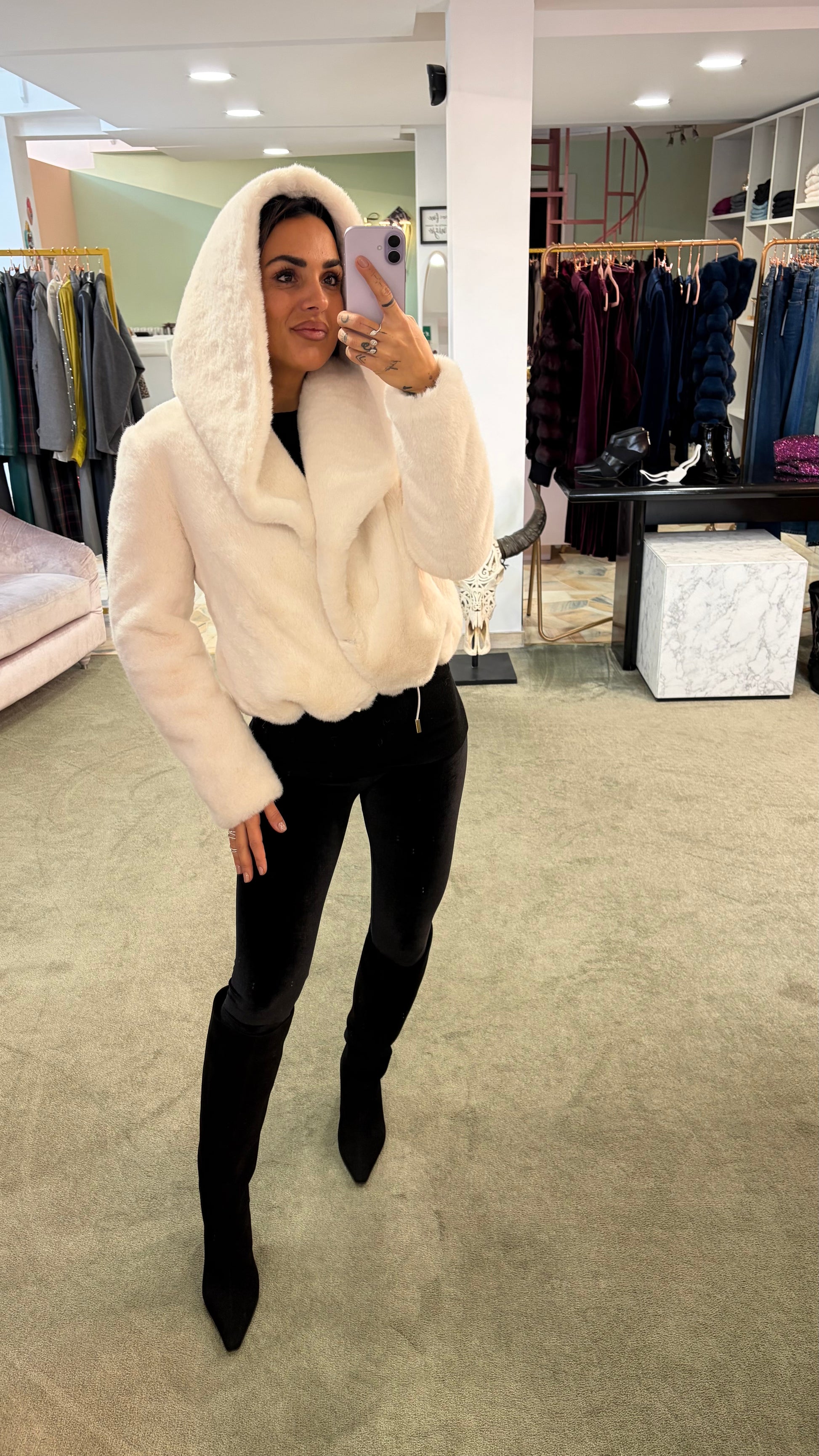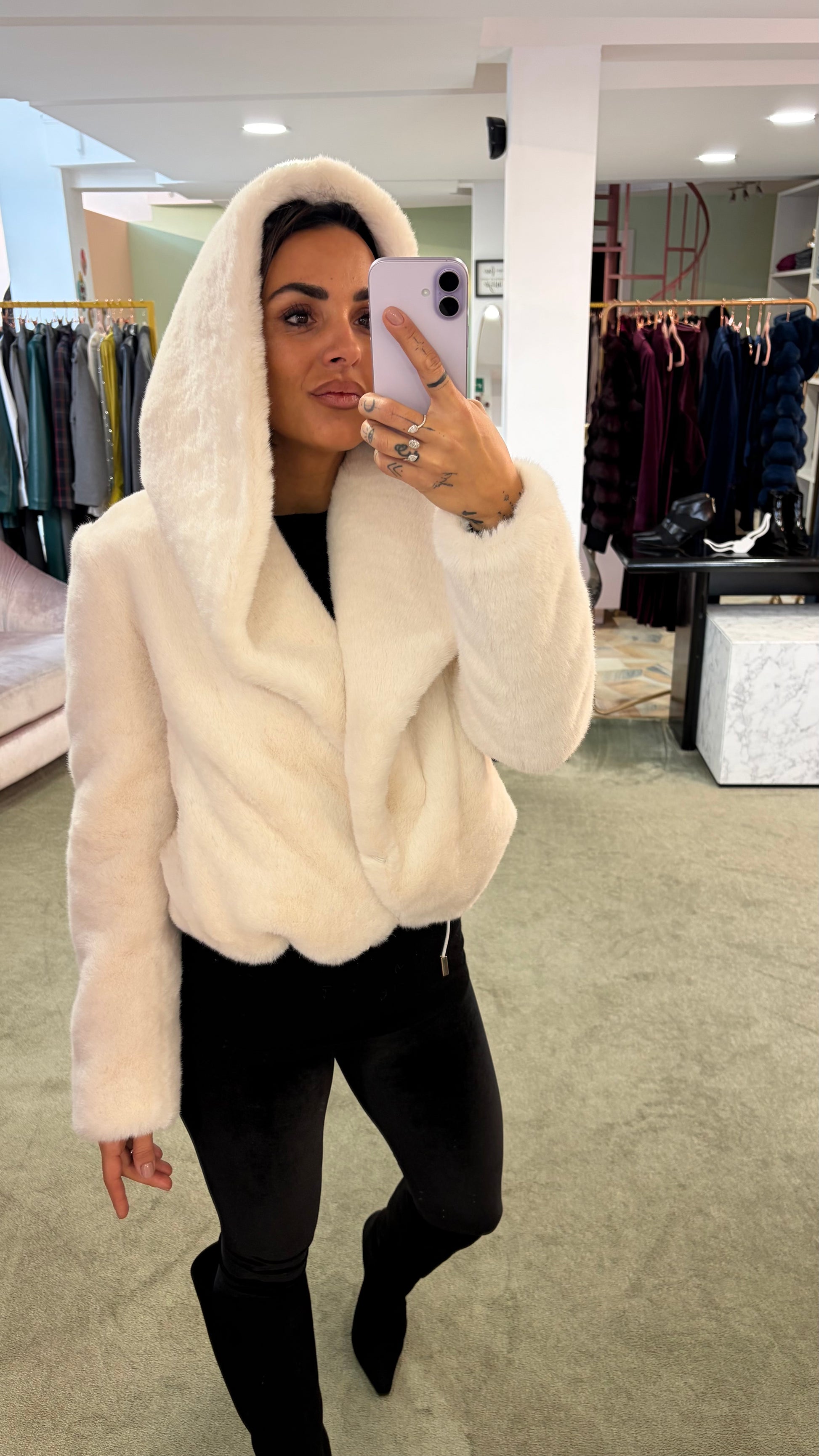Pelliccia eco visone bianca luxury con cappuccio ys