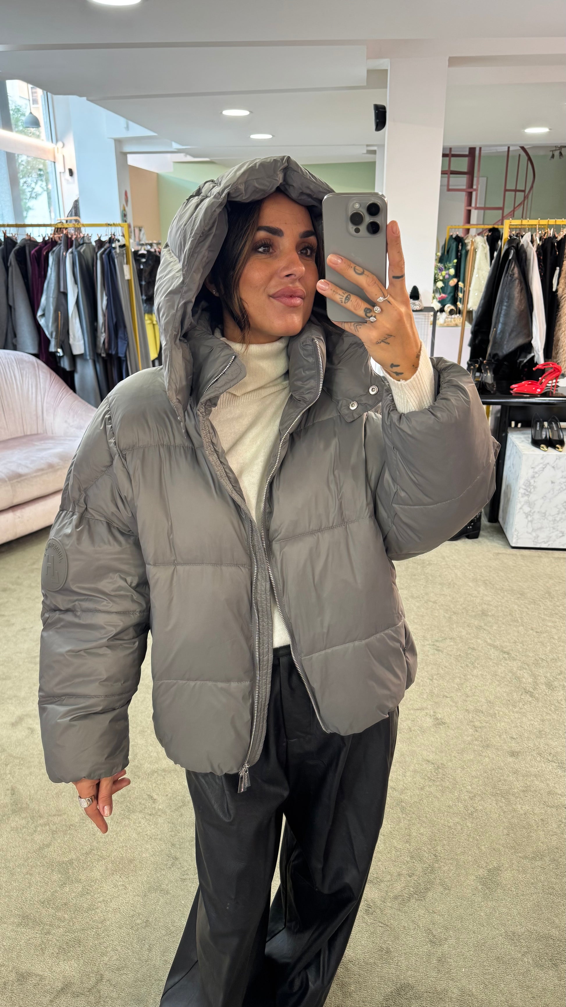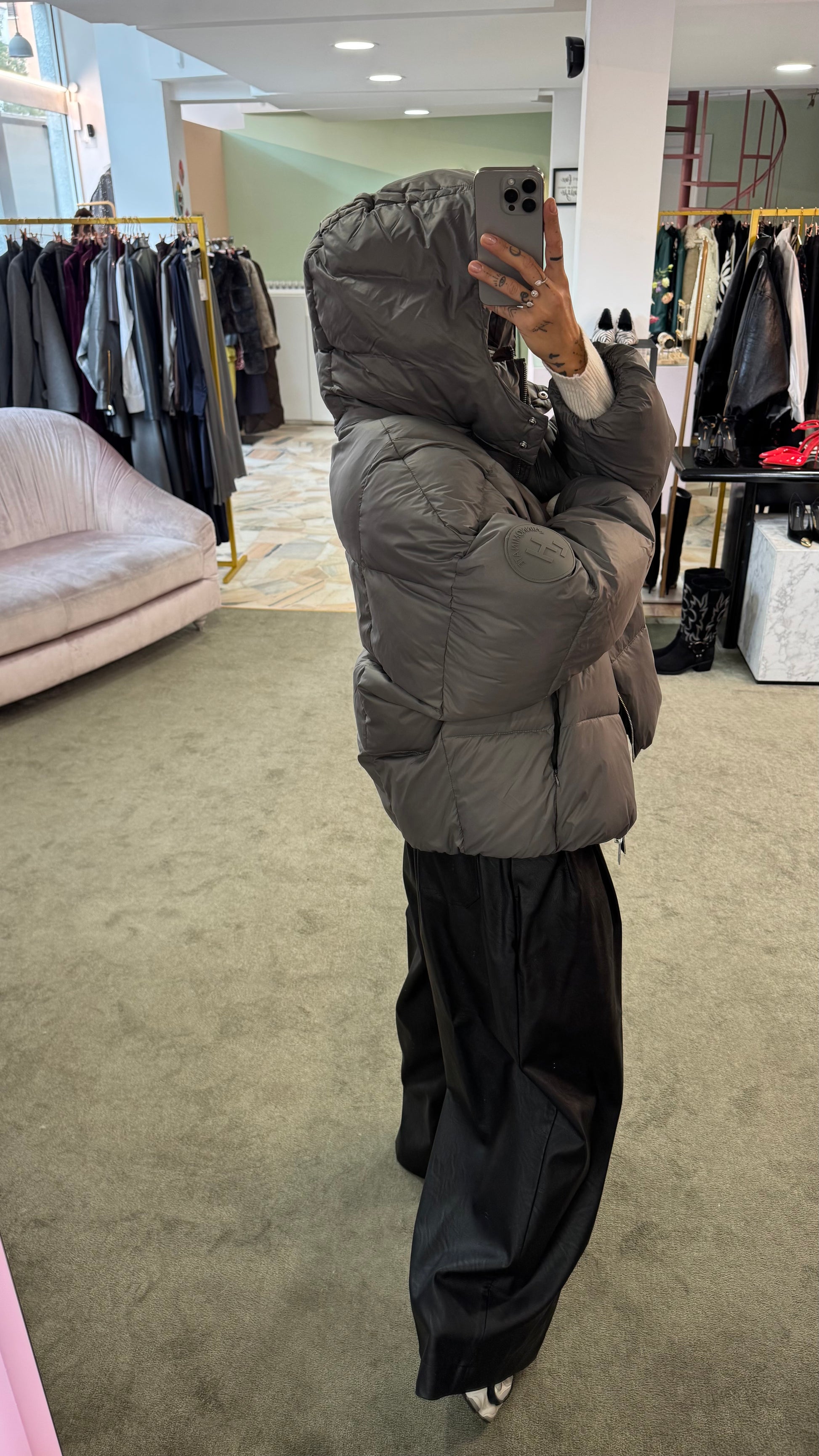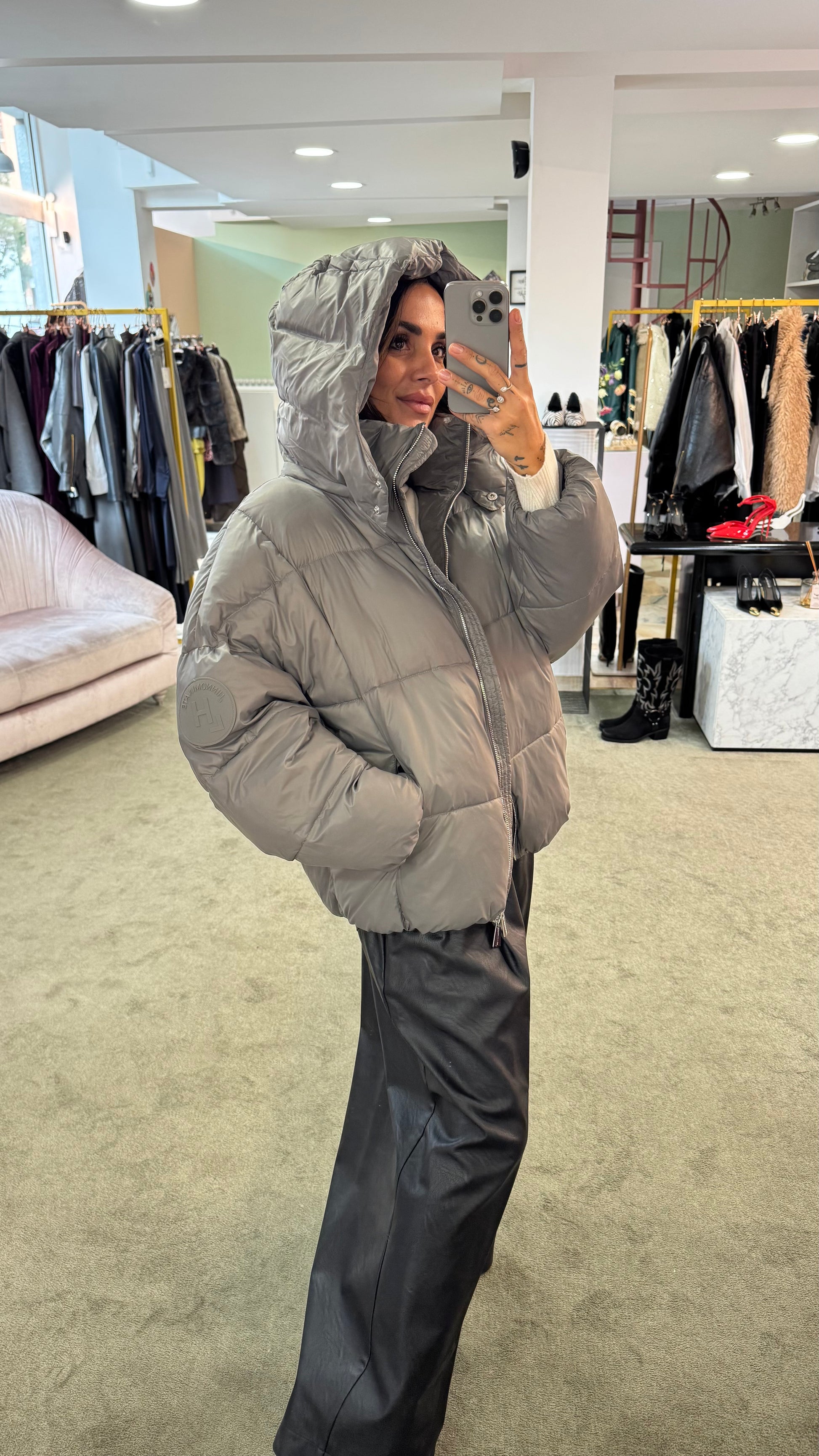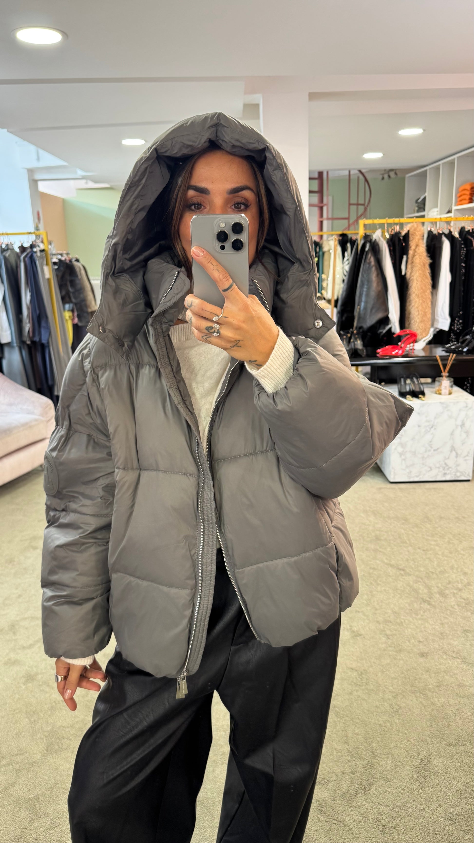 Piumino grigio over con cappuccio Hinnominate