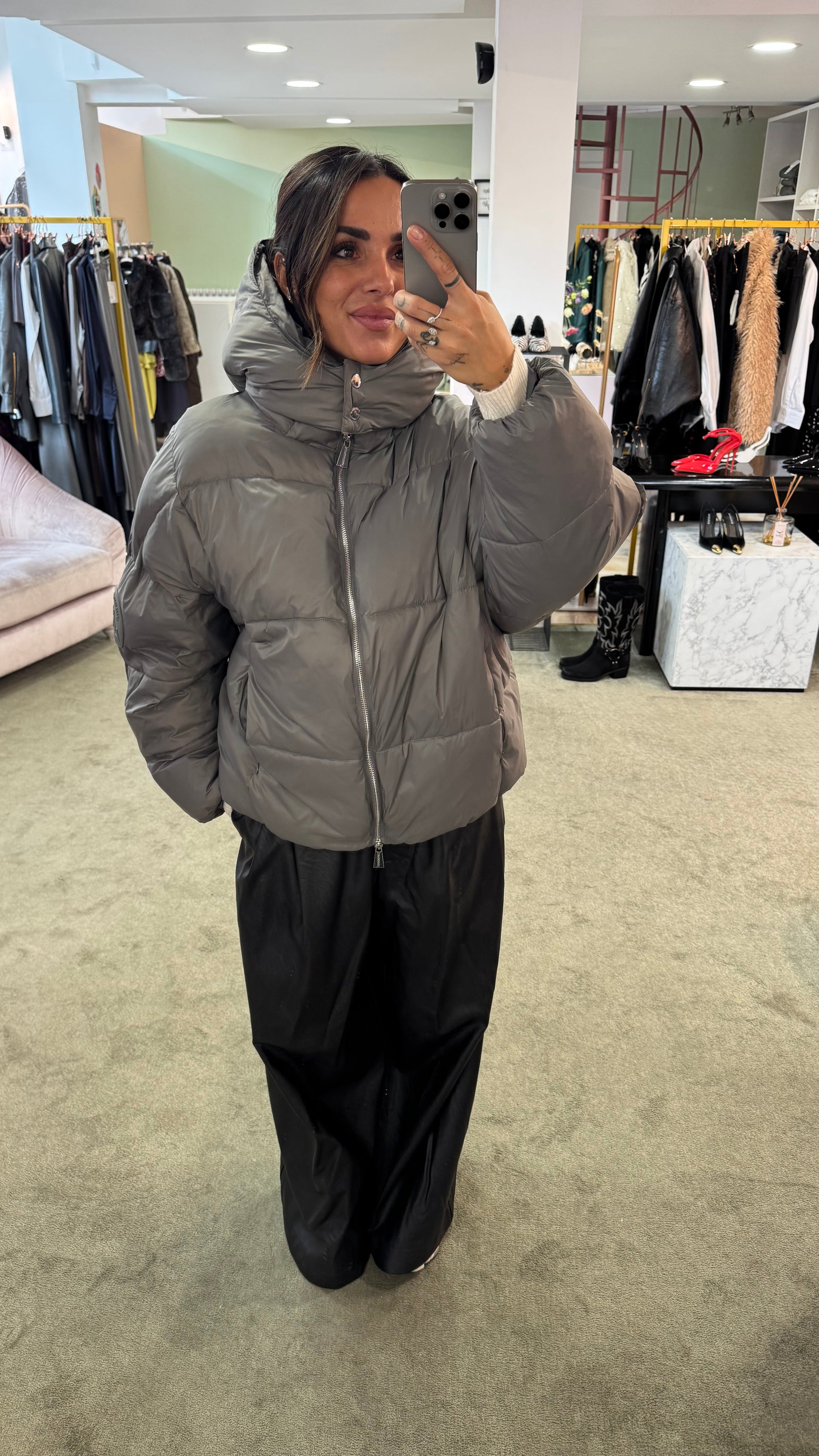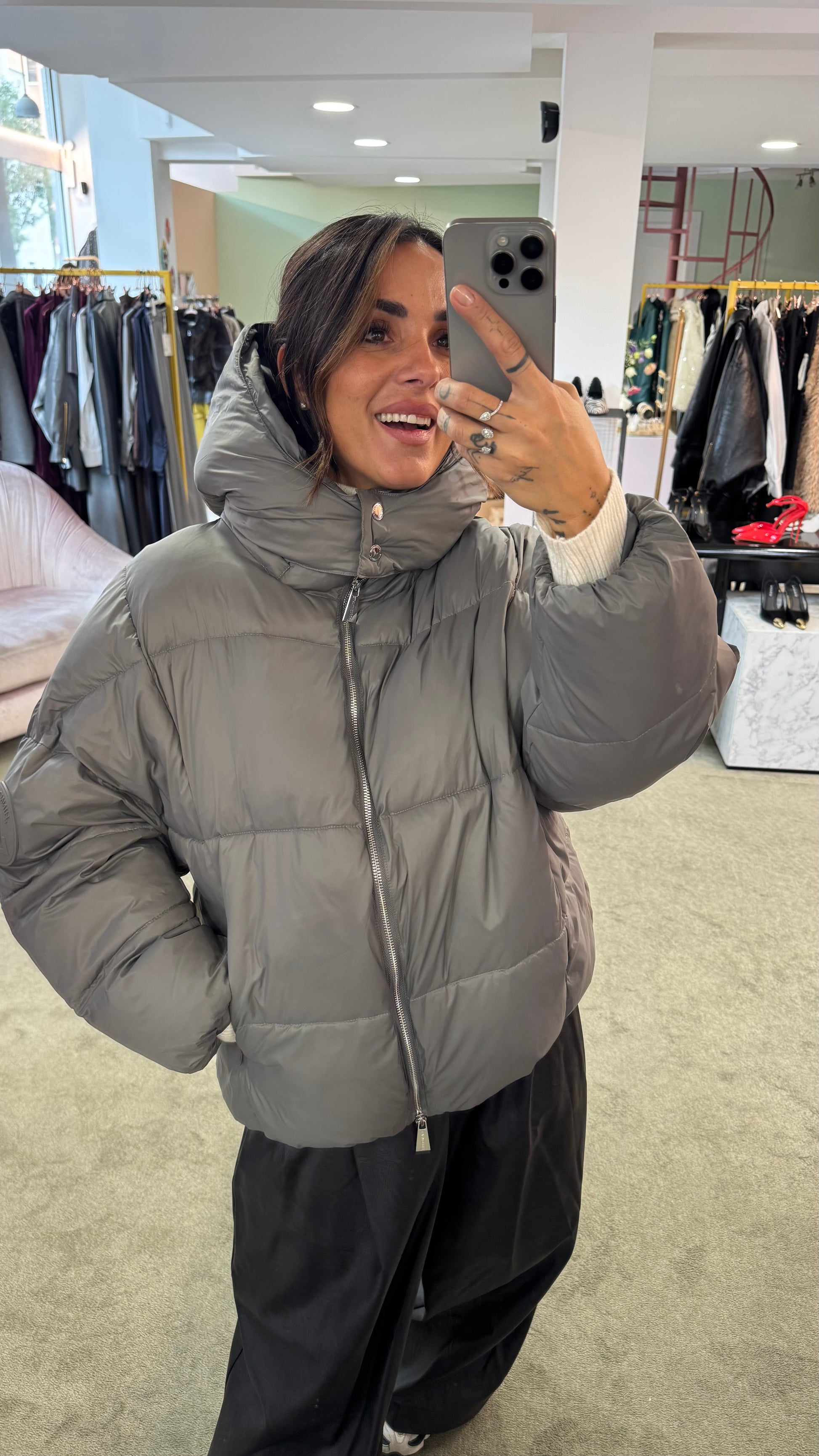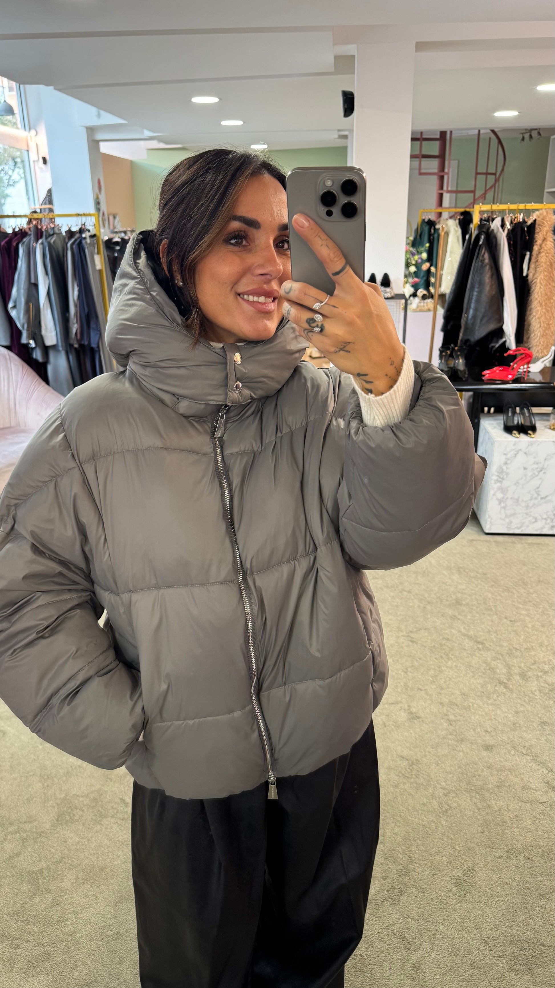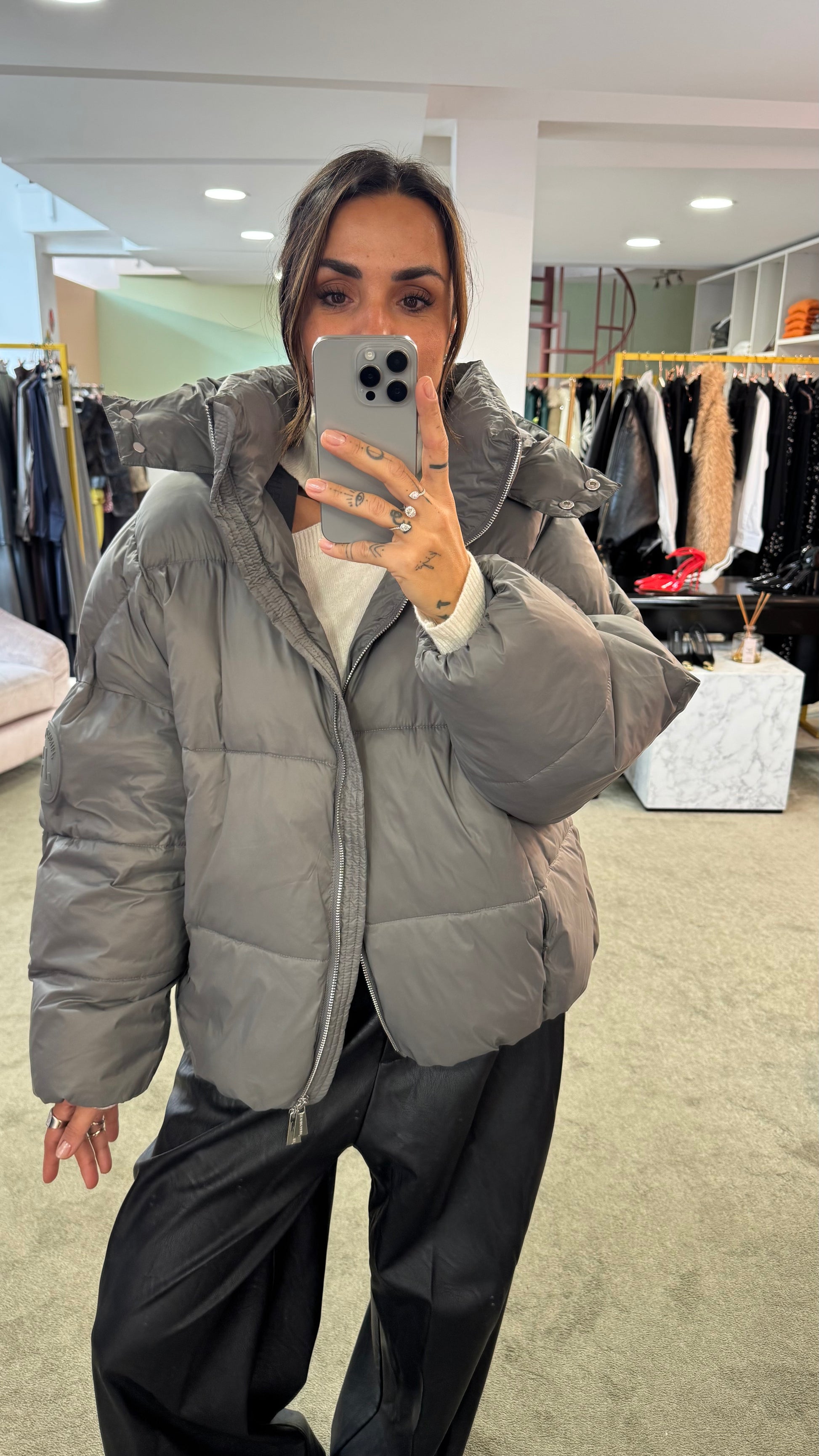 Piumino grigio over con cappuccio Hinnominate