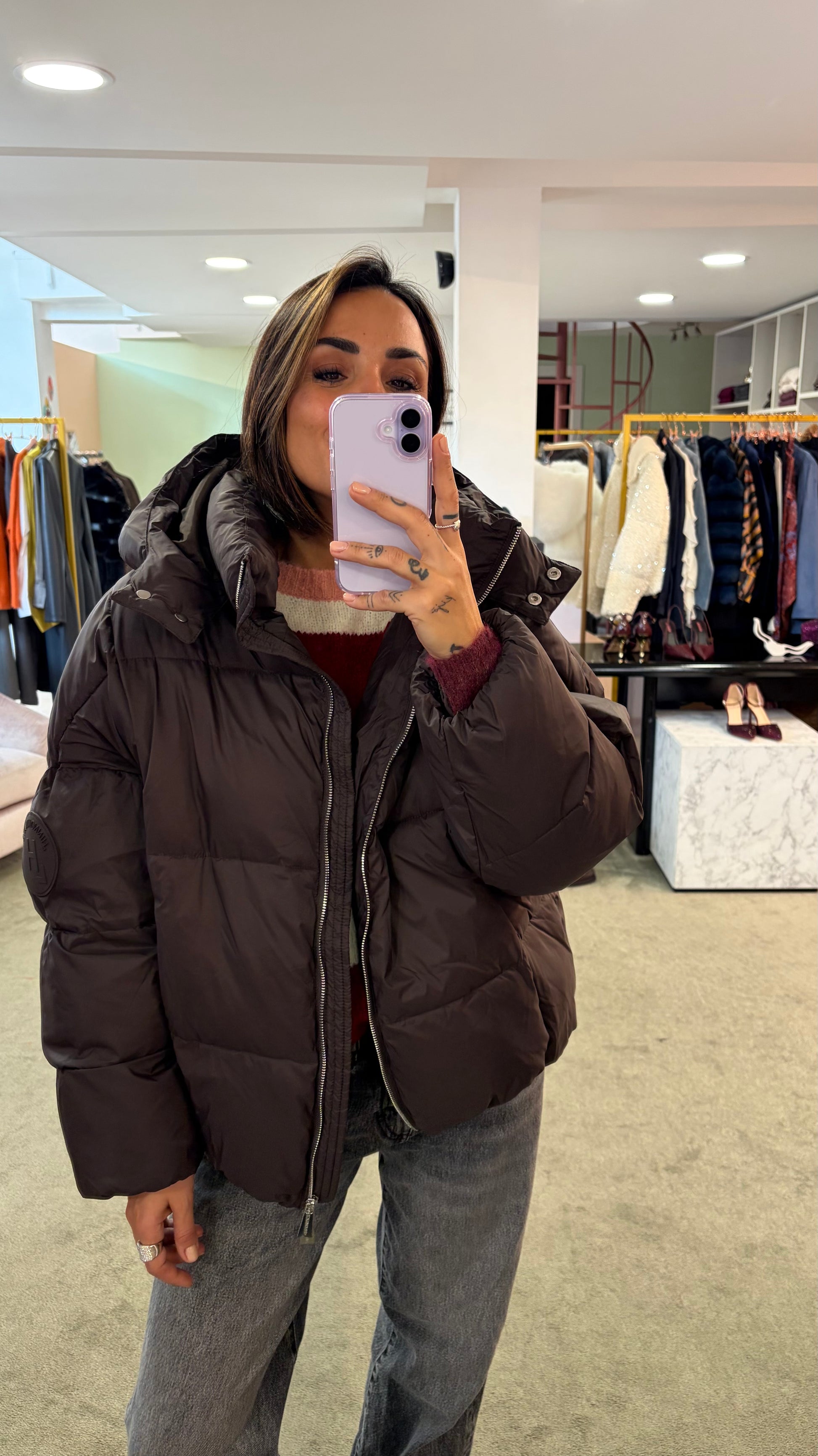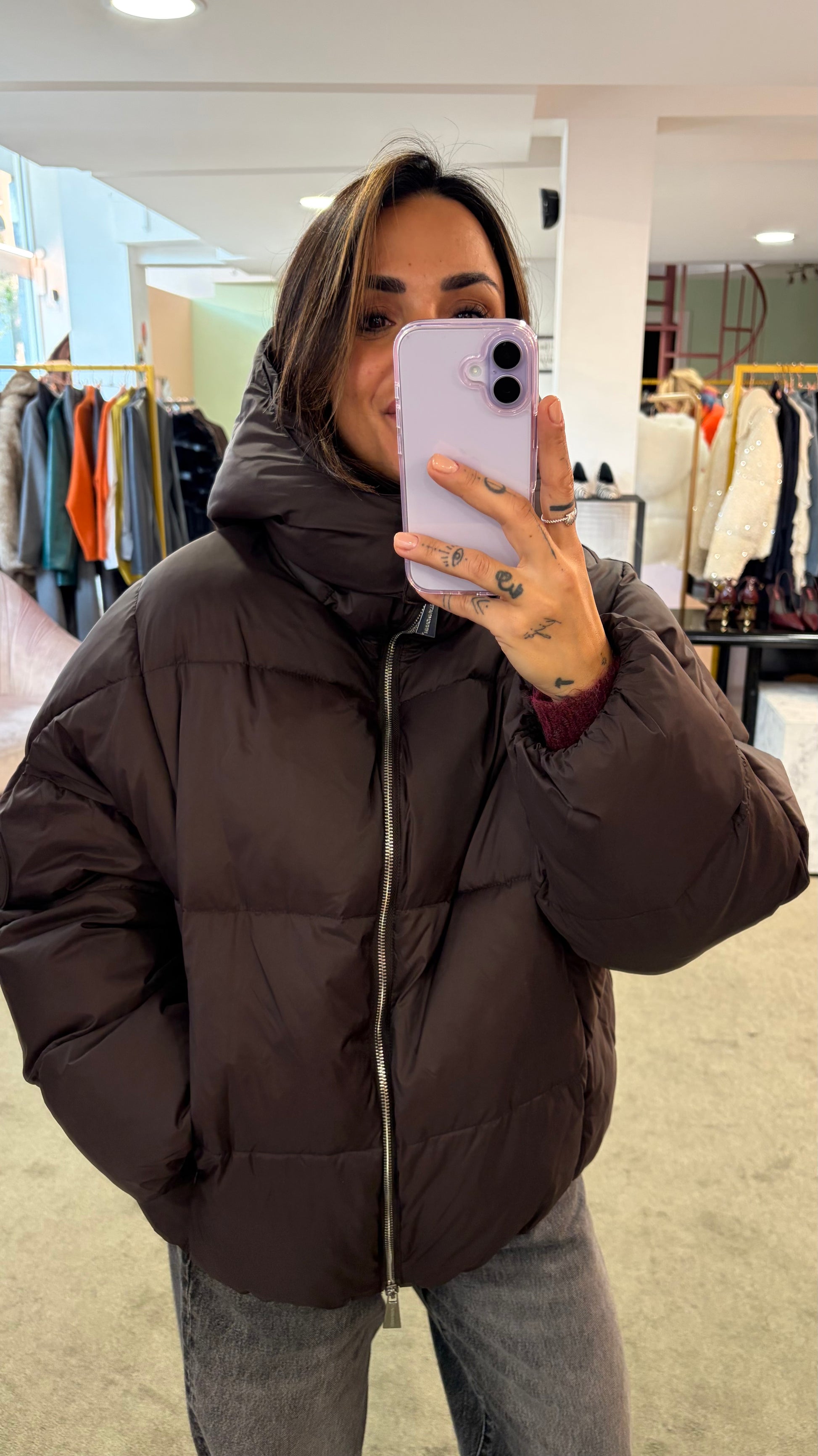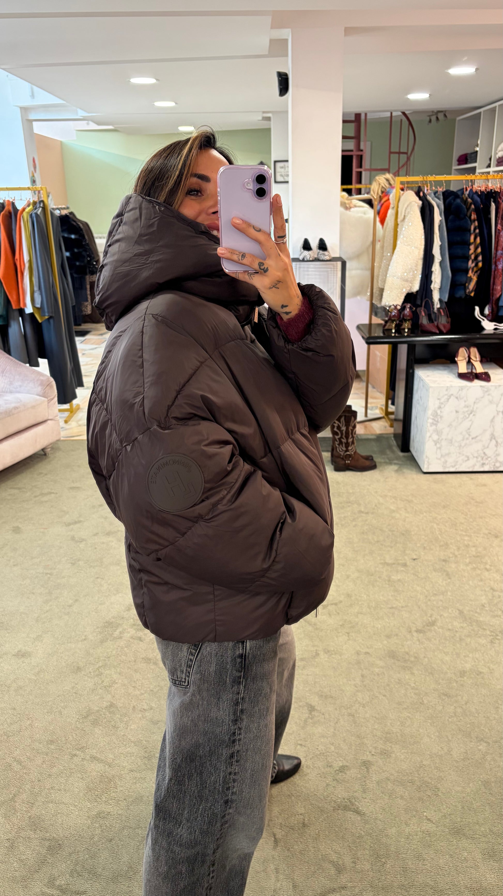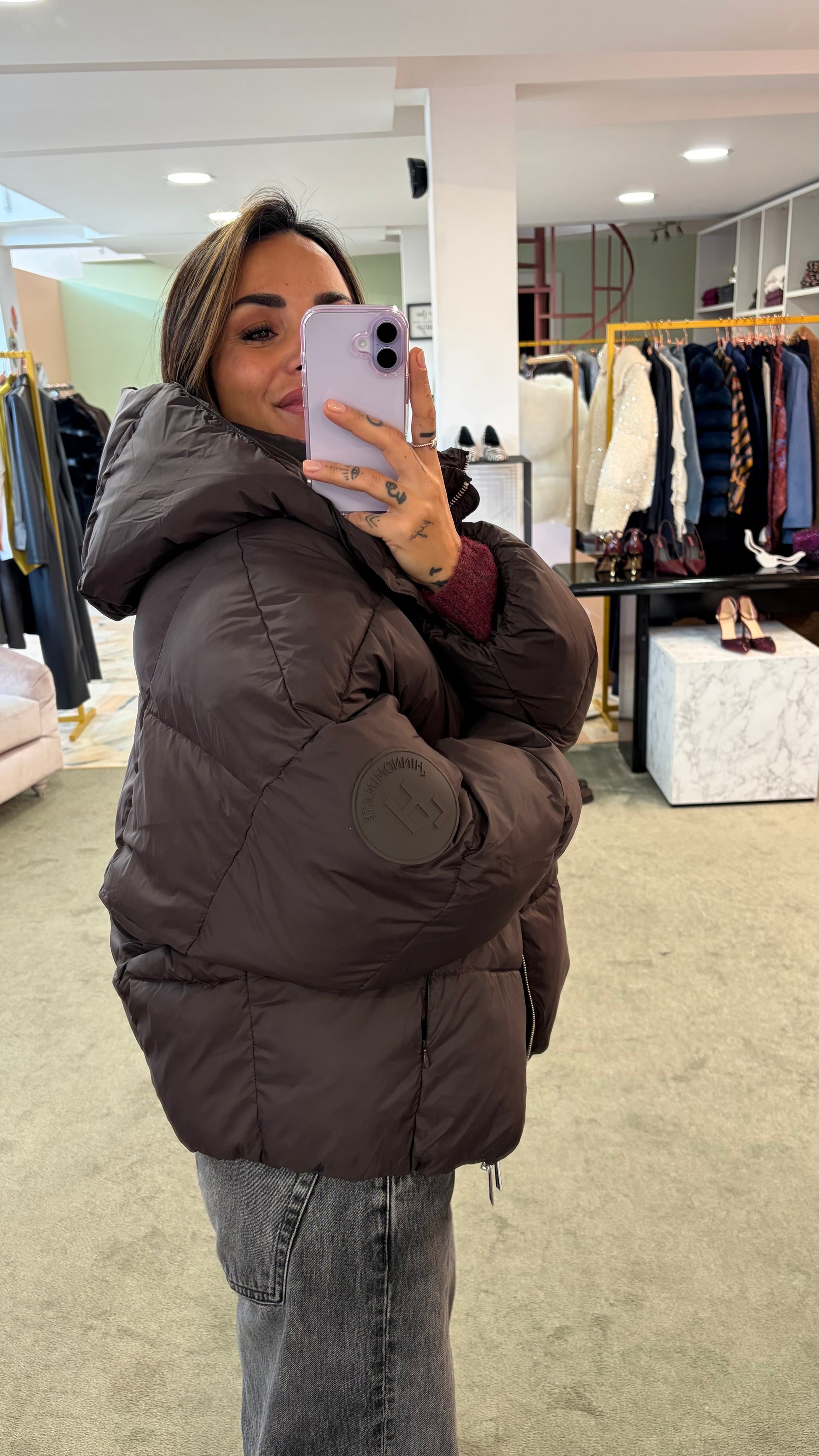 Piumino marrone testa di moro over con cappuccio Hinnominate