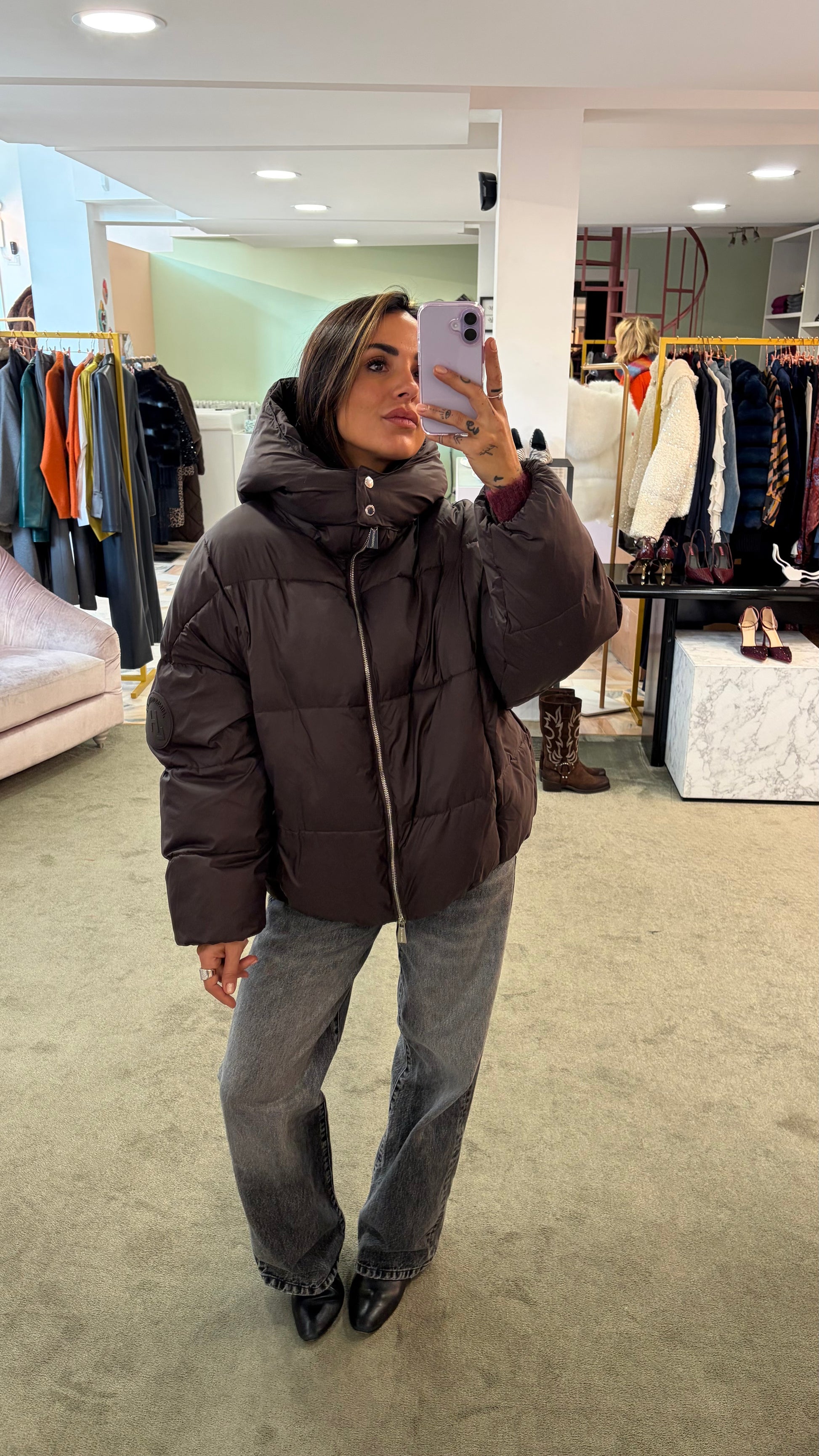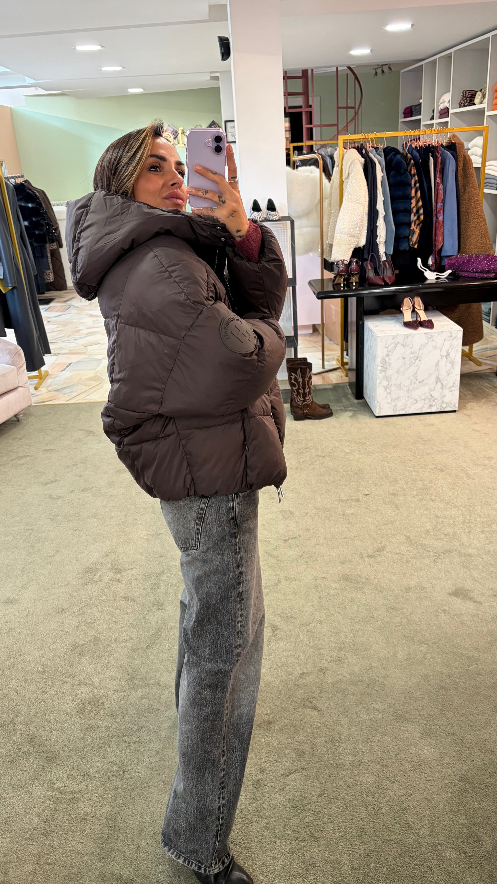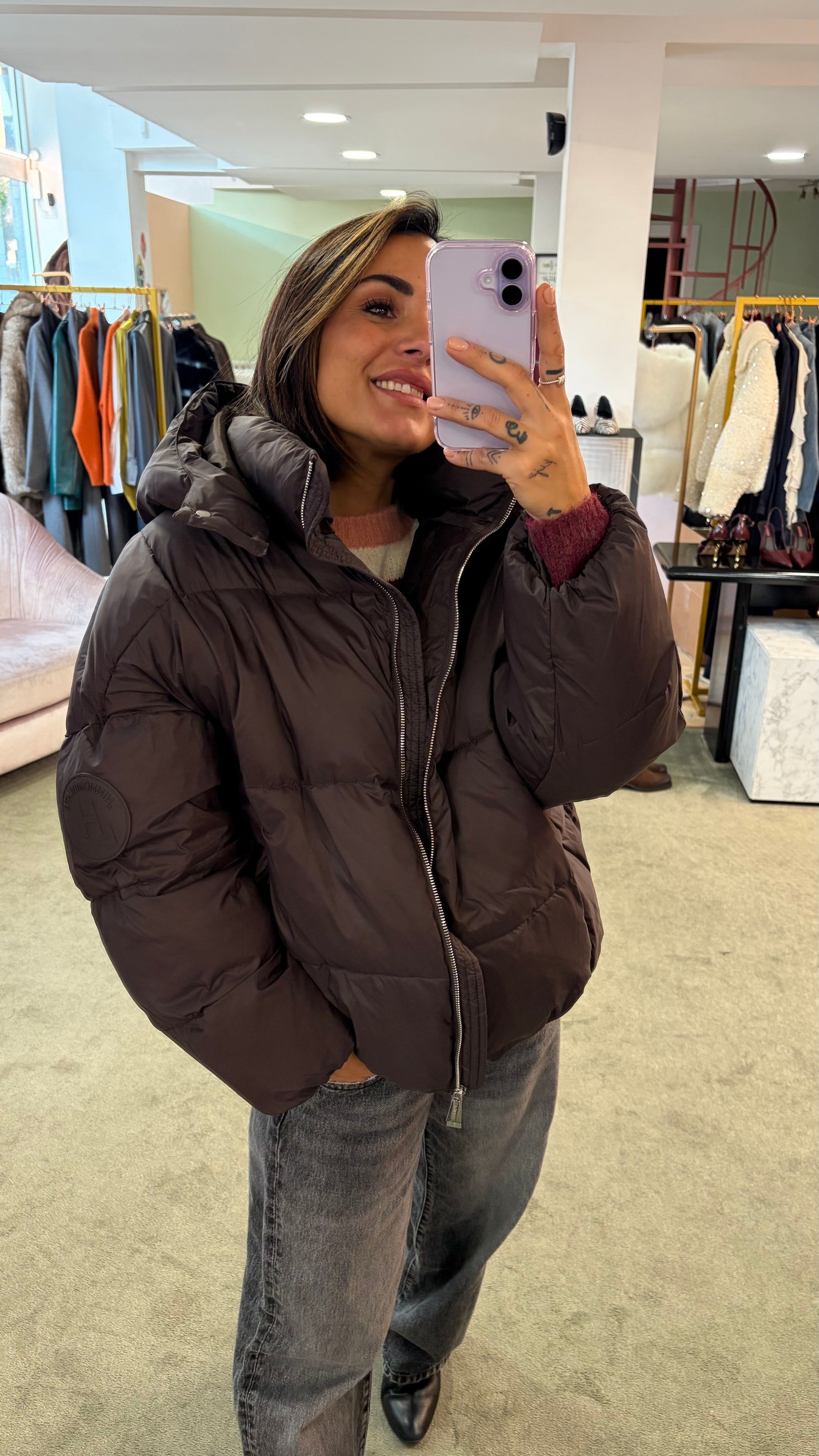 Piumino marrone testa di moro over con cappuccio Hinnominate