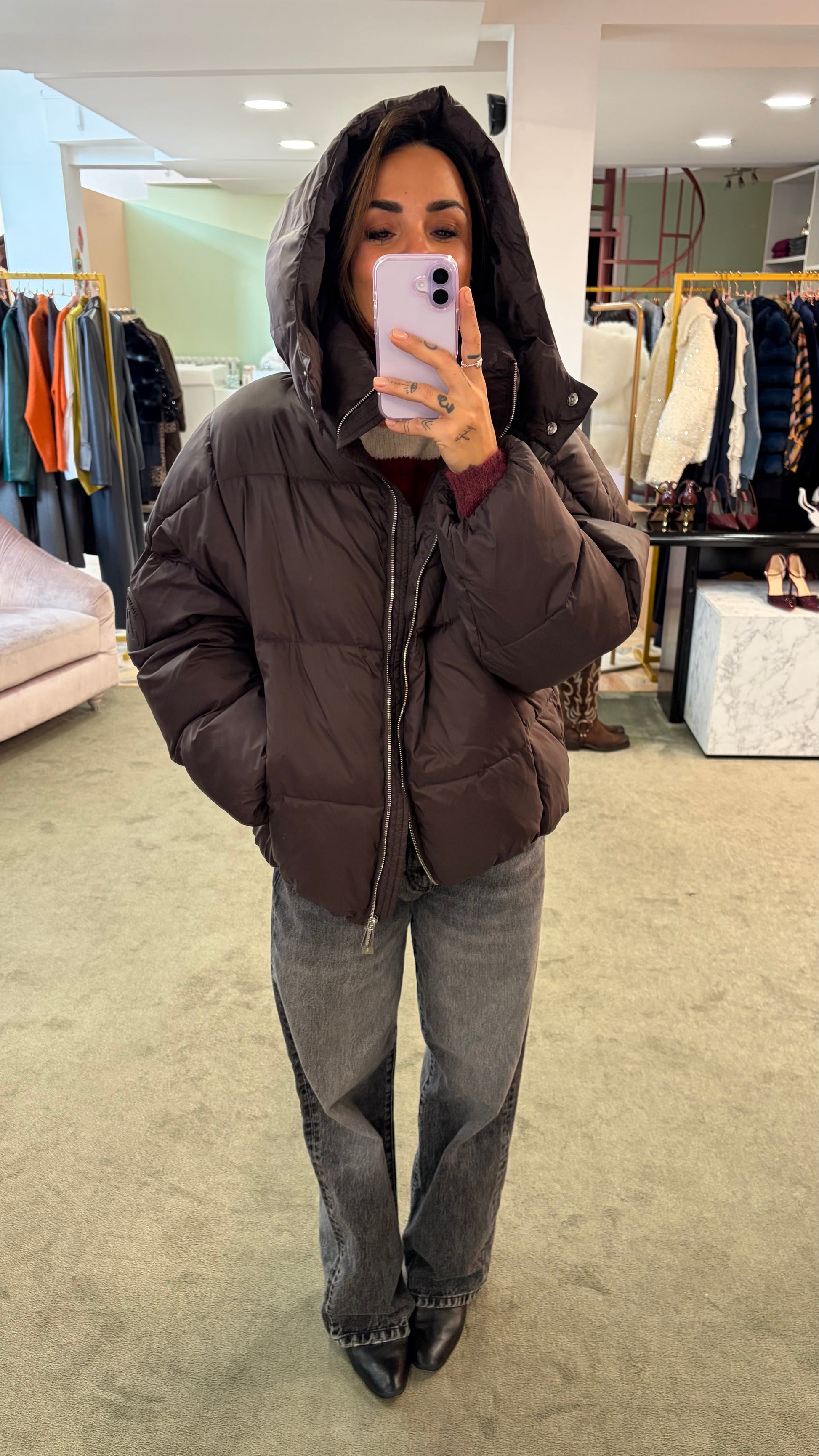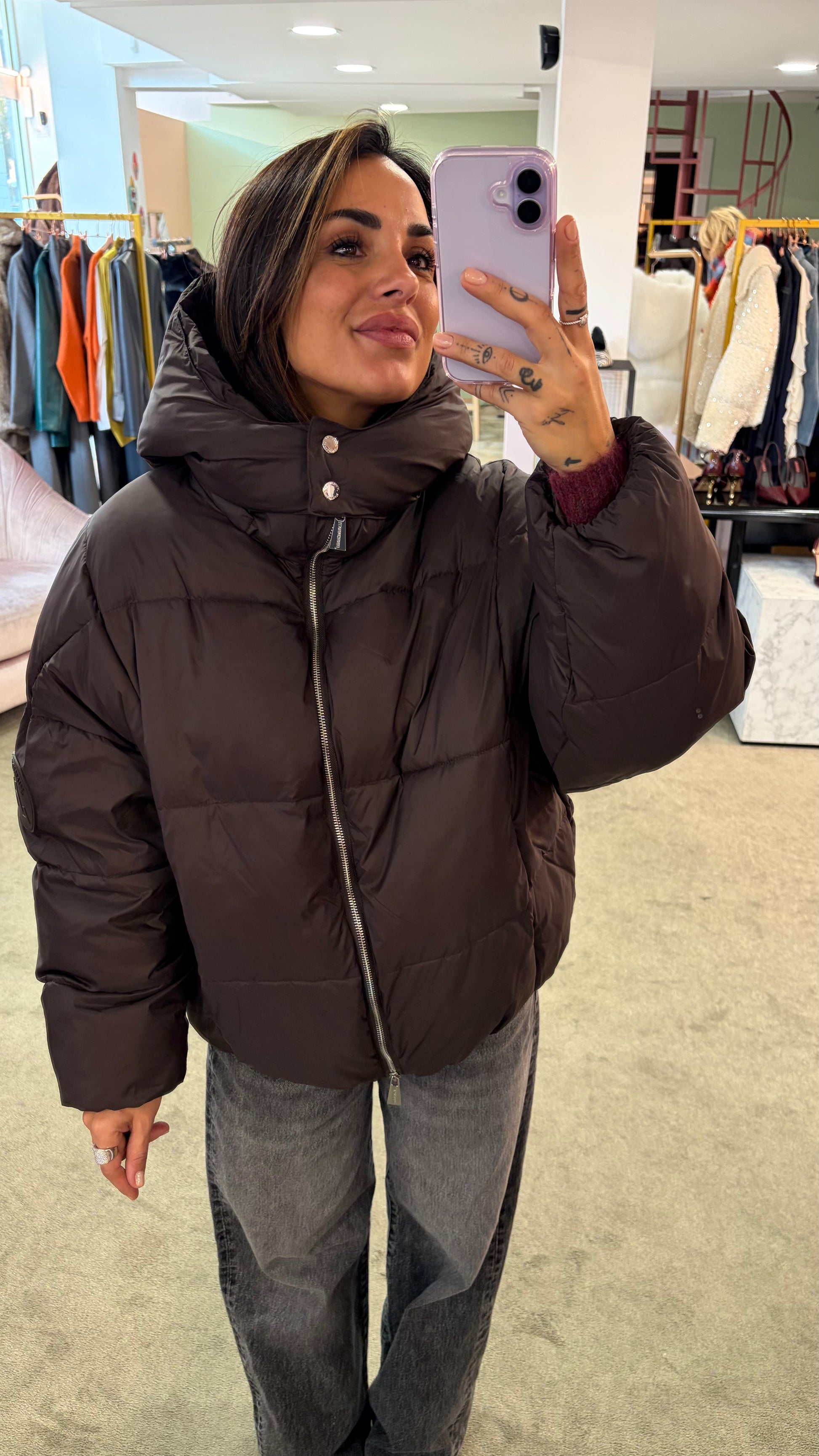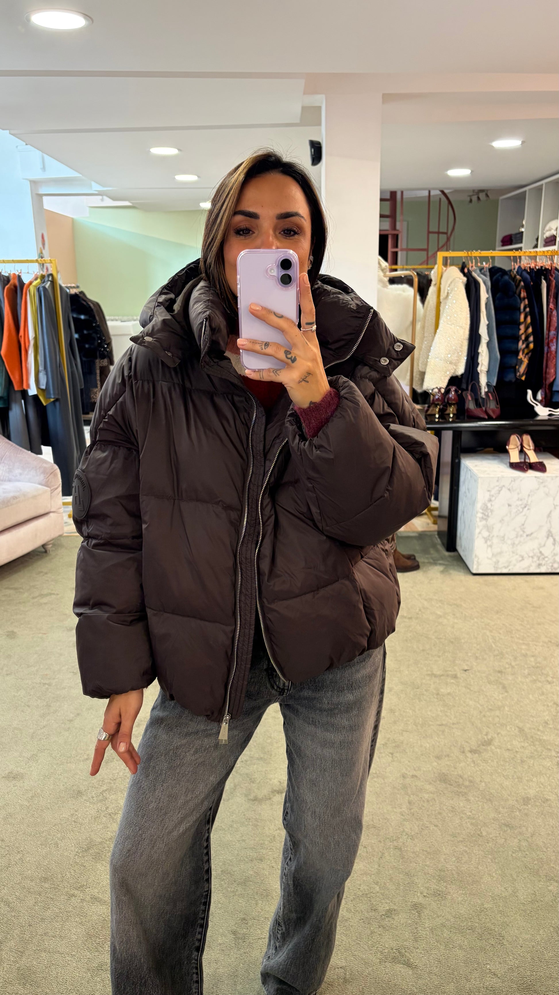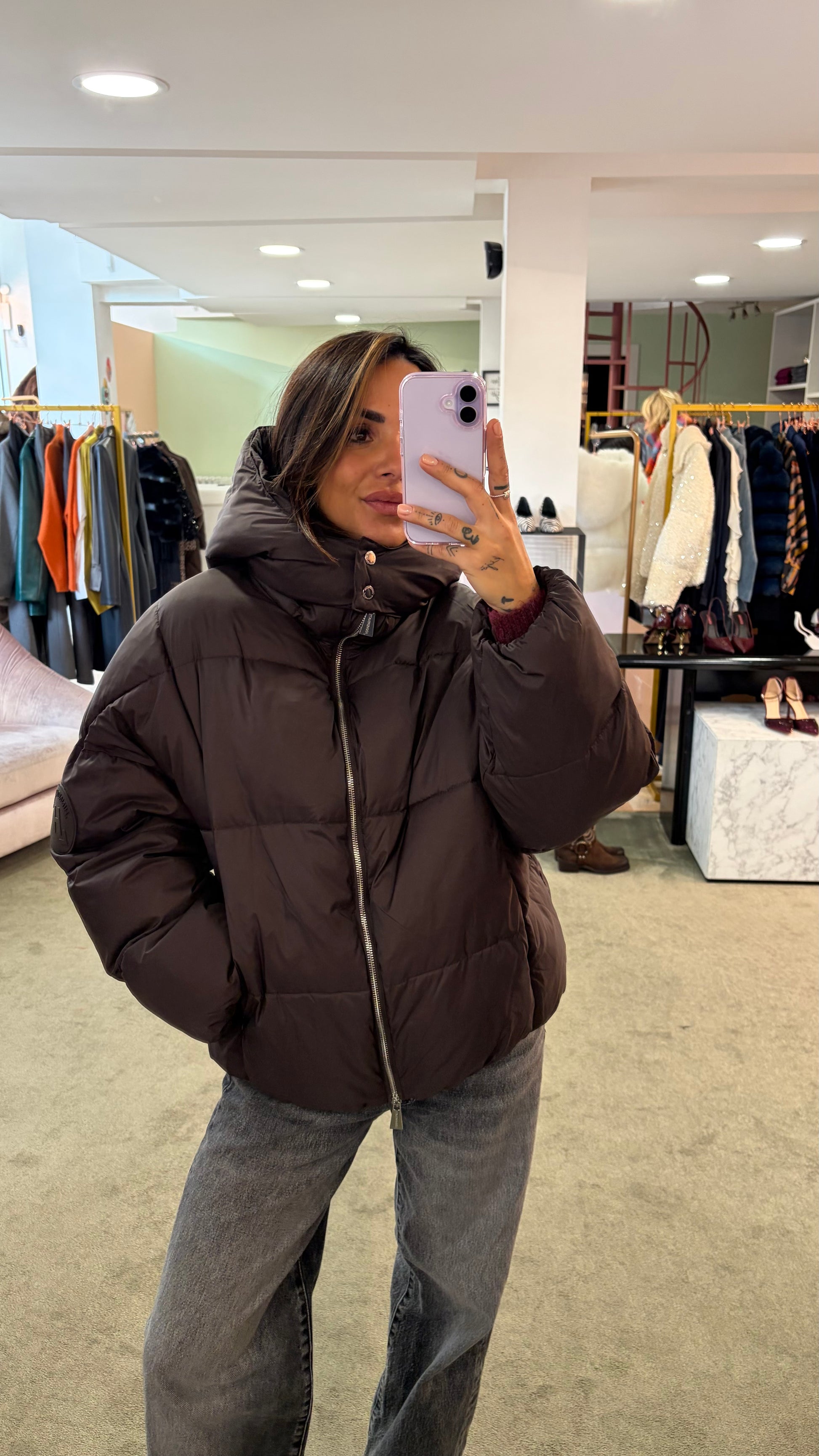 Piumino marrone testa di moro over con cappuccio Hinnominate