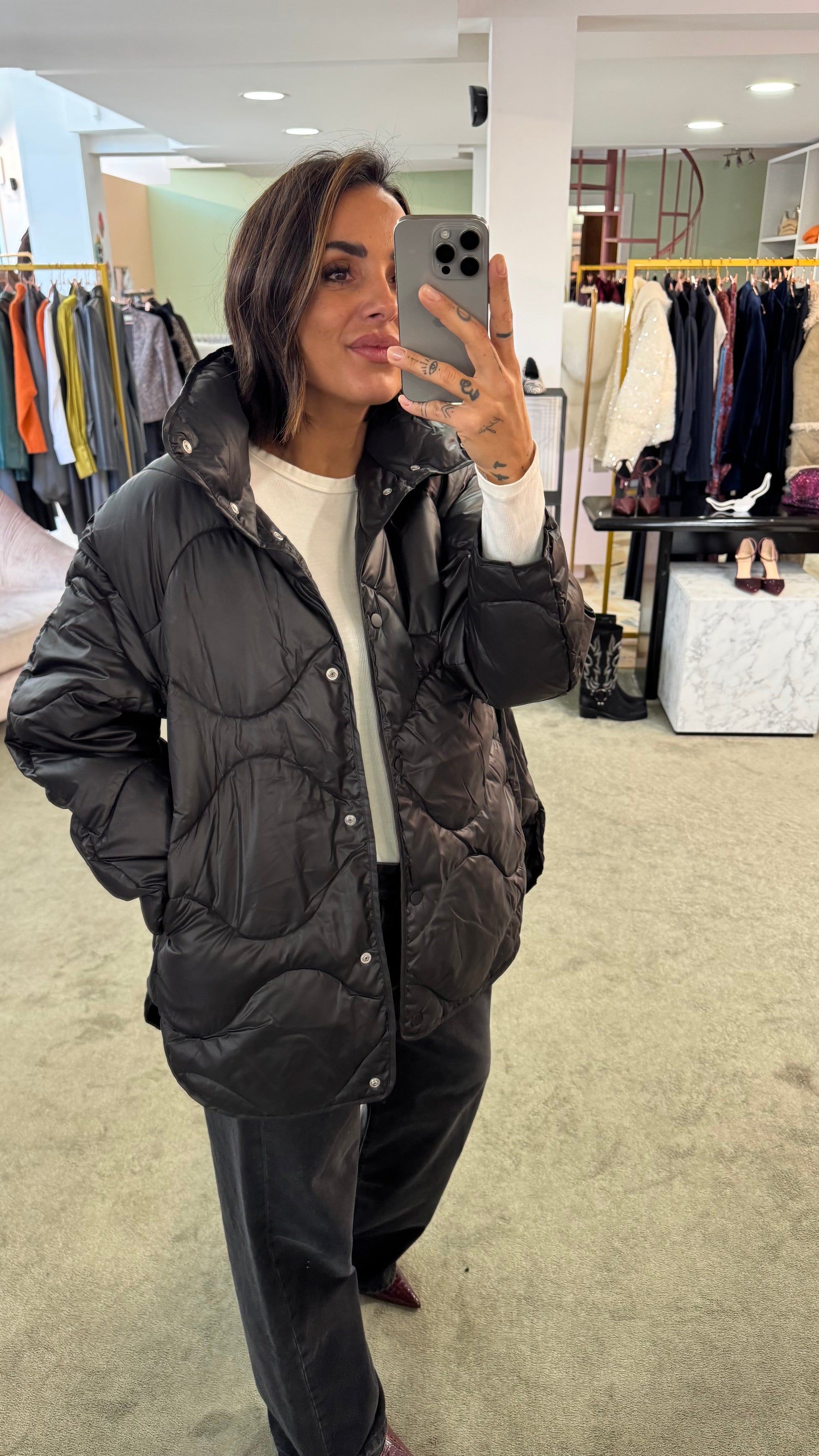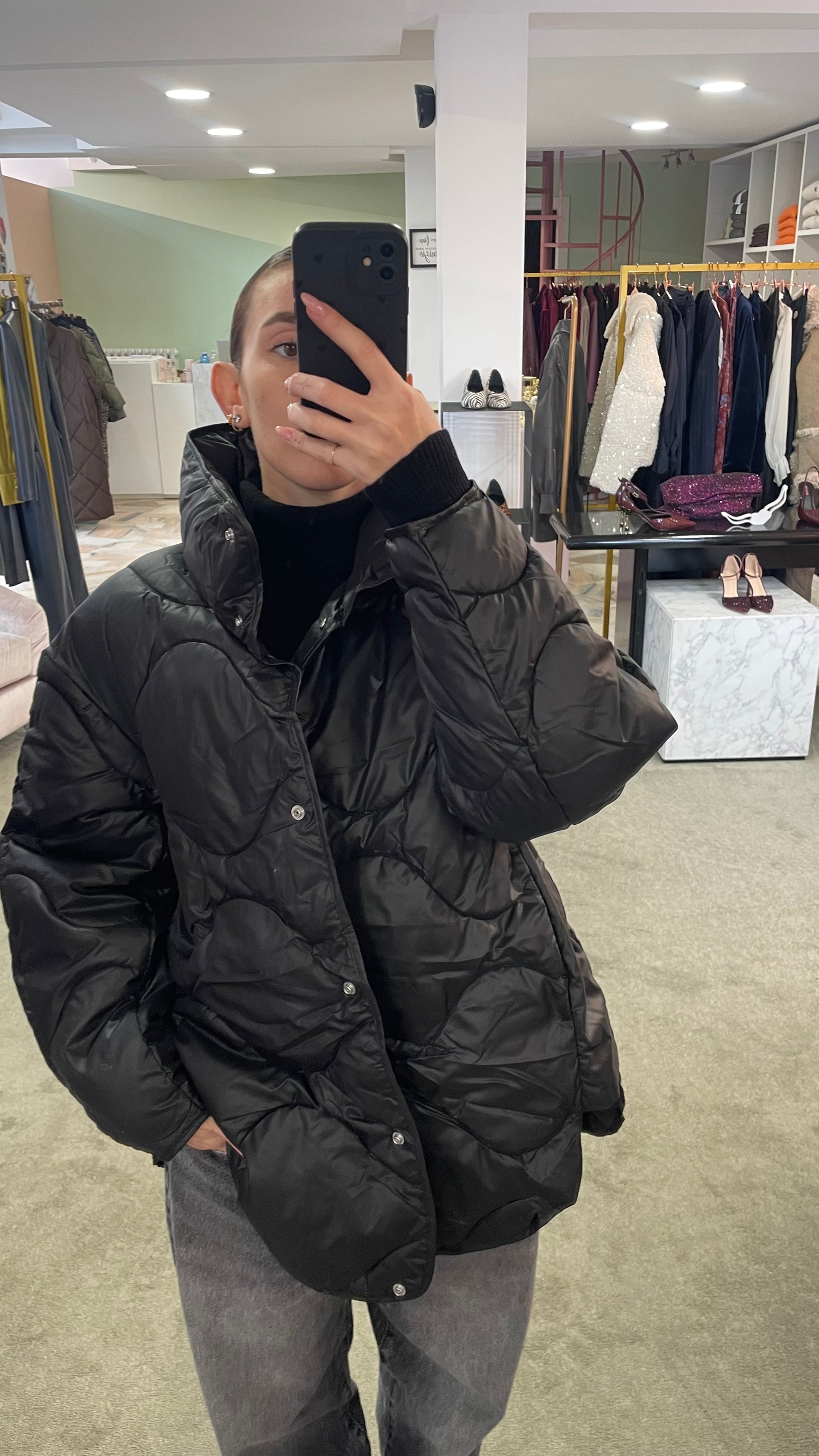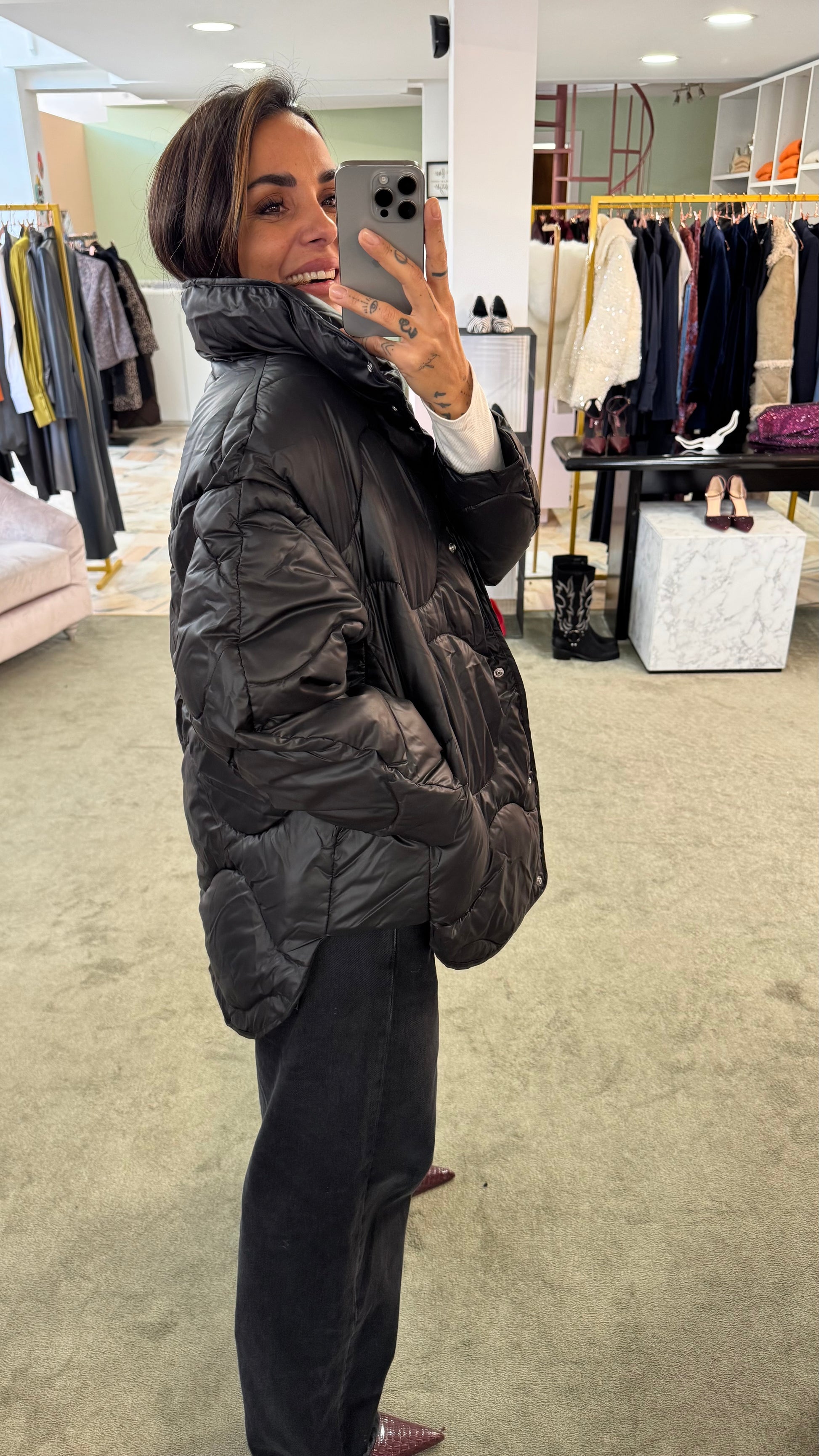 Piumino stella nero trapuntato jx