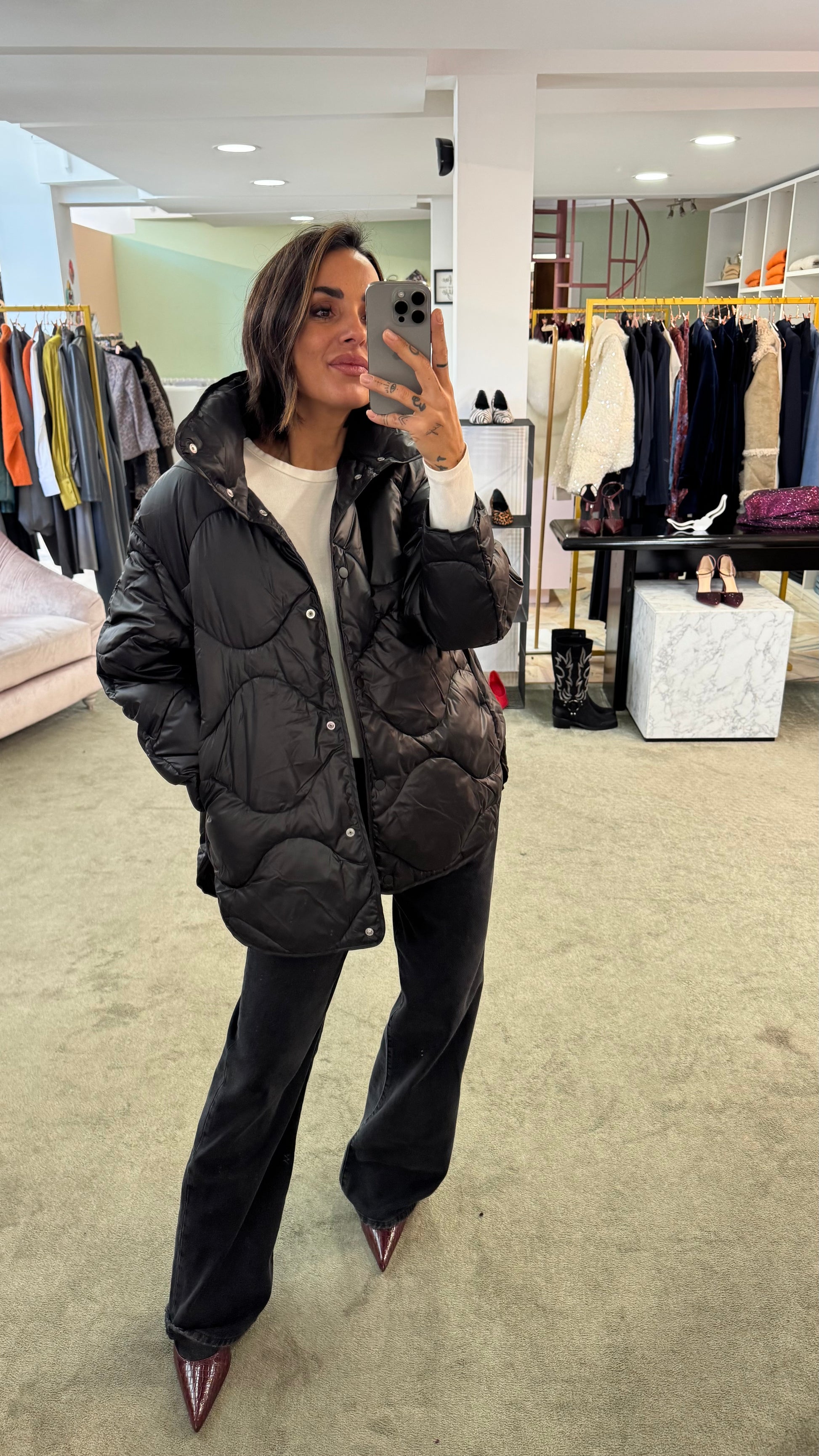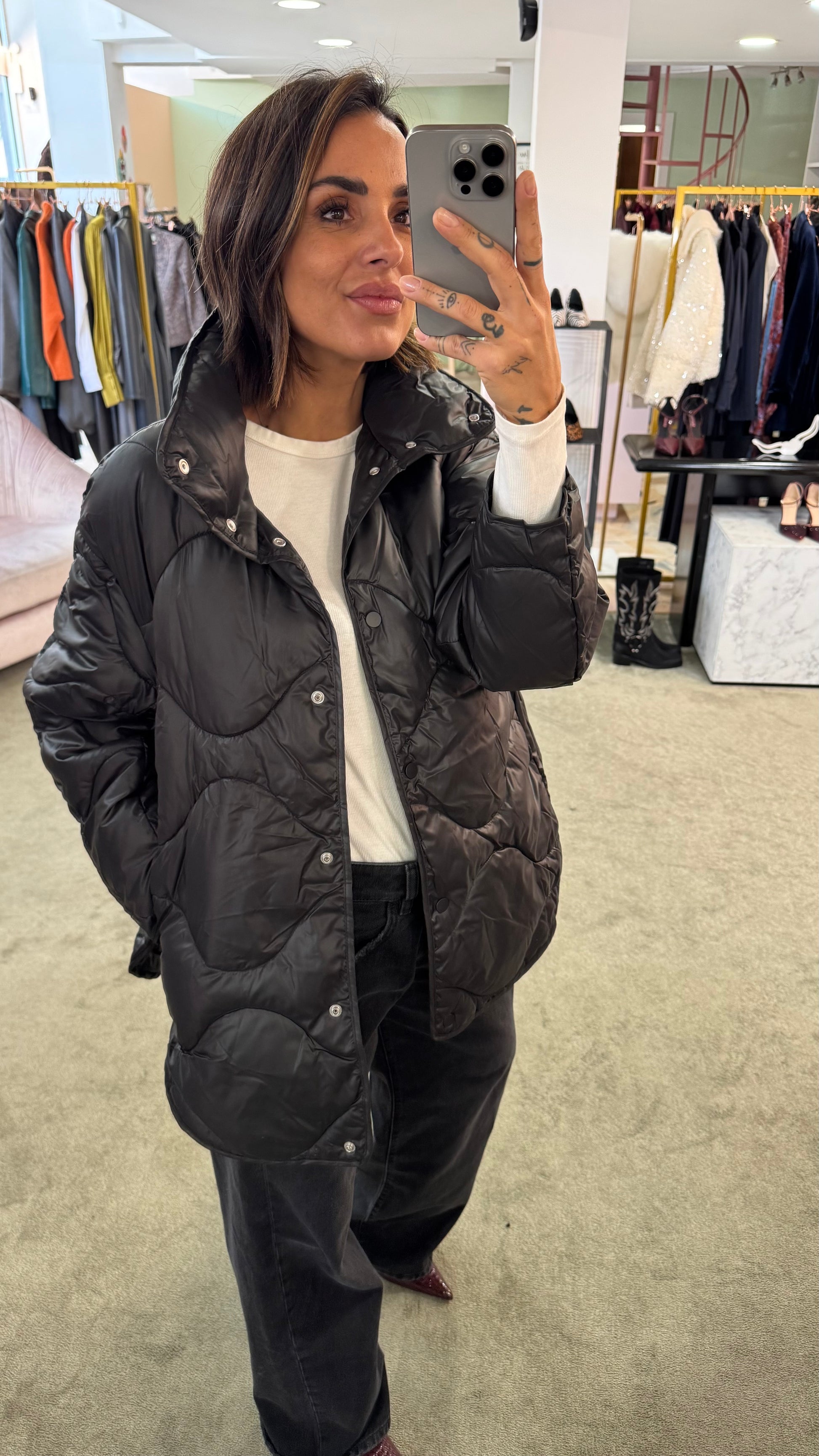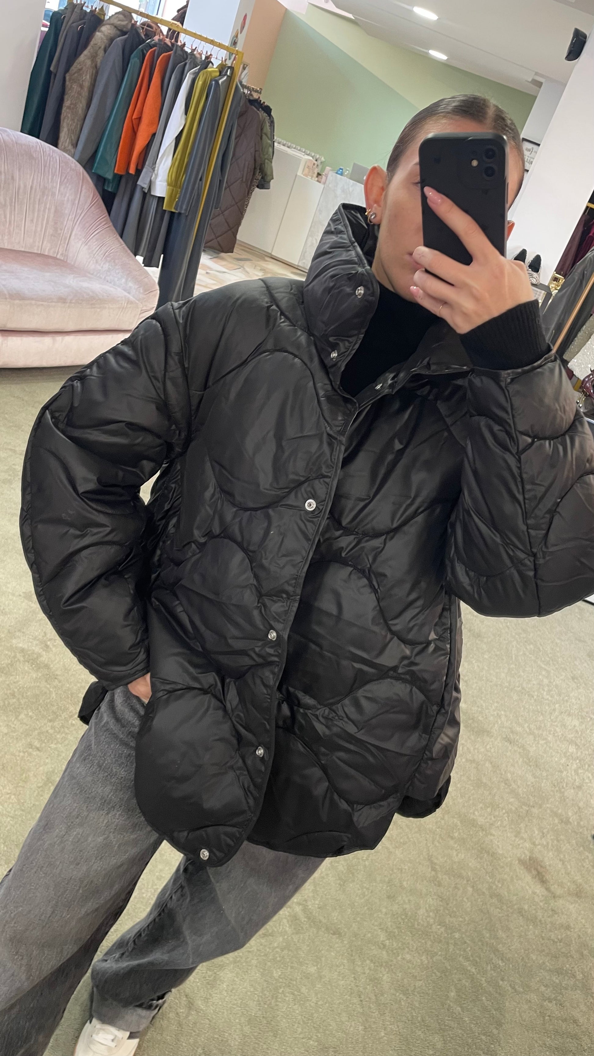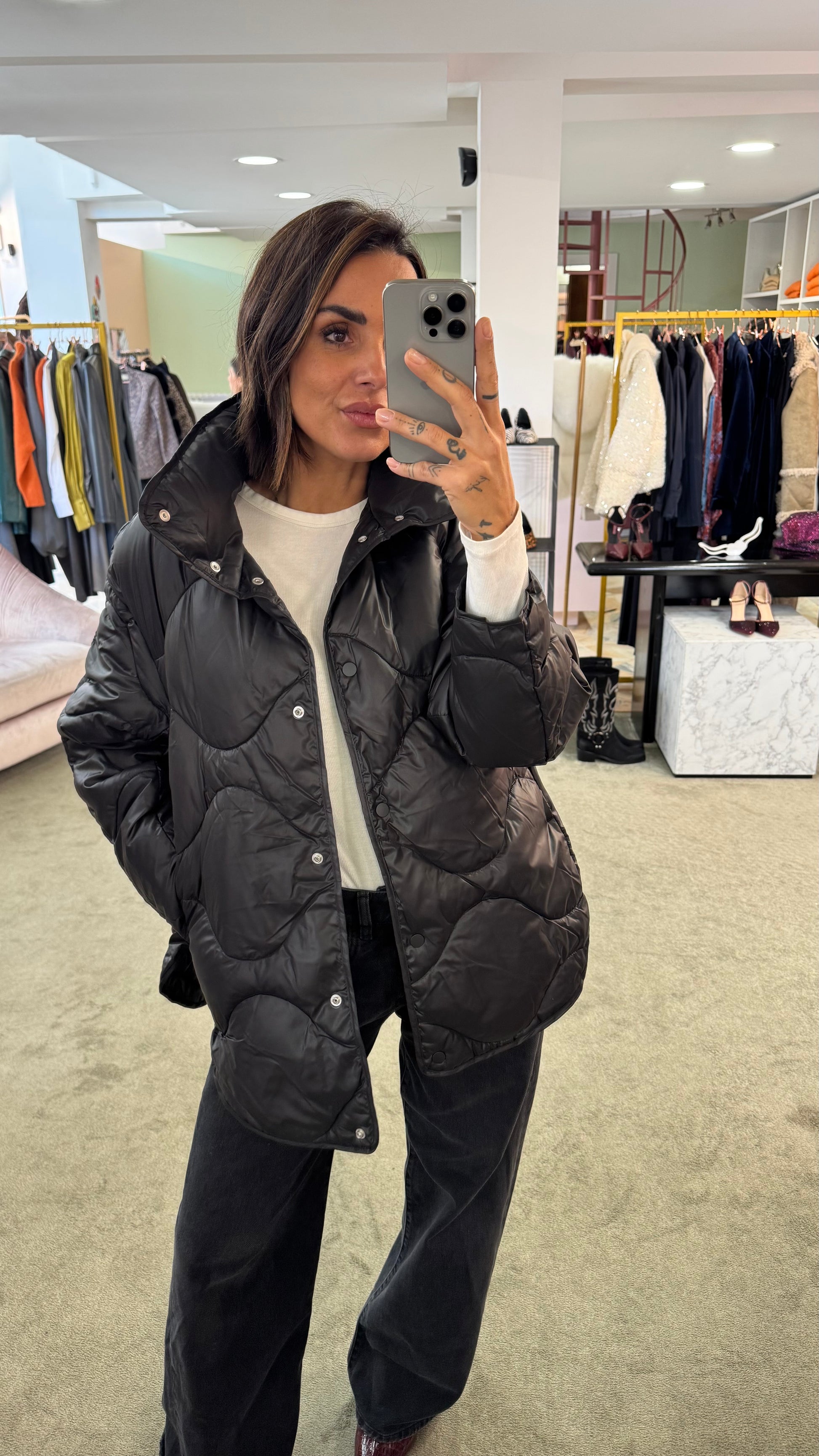 Piumino stella nero trapuntato jx