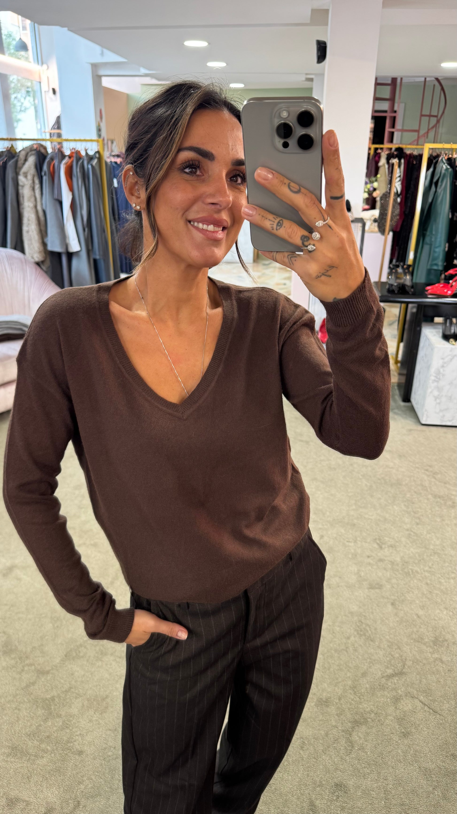 Maglione scollo a v marrone in angora tk