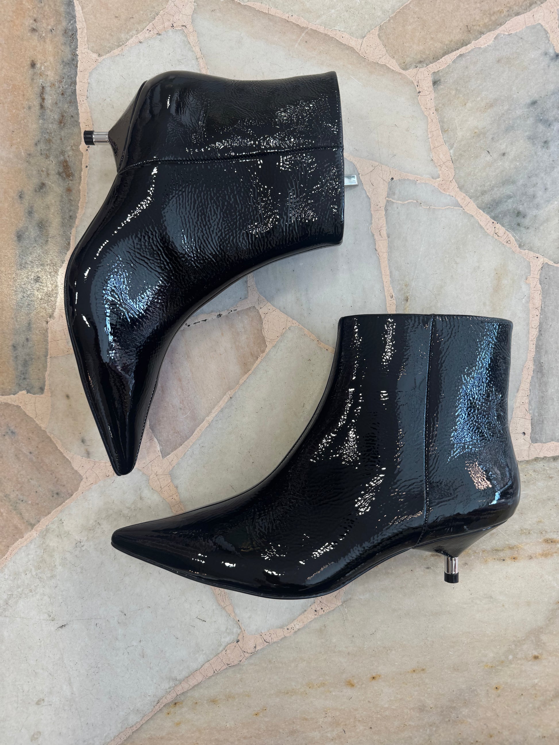 Stivaletto nero in vernice tacco kitten
